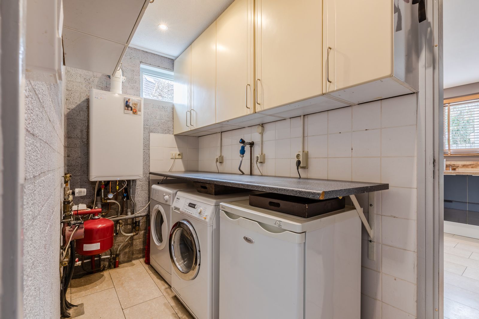 Keuken en bijkeuken met cv-installatie en aansluitingen wasmachine en droger.