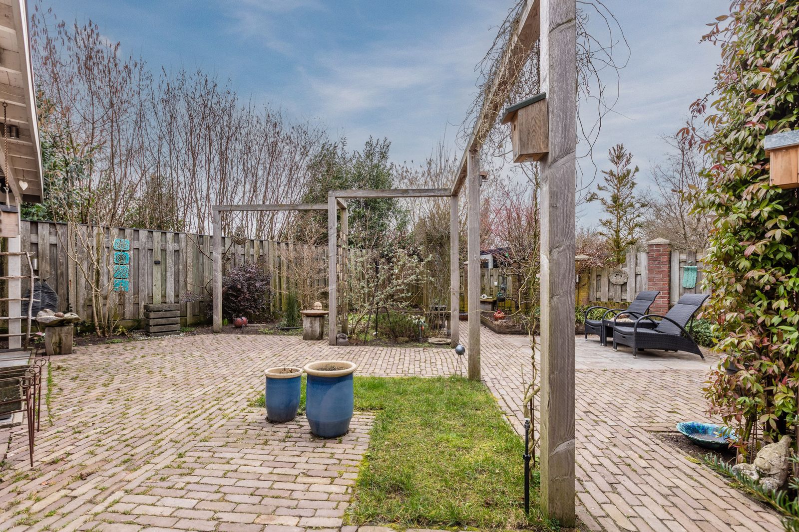 De achterom op eigen terrein is afgesloten door een schutting en loopdeur.