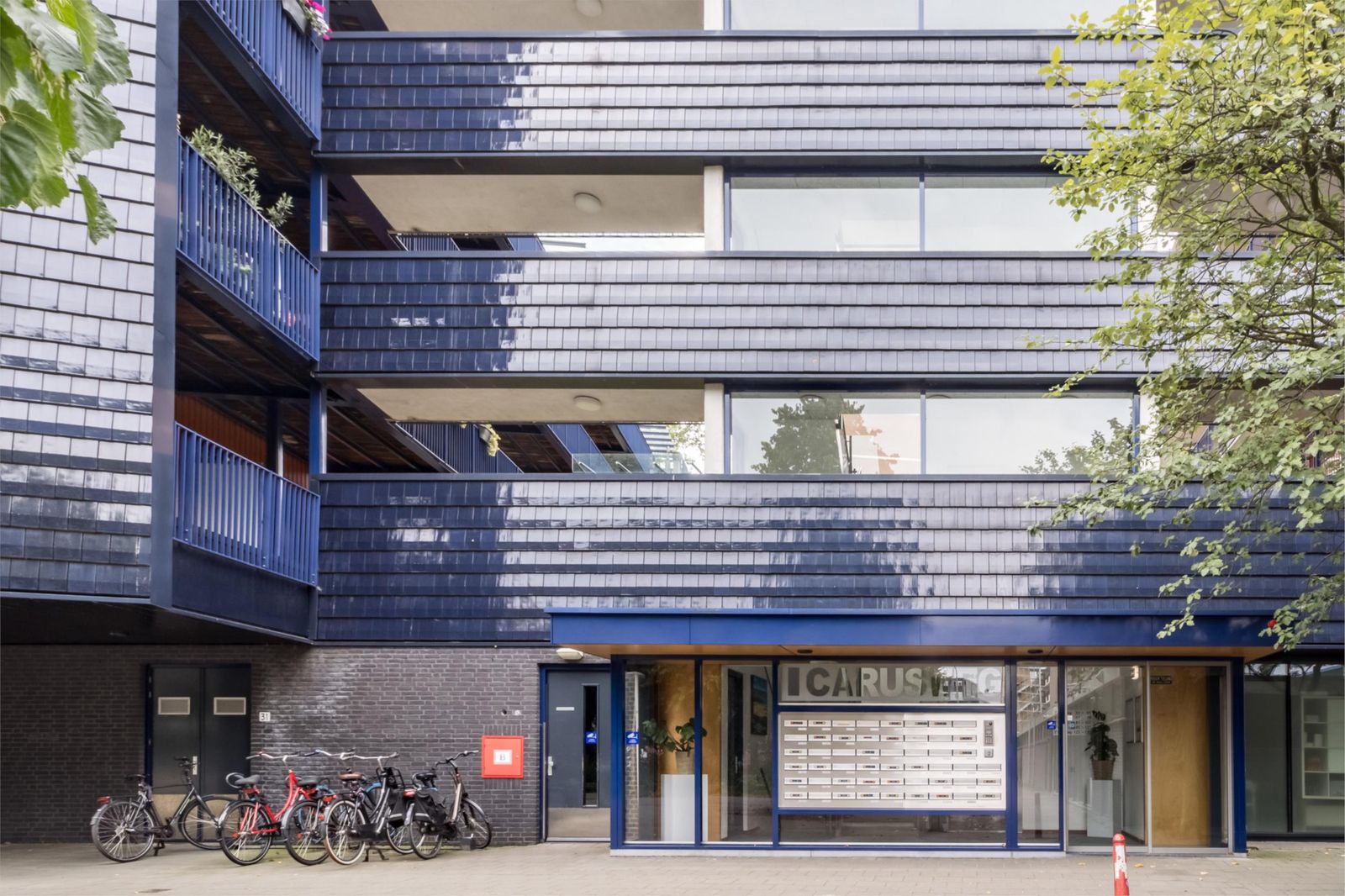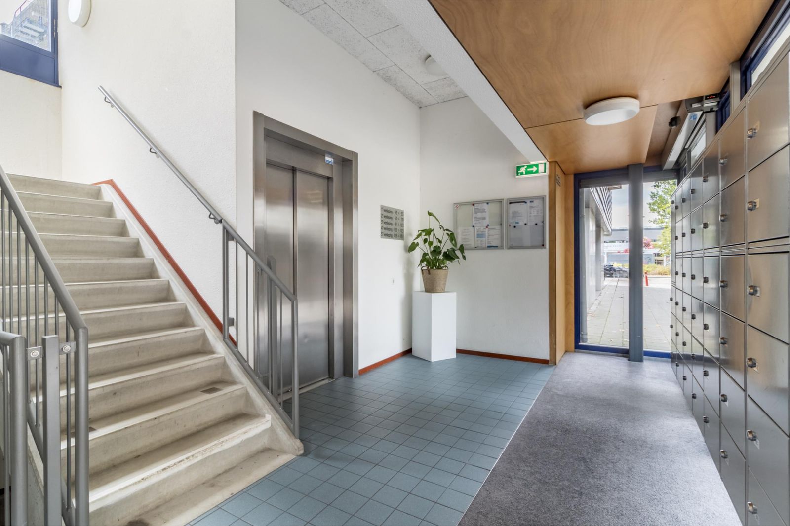 Afgesloten entree met bellentableau, videofoon en brievenbussen. Vanuit de centrale hal heb je toegang tot de lift, het trappenhuis, de gemeenschappelijke fietsenstalling en de parkeergarage.