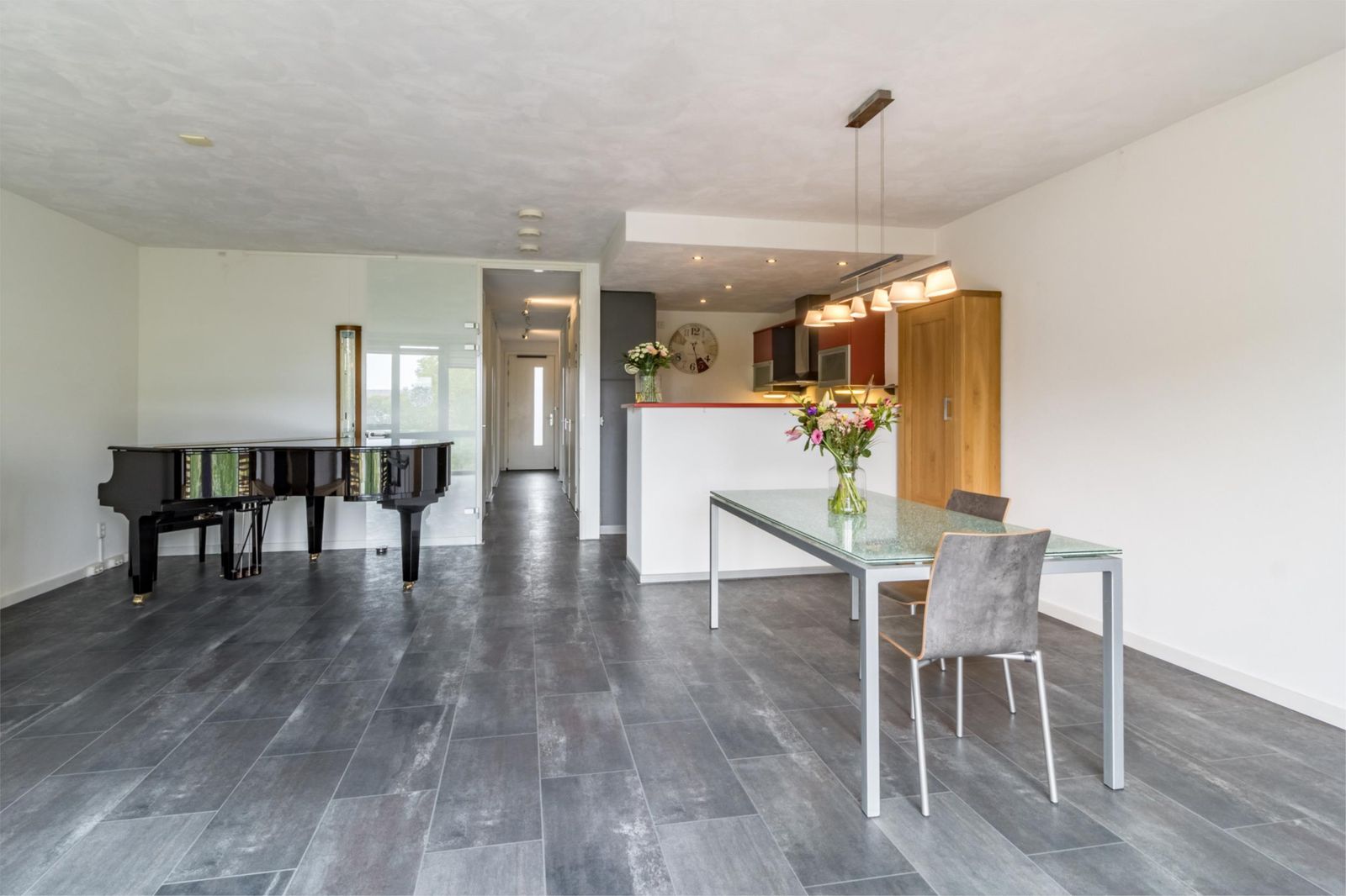 De hele woning is, met uitzondering van de natte ruimtes, voorzien van een nette laminaatvloer.
