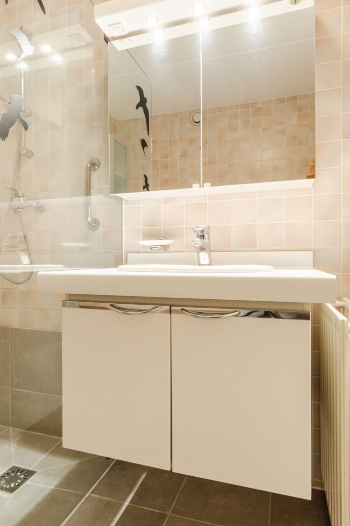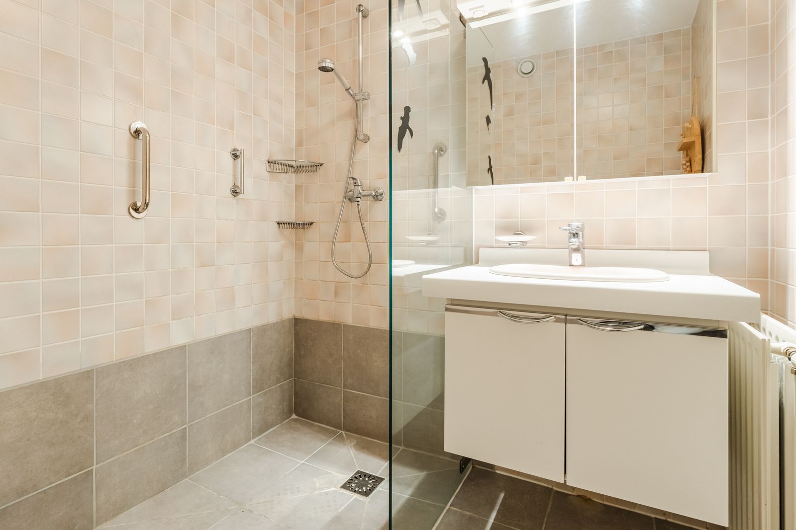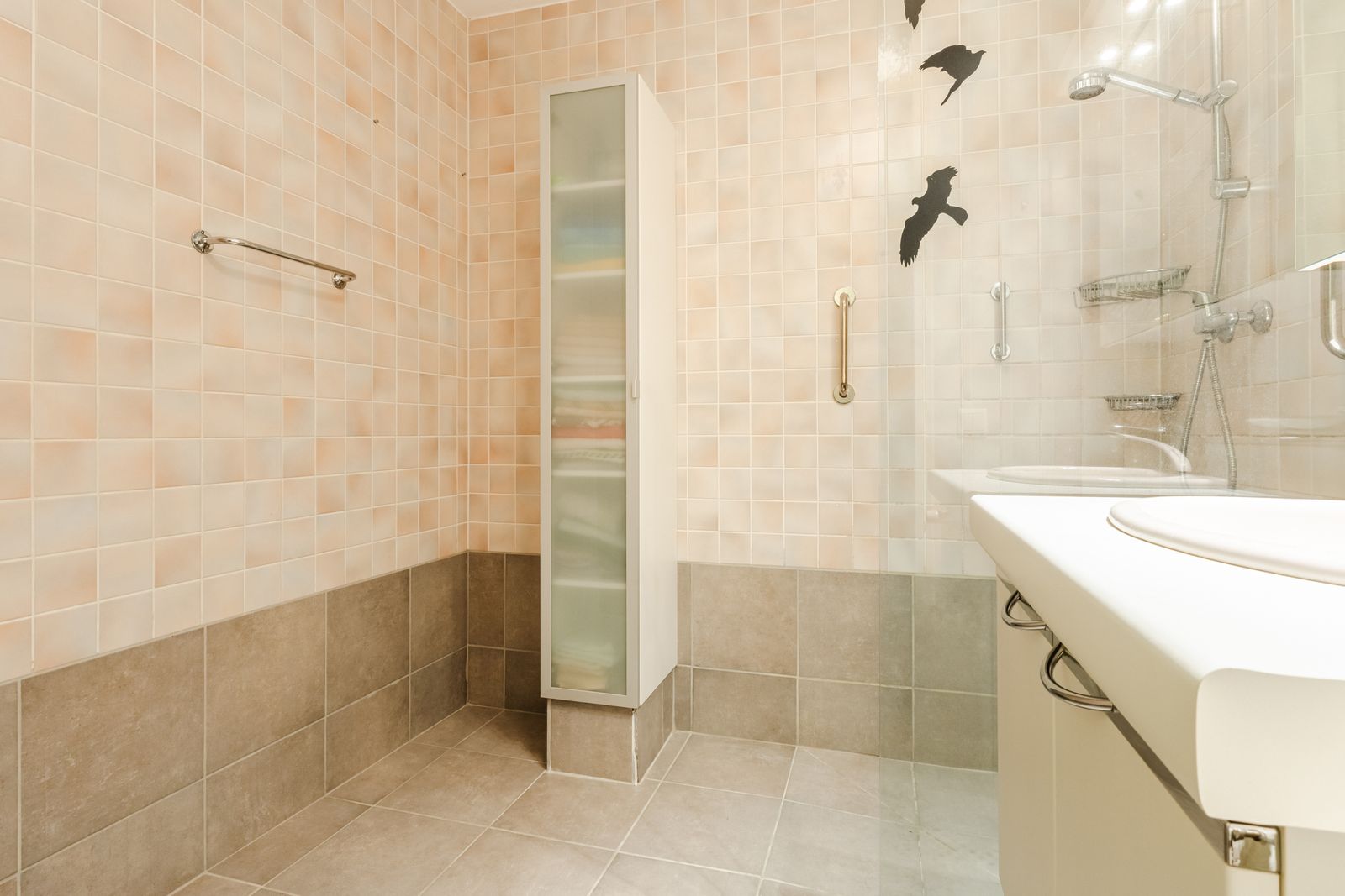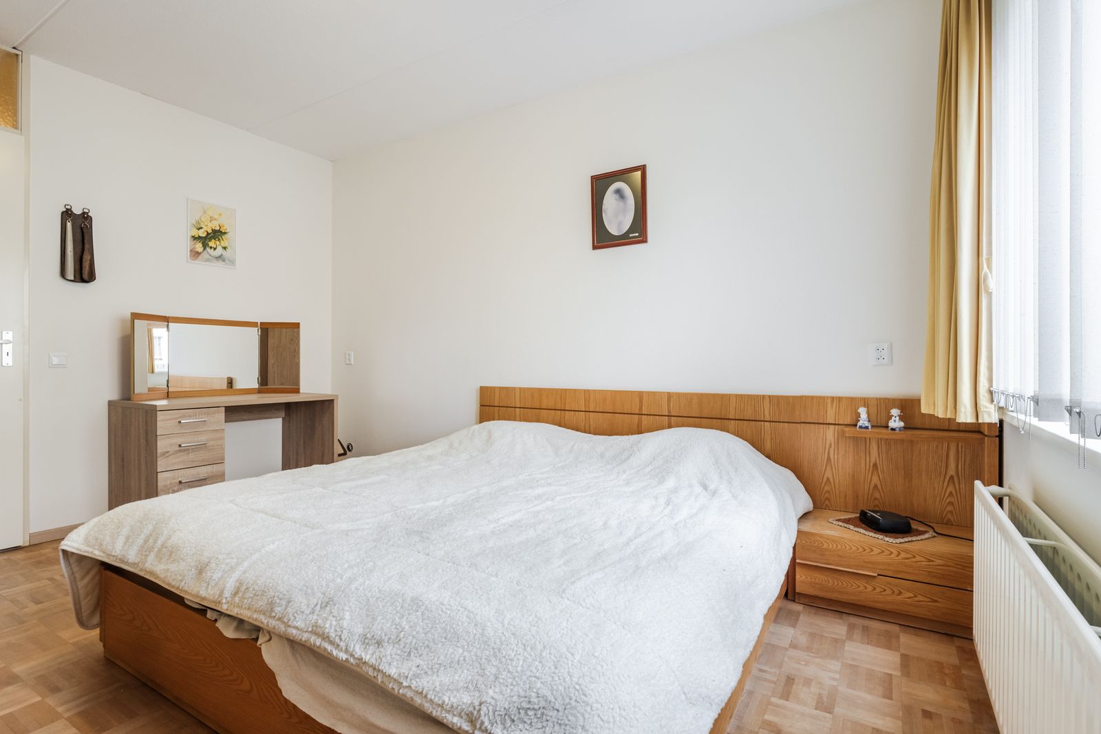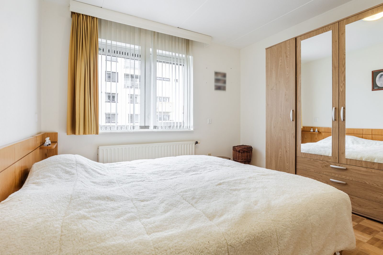 Het appartement beschikt over drie ruime slaapkamers, De badkamer is uitgerust met een douche en een wastafelmeubel. Het toilet is separaat, wat extra comfort biedt.