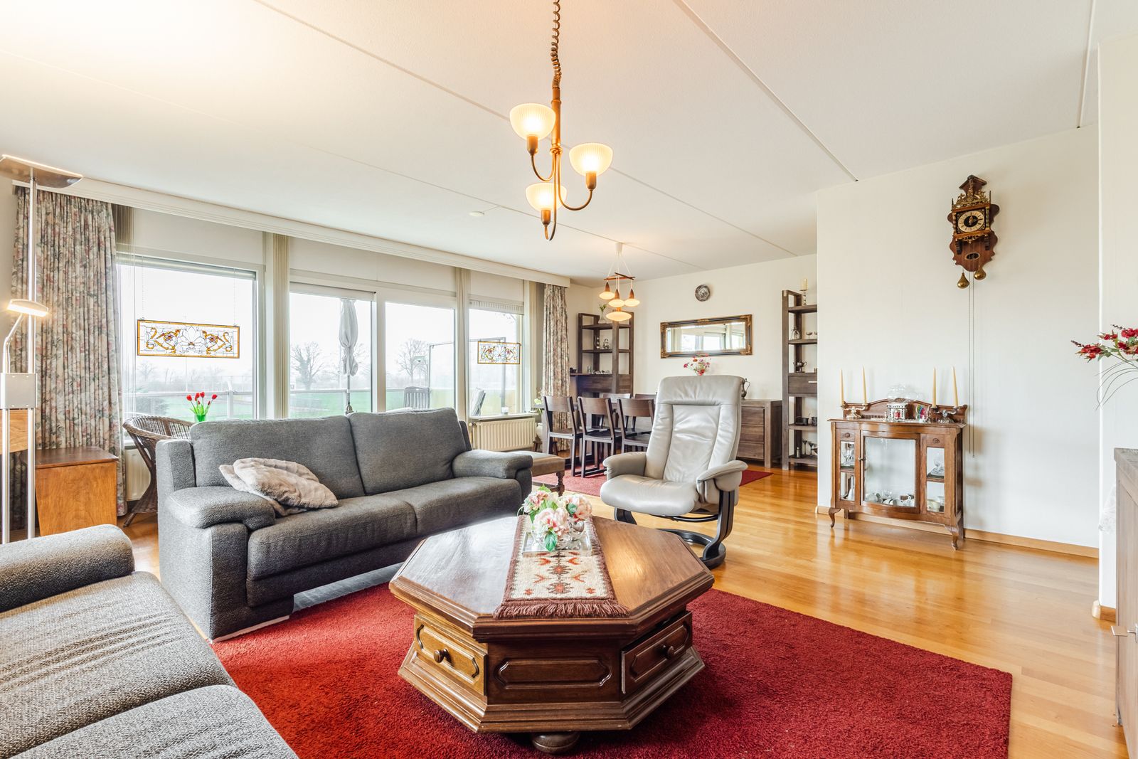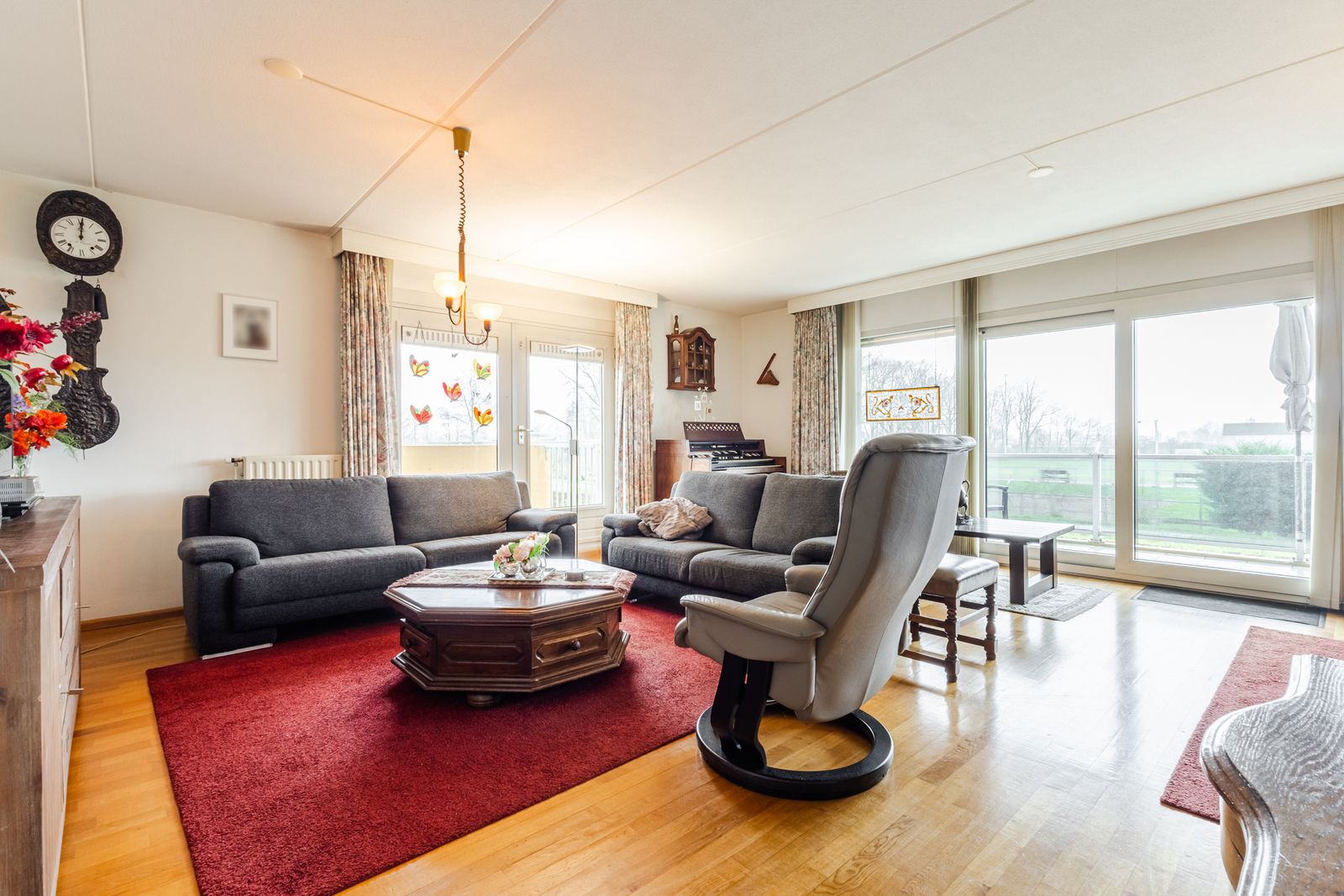 Bij binnenkomst in de ruime hal heeft u toegang tot alle vertrekken. De woonkamer is licht en ruimt opgezet, met grote raampartijen die zorgen voor een prachtig uitzicht op de omgeving. Via de woonkamer heeft u toegang tot twee balkons, ca 13 m2 op het zuiden en ca 3 m2 op het oosten. Ideaal om op verschillende momenten van de dag van de zon te genieten.