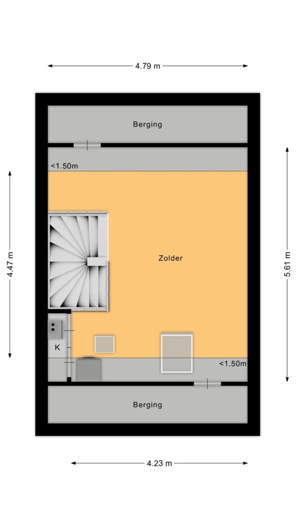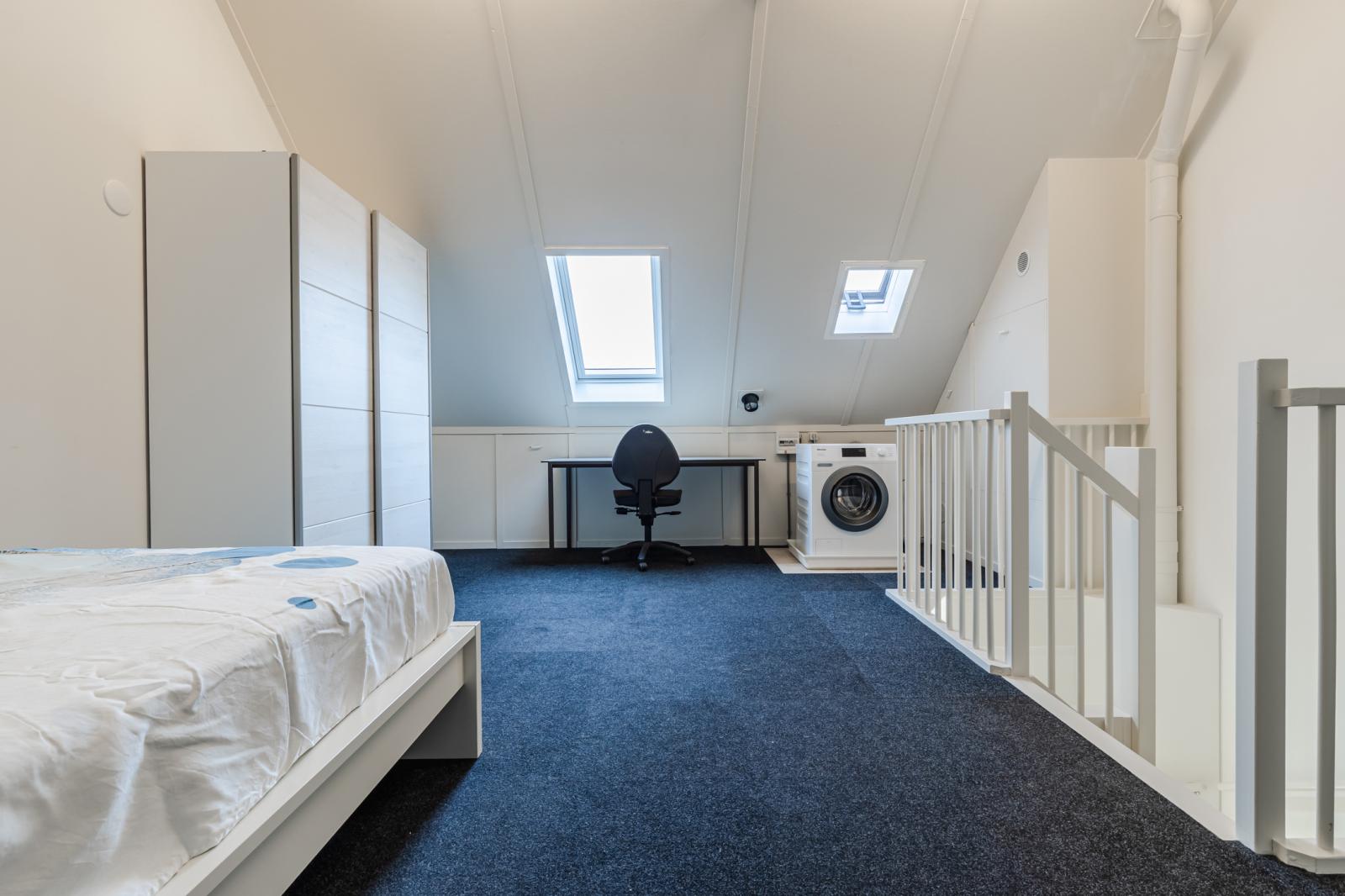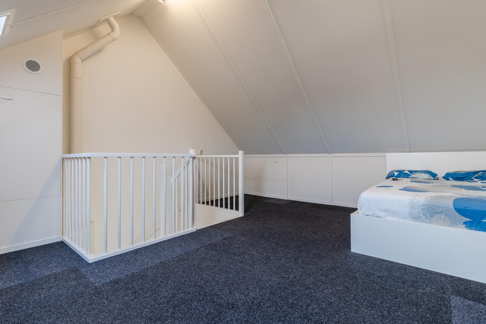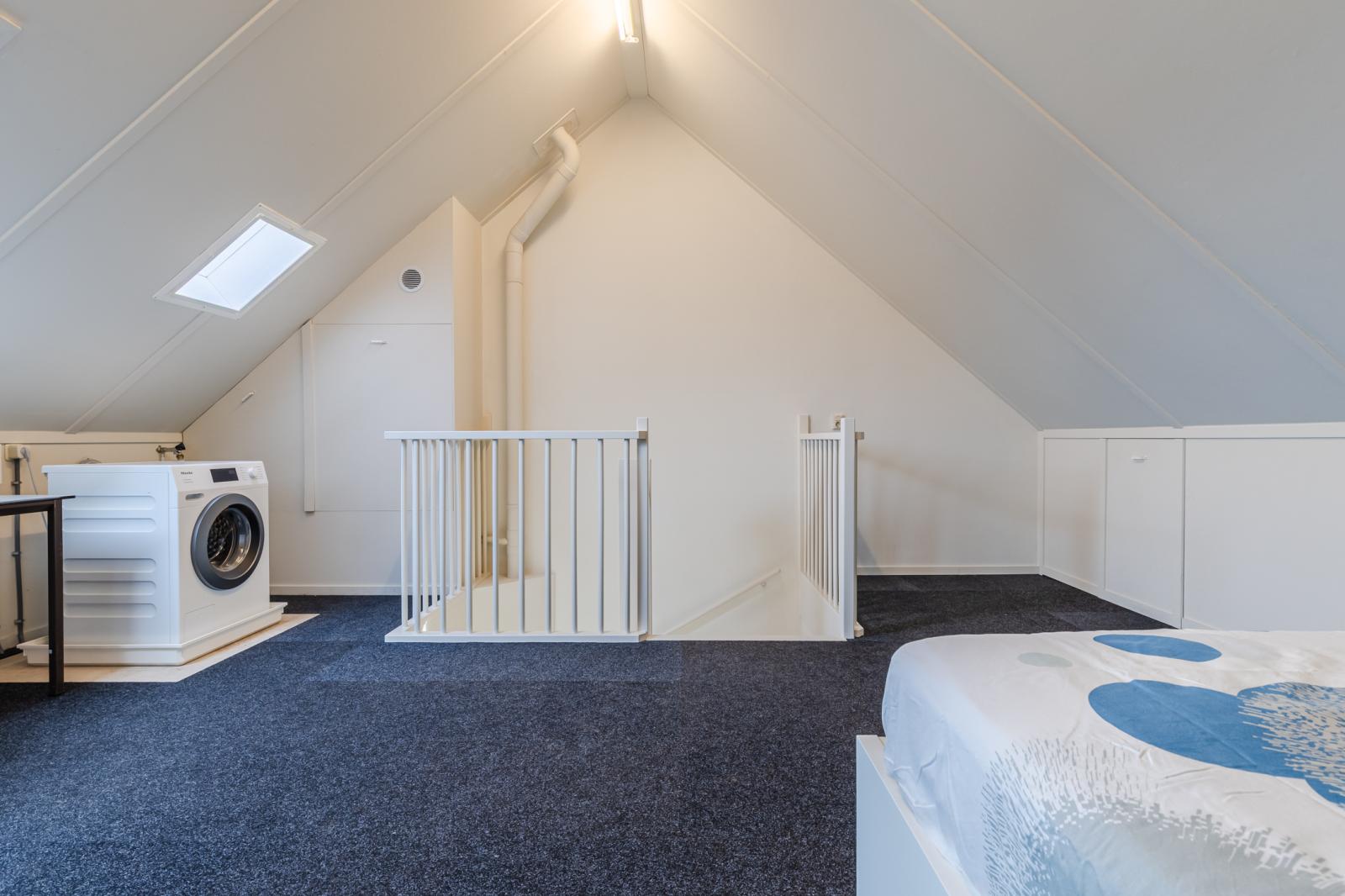 Dit instapklare woonhuis heeft ook nog een volwaardig te benutten tweede verdieping, die eveneens via een vaste trap bereikbaar is. Er is hier sprake van een riante zolderkamer, waar je dankzij twee dakramen profiteert van veel lichtinval. Langs de voor- en achterkant zijn onder de kapschuinte (en achter knieschotten) praktische bergingsruimtes ingericht. Daarnaast vind je in de hoek van de zolderkamer aansluitpunten voor wasapparatuur en de cv-ketel. Laatstgenoemde is netjes weggewerkt in een op maat gemaakte inbouwkast.
