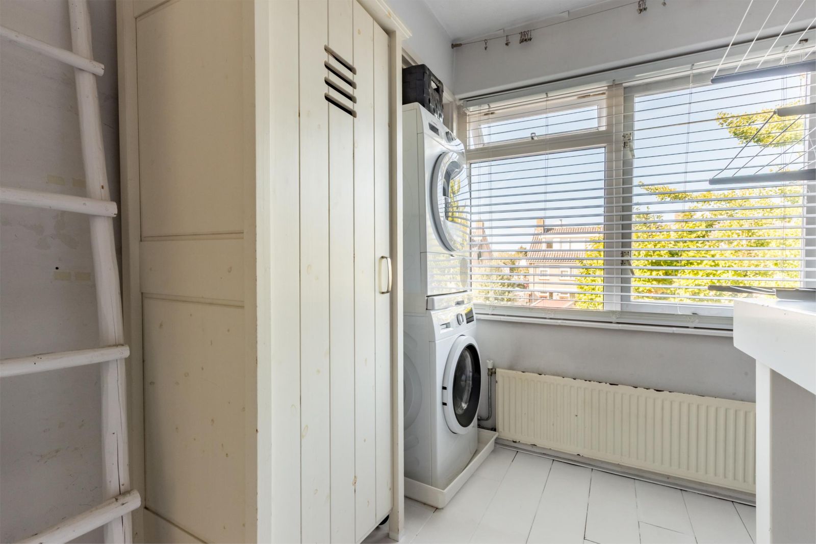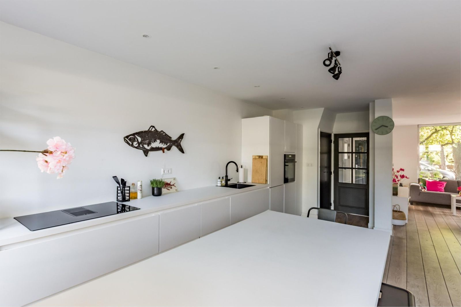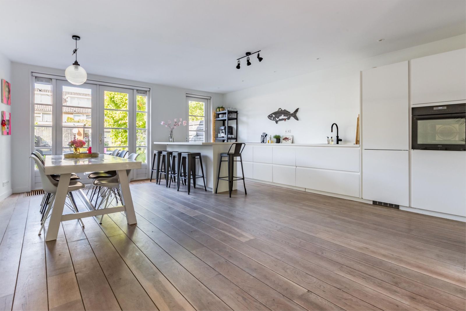 In de gang bevindt zich een apart toilet, handig is de diepe werkkast naast de keuken. De gehele benedenverdieping is voorzien van een robuuste eikenhouten vloer. In de frisse, moderne, open keuken met keukeneiland inclusief bar, vind je diverse AEG inbouwapparatuur, waaronder een inbouw koelvries combinatie, vaatwasmachine, inductiekookplaat (3 Fase) met afzuiging, combi-stoomoven, Quooker Flex en veel opbergruimte. De keuken vormt het kloppend hart van het huis; een plek om te koken, aan de bar te werken of gasten te ontvangen.