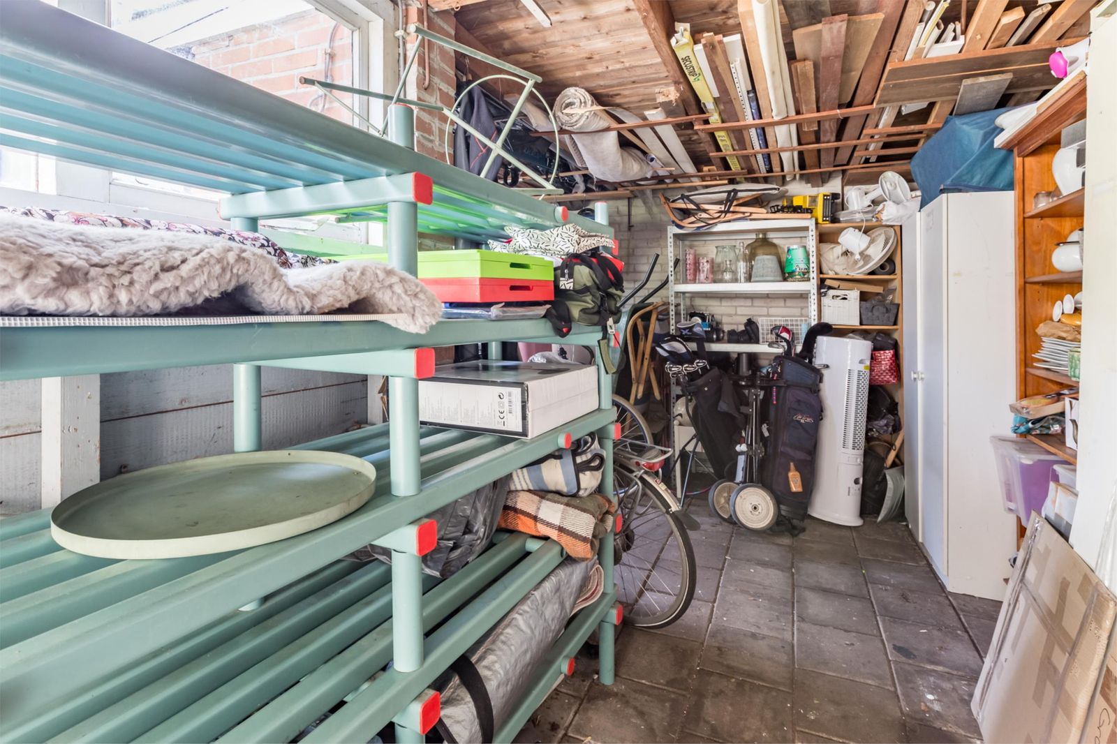 De stenen garage en schuur geven volop ruimte voor het stallen van fietsen, speelgoed, gereedschap een tweede koelkast en alles wat er voor hobby’s en sport nodig is.