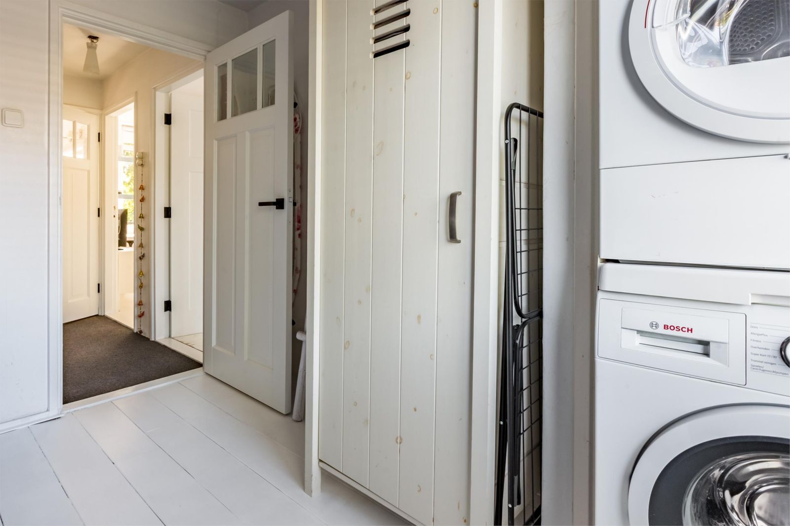 Op de eerste verdieping liggen drie comfortabele slaapkamers, waarvan één nu in gebruik als waskamer. Daarnaast een complete badkamer met vloerverwarming, bad, toilet, dubbele wastafel en douche. Een van de slaapkamers heeft een balkon.