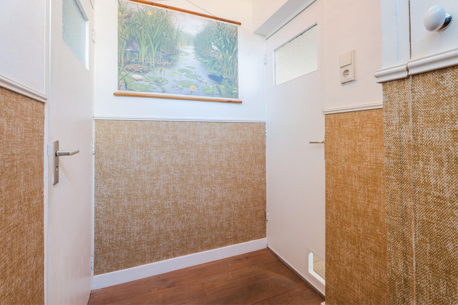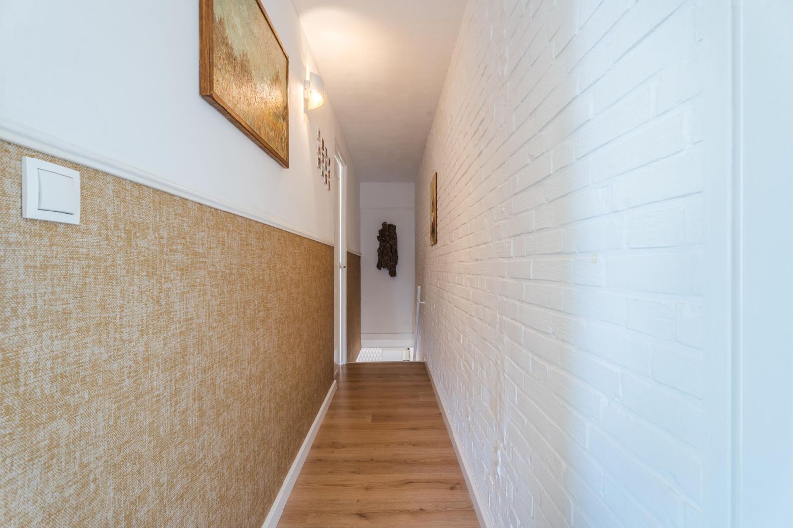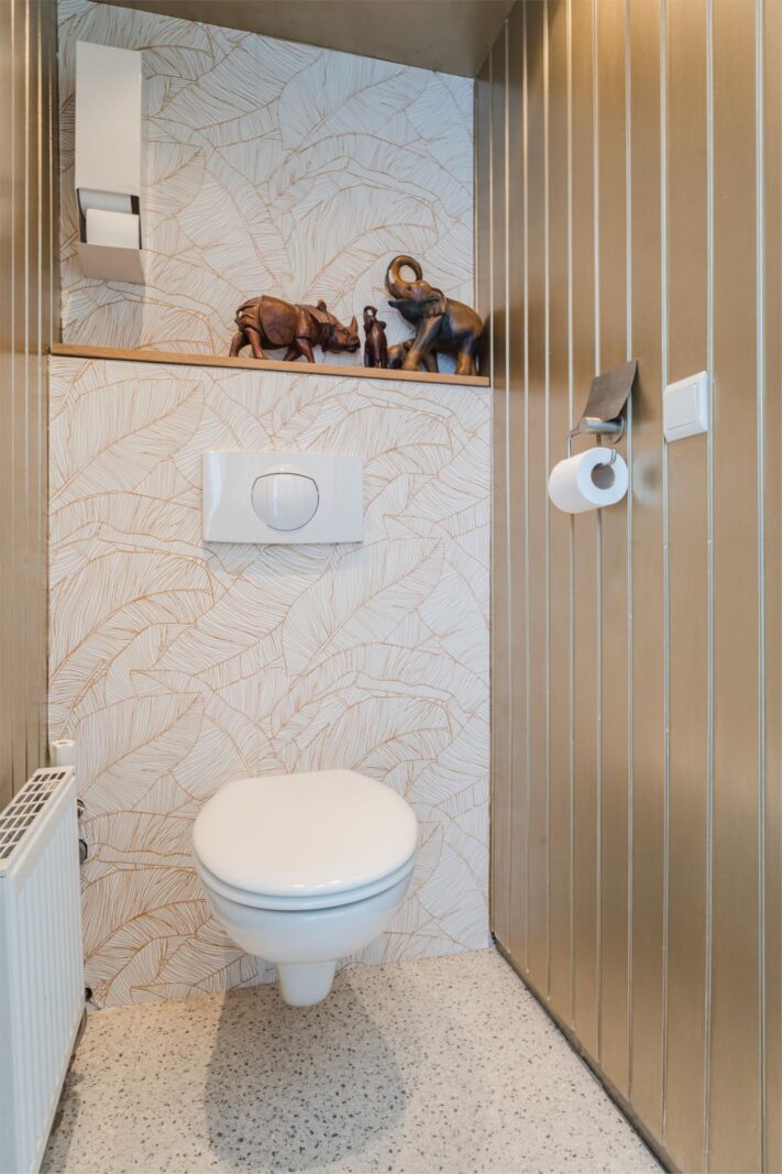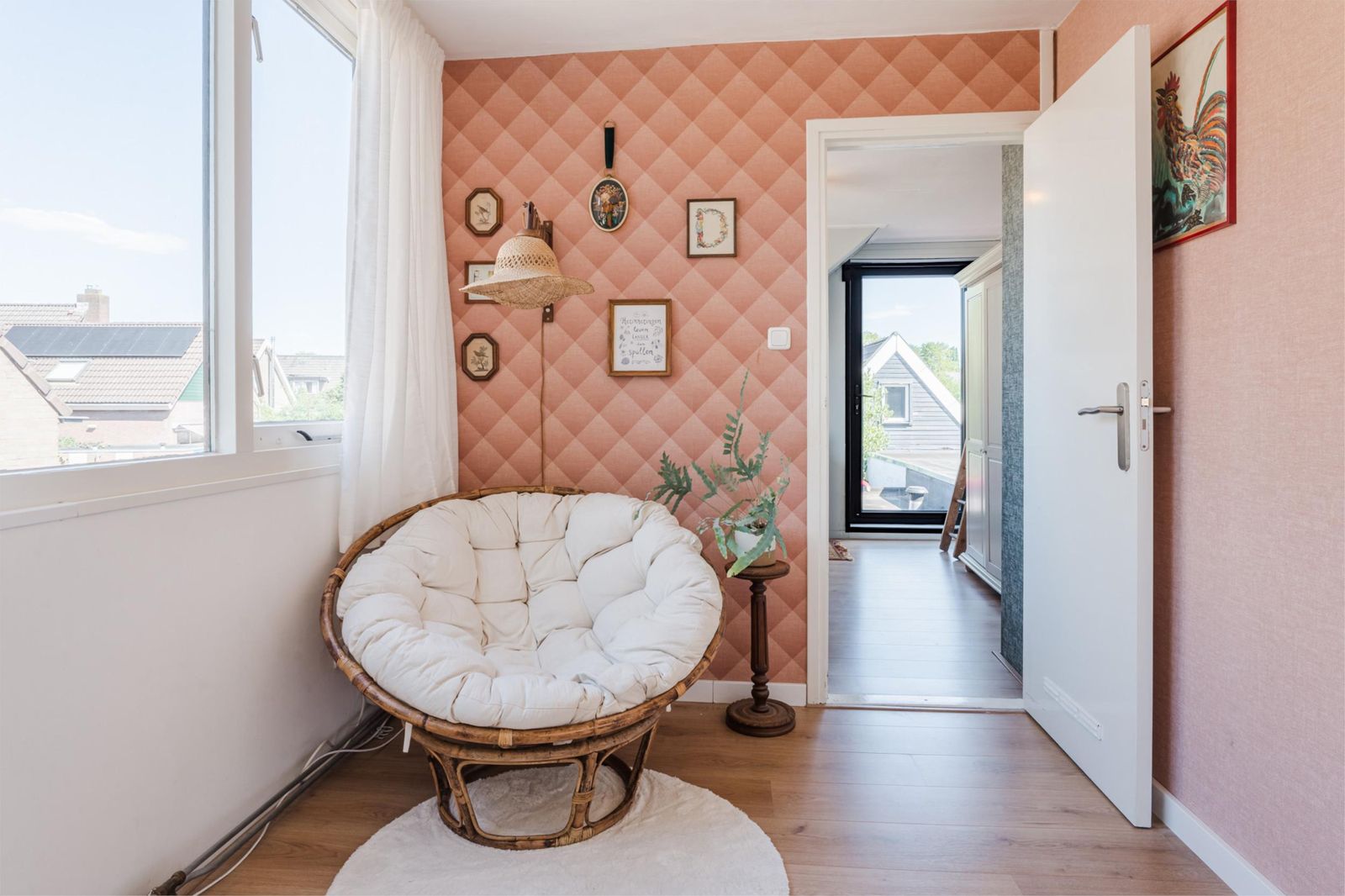Op de bovenverdieping vind je drie slaapkamers, ieder heerlijk licht dankzij de grote dakkapel. Twee vertrekken zijn momenteel ingericht als comfortabele werkruimtes, perfect voor thuiswerken of hobby’s, maar lenen zich net zo goed als gezellige kinderkamers. Via een deur is het platte dak bereikbaar, perfect voor wie plannen heeft voor een extra uitbreiding in de vorm van een dakterras.