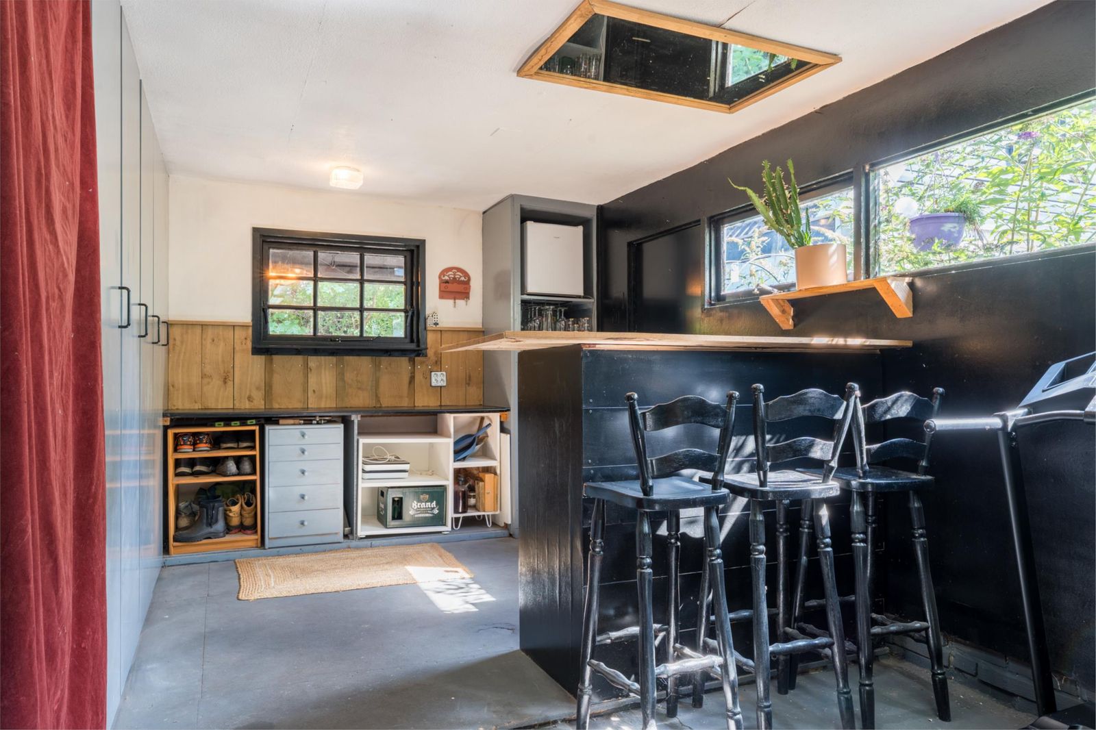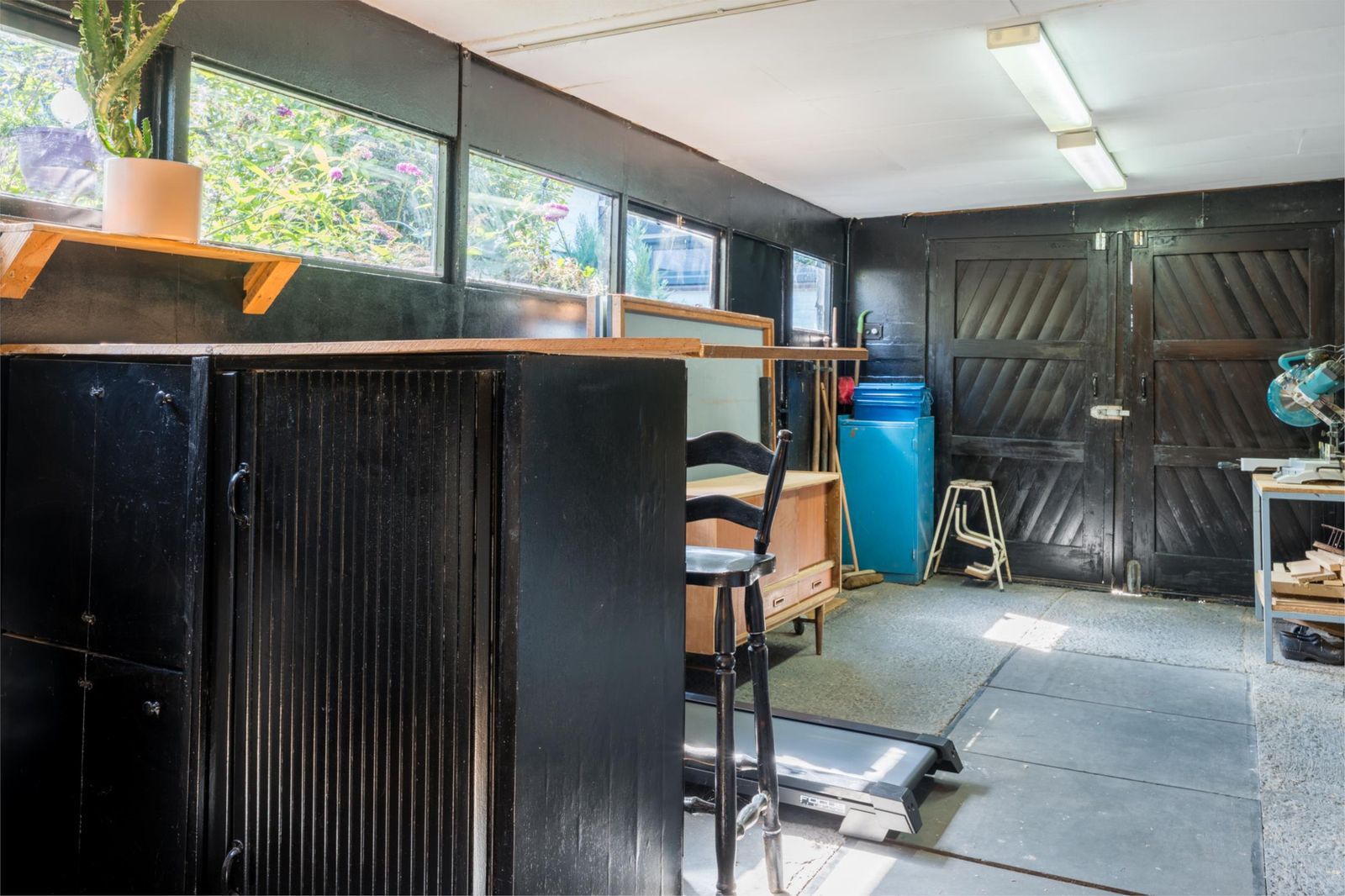 De zeer ruime schuur is recent zwart geschilderd, de binnenkant is afgewerkt en op het dak zijn 10 zonnepanelen geïnstalleerd. In de schuur is een diepe smeerput aanwezig voor de liefhebber. Achterin in de schuur bevindt zich een bijkeuken, met extra raam naar de veranda. Onder de veranda kun je altijd droog genieten van het buiten zijn. Zie je jezelf de drankjes al doorgeven door het raam naar vrienden en familie?