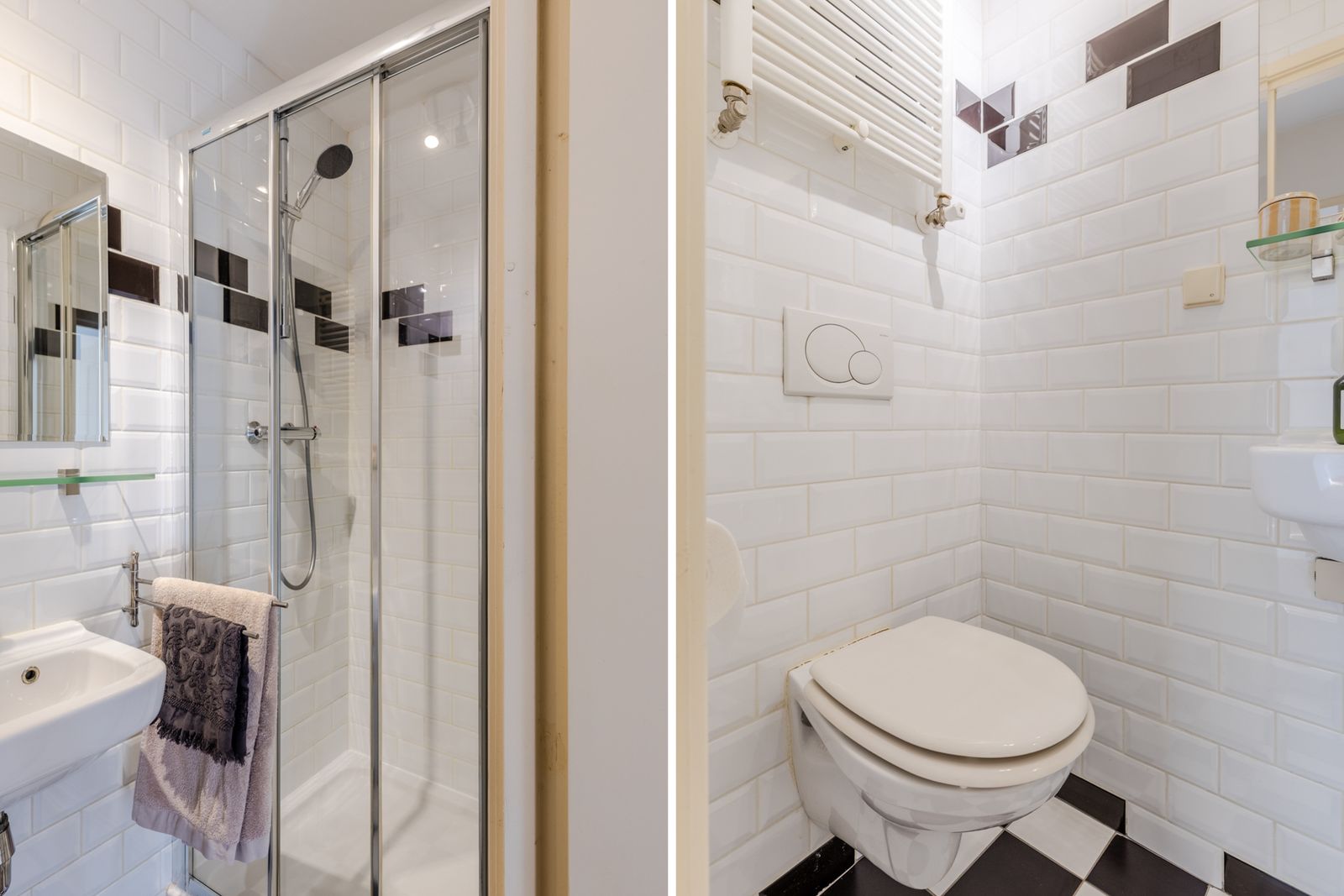 - Fris, netjes en tijdloos afgewerkte badkamer met zwevend toilet