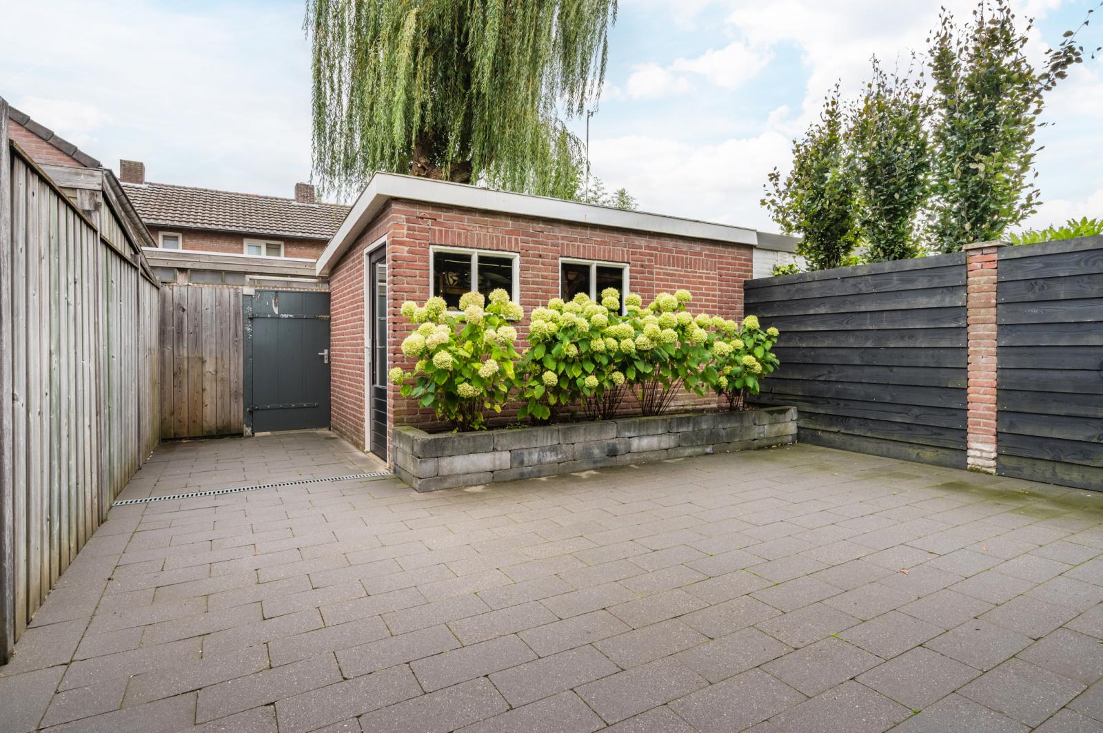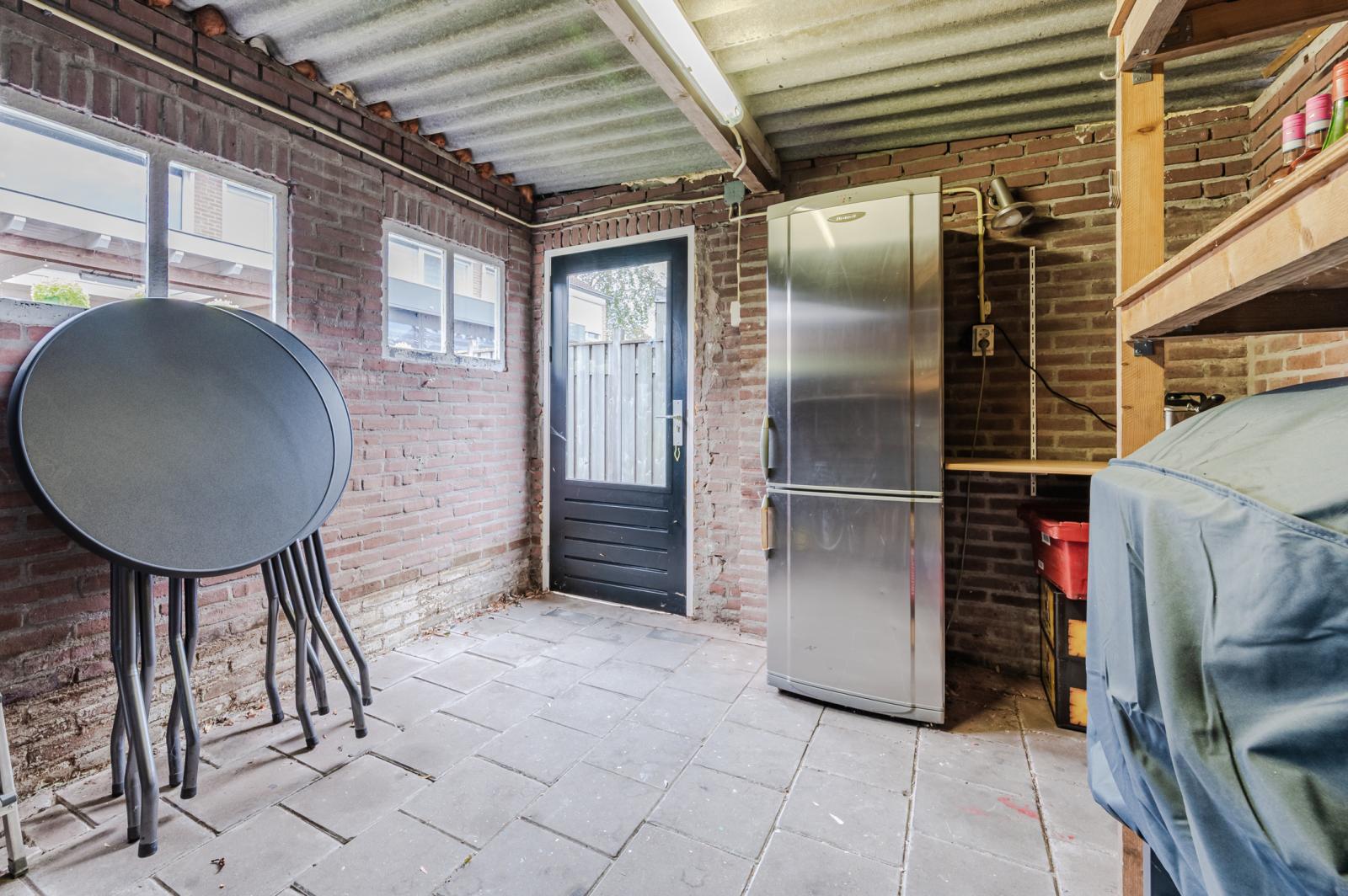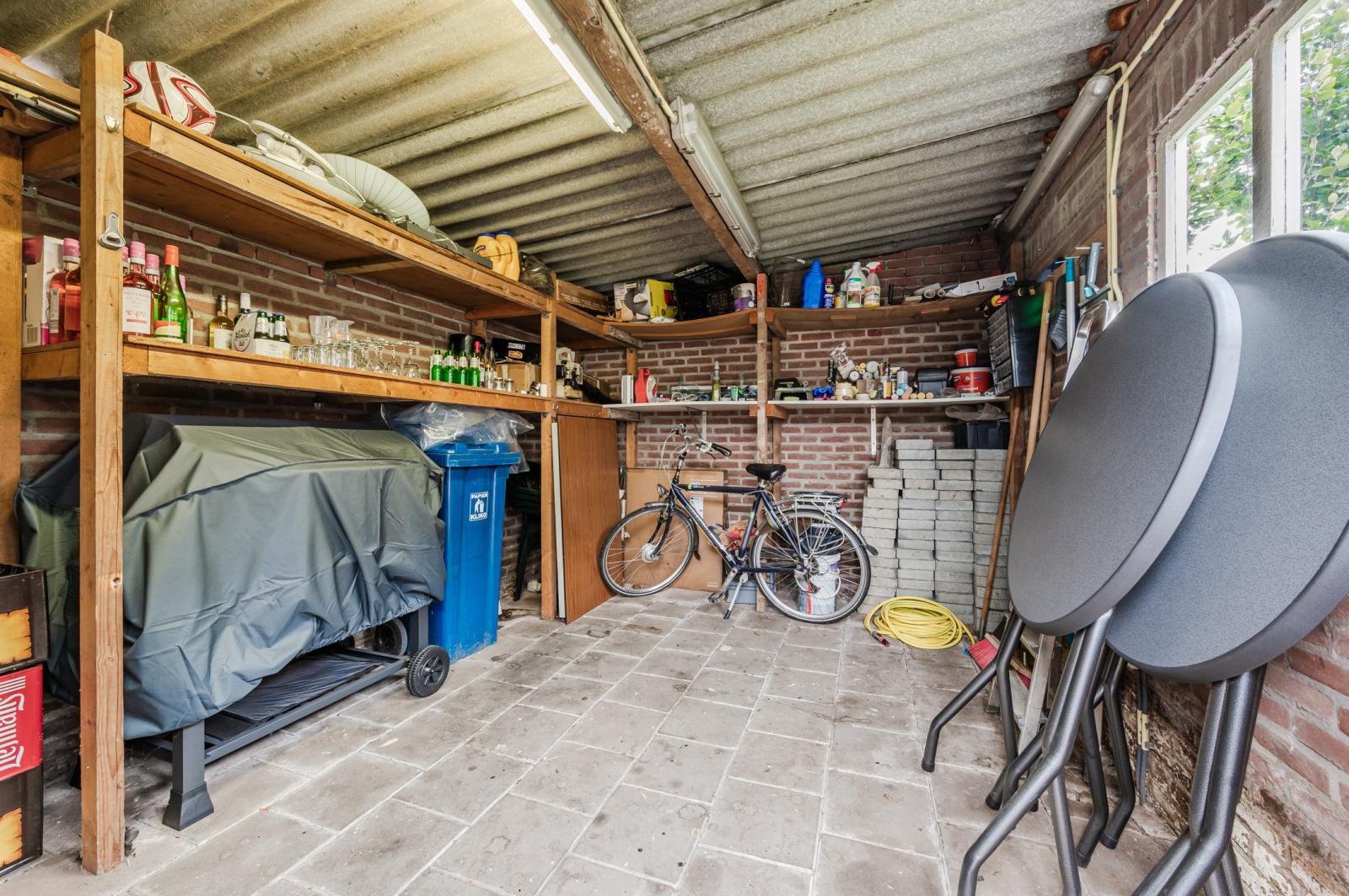Achterin staat een grote stenen berging met genoeg plek voor je fietsen en tuinspullen. De tuin is bereikbaar via een achterom.