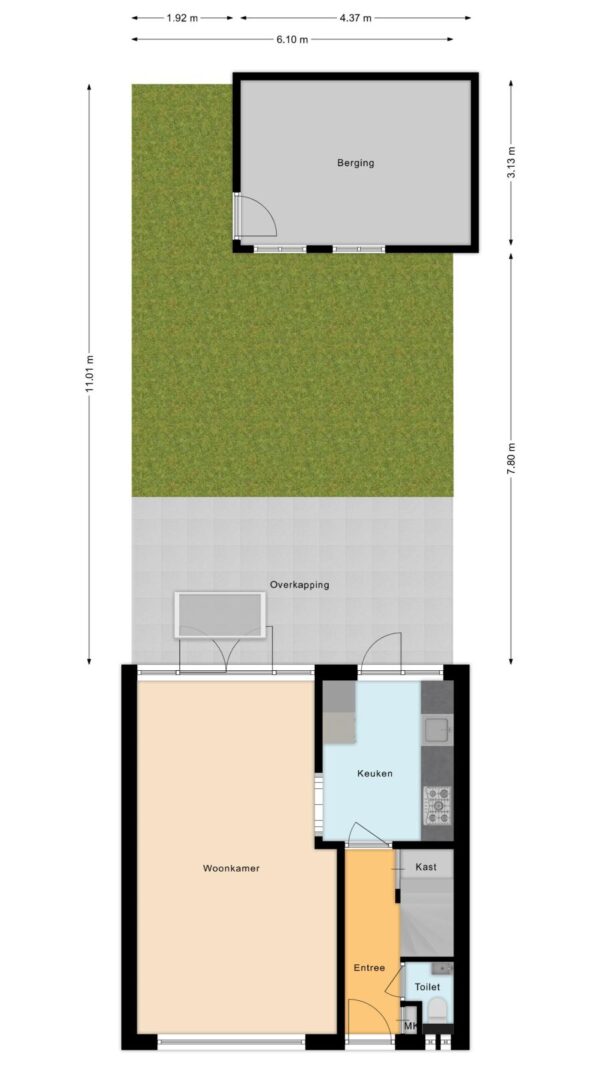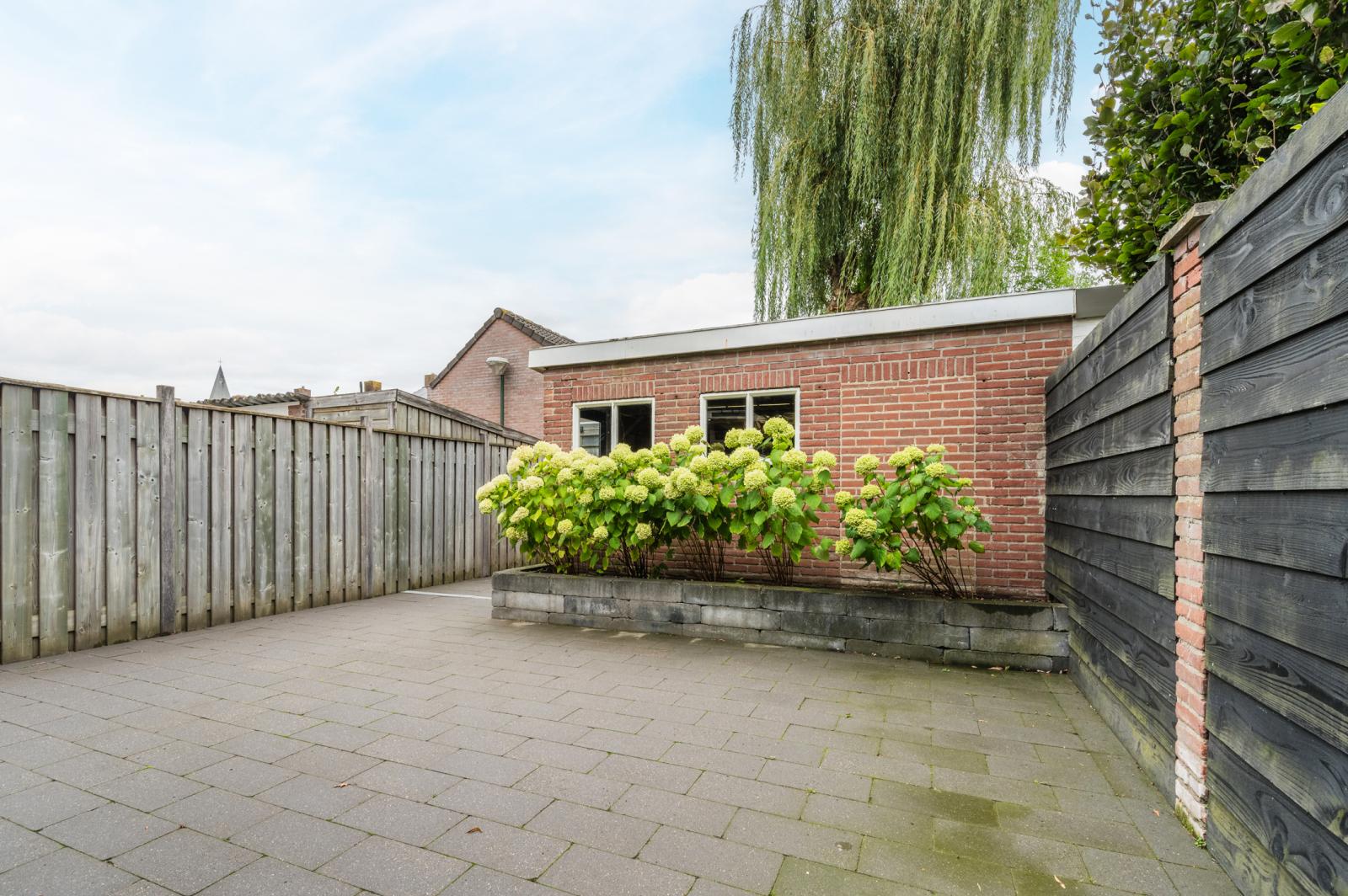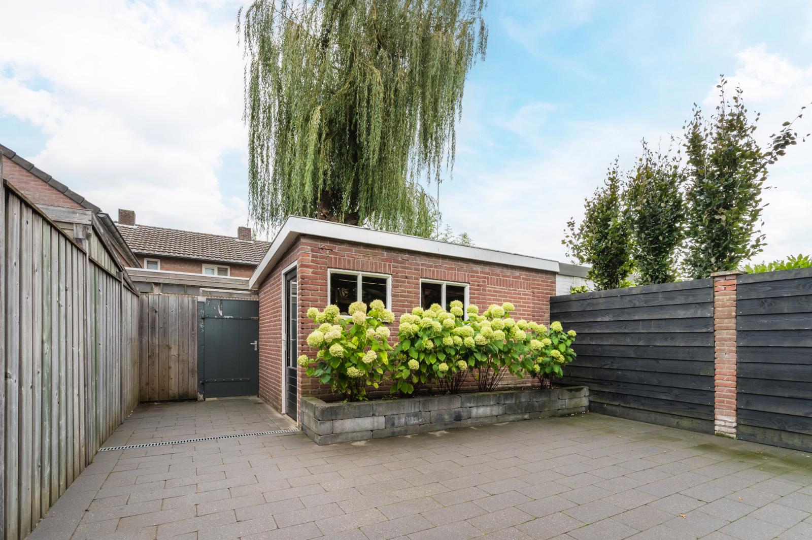 Achterin staat een grote stenen berging met genoeg plek voor je fietsen en tuinspullen. De tuin is bereikbaar via een achterom.