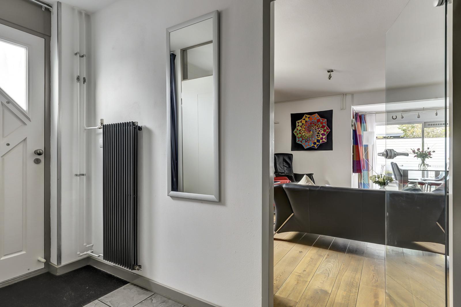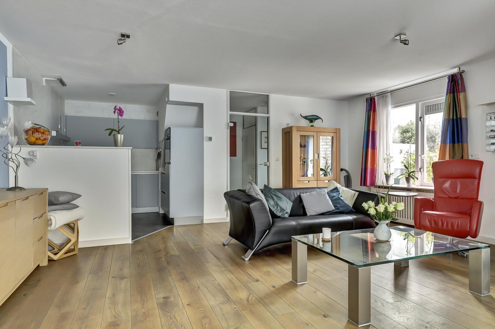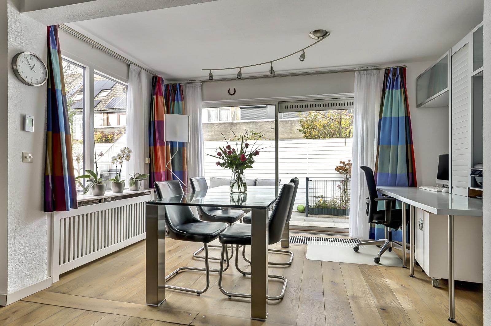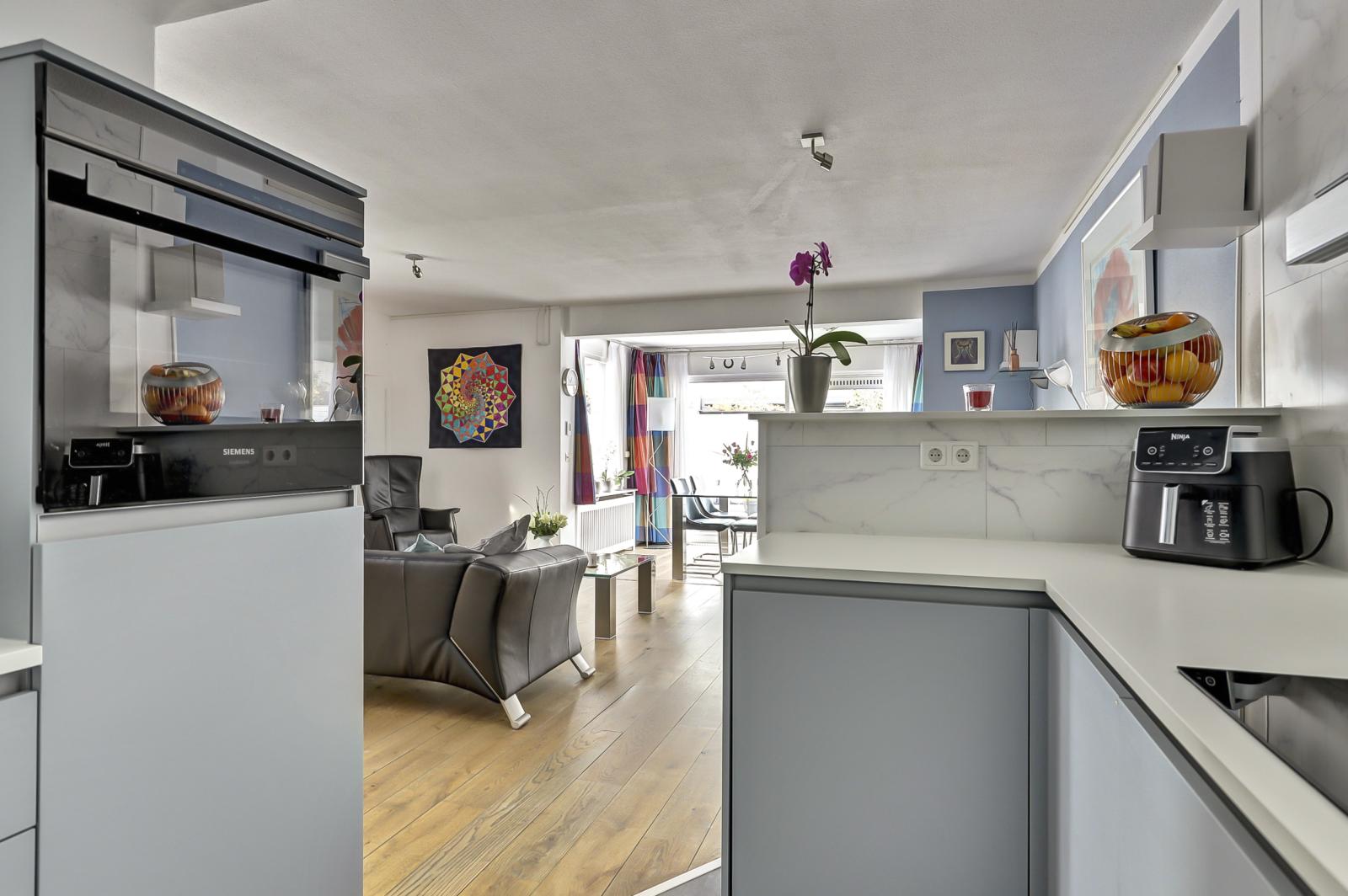 Through the well-kept front garden, where you will also find two storage units, you enter the hallway with the fuse box, toilet and staircase. The bright living room features a solid oak floor, a spacious extension for extra living space and sliding doors leading to the garden. The semi-open kitchen (2023) is modern and equipped with all essential appliances, including an induction hob with integrated extraction and a boiler for heated water . The neatly landscaped garden offers a lovely terrace where you can enjoy the sun throughout the day.