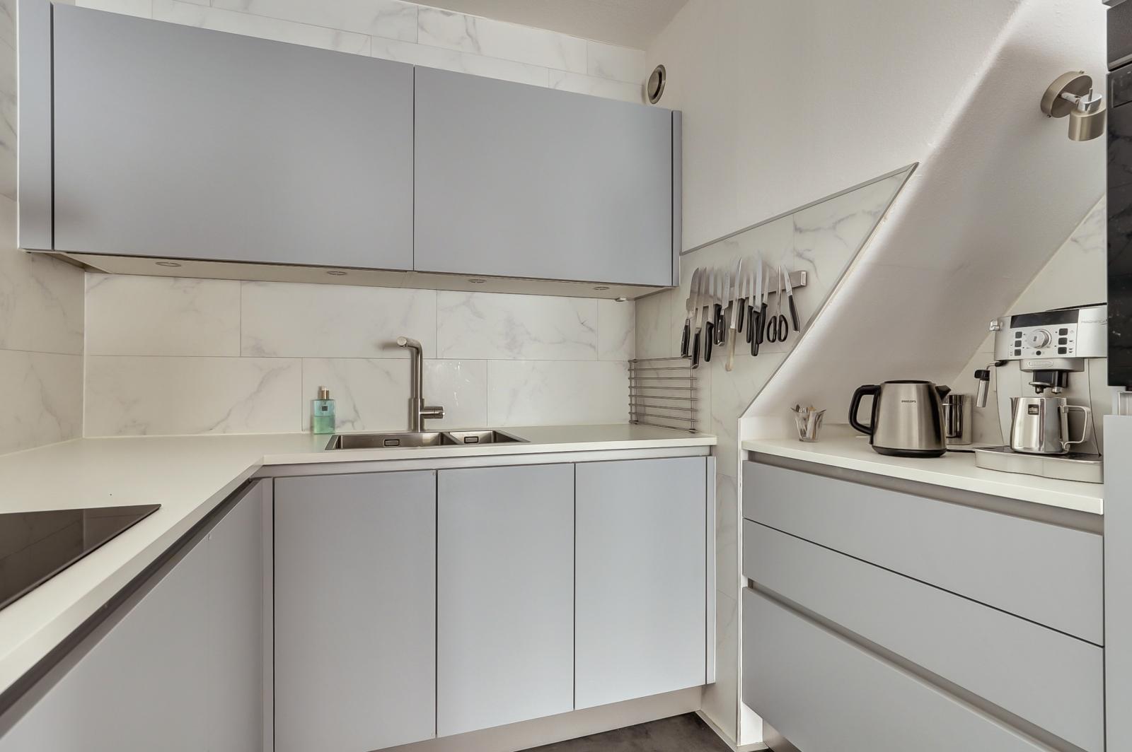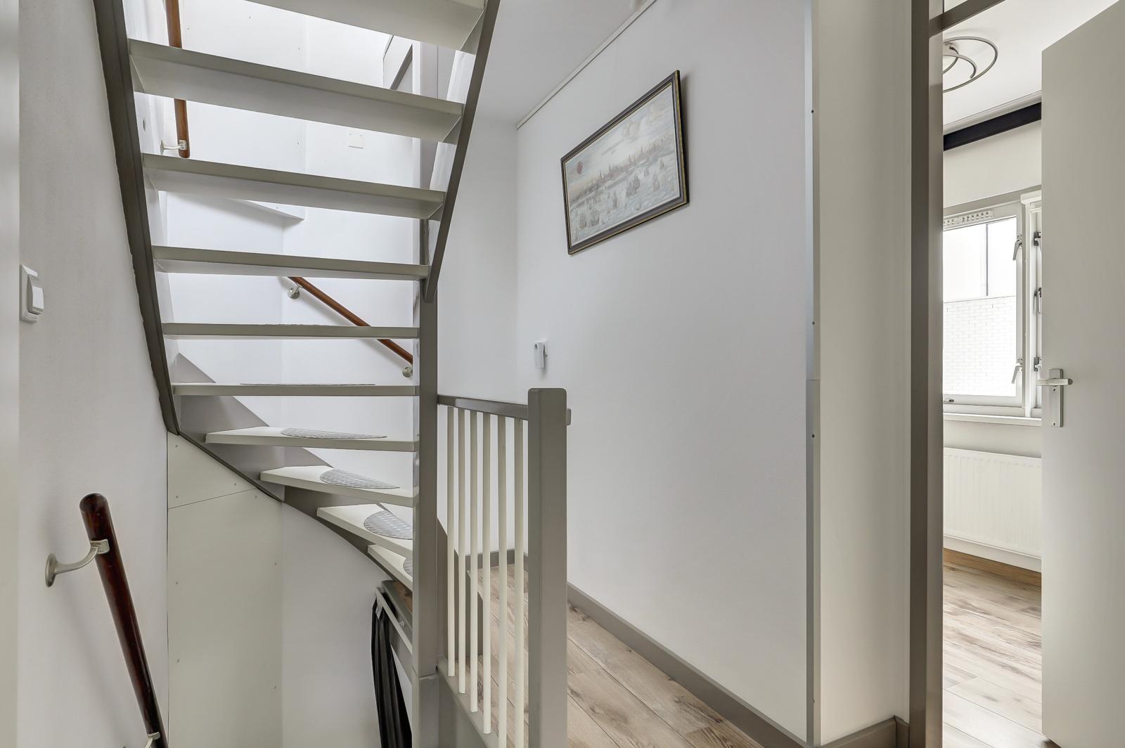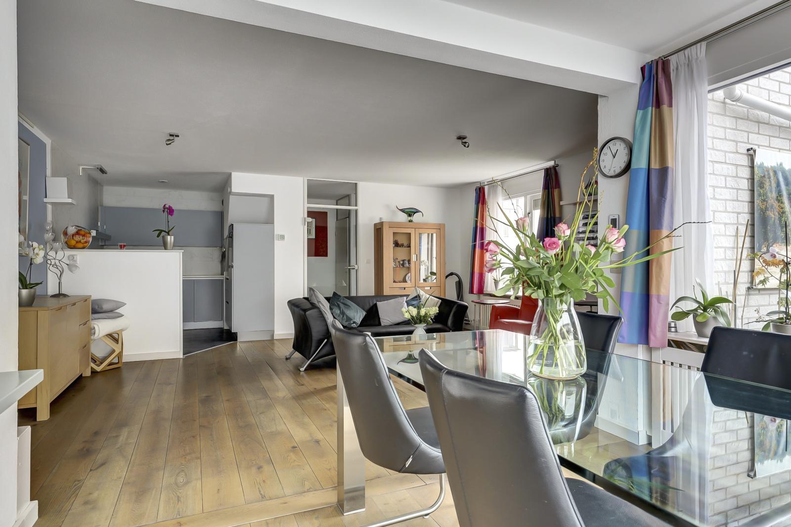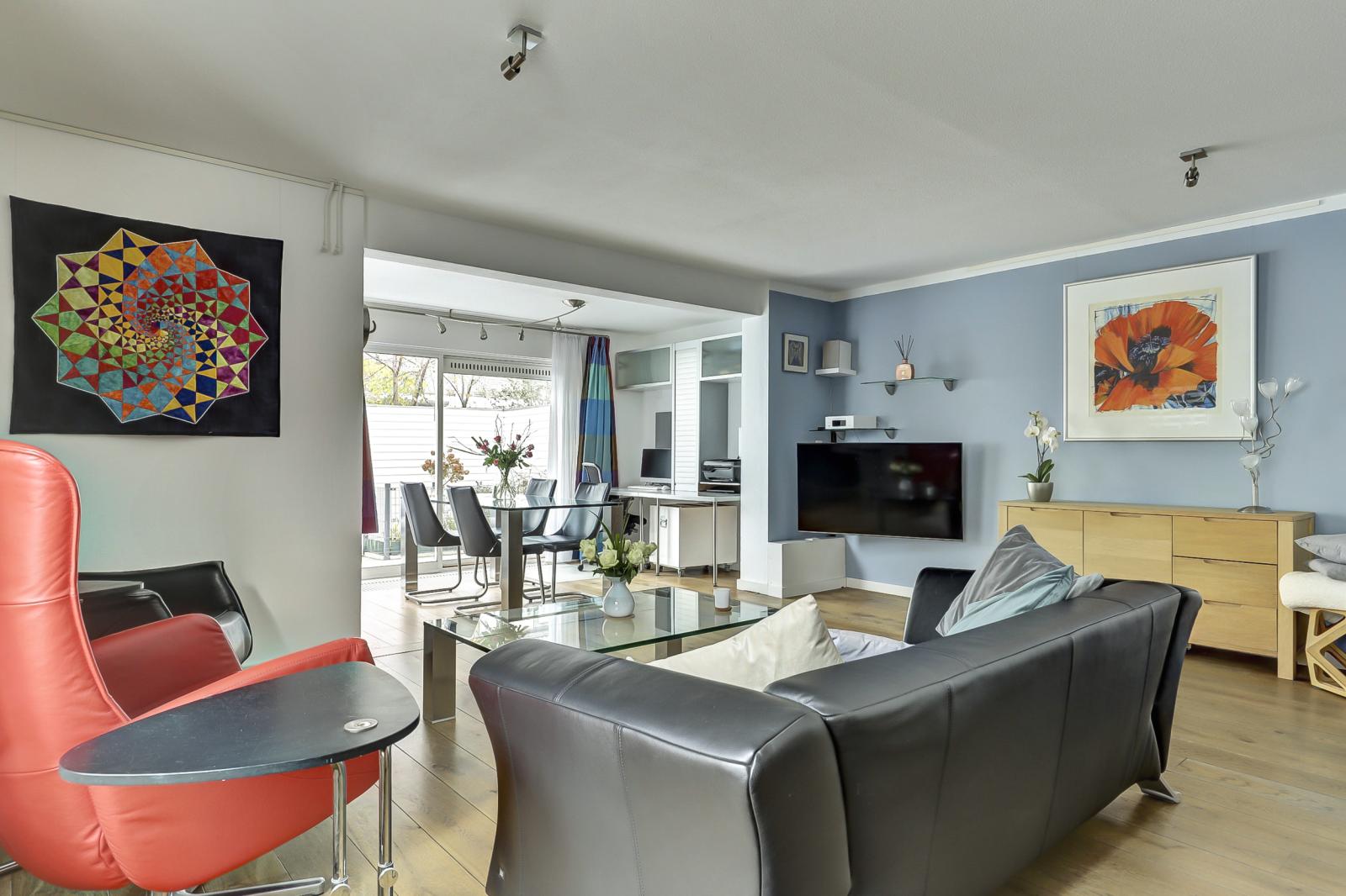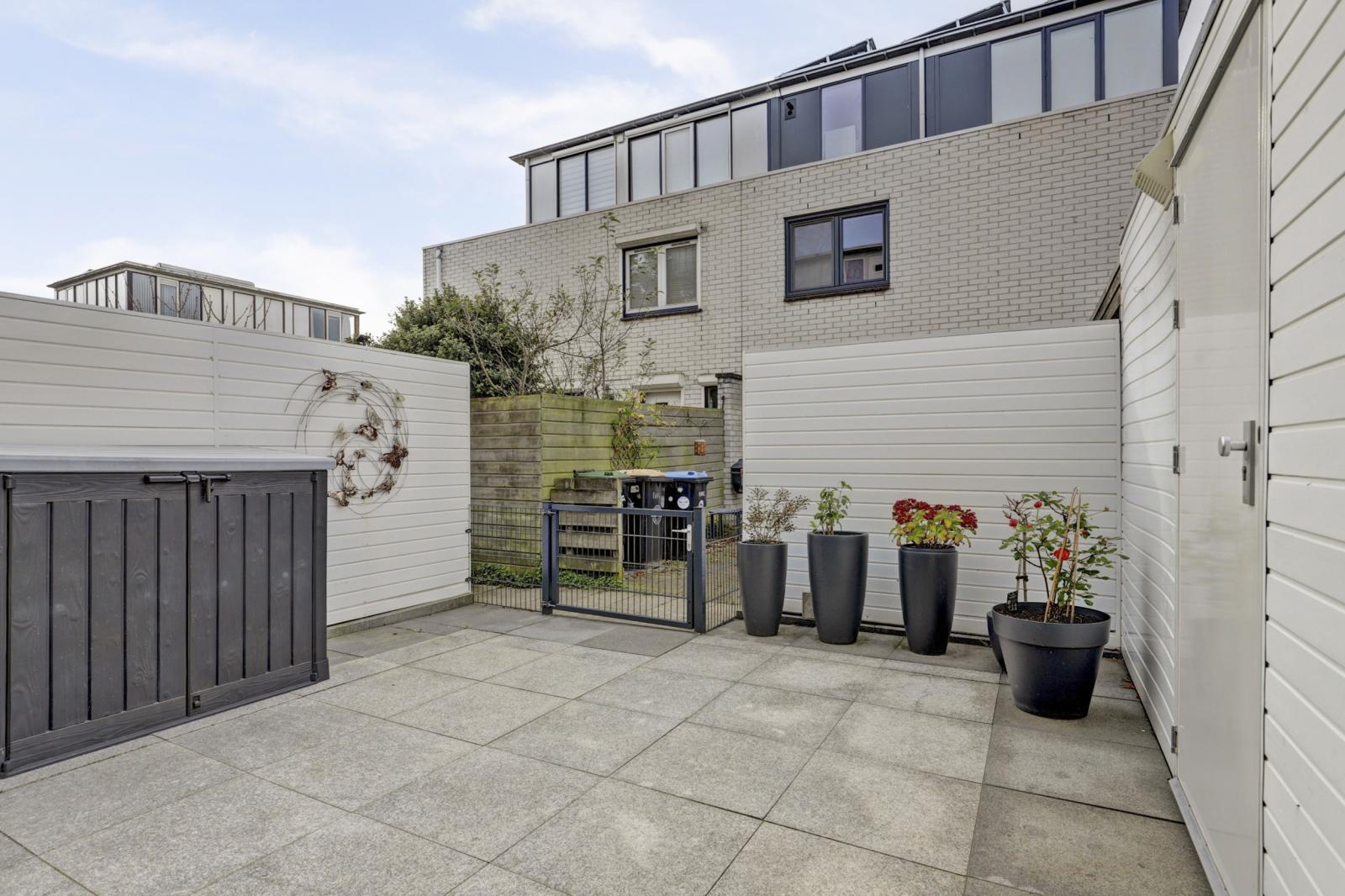 Through the well-kept front garden, where you will also find two storage units, you enter the hallway with the fuse box, toilet and staircase. The bright living room features a solid oak floor, a spacious extension for extra living space and sliding doors leading to the garden. The semi-open kitchen (2023) is modern and equipped with all essential appliances, including an induction hob with integrated extraction and a boiler for heated water . The neatly landscaped garden offers a lovely terrace where you can enjoy the sun throughout the day.