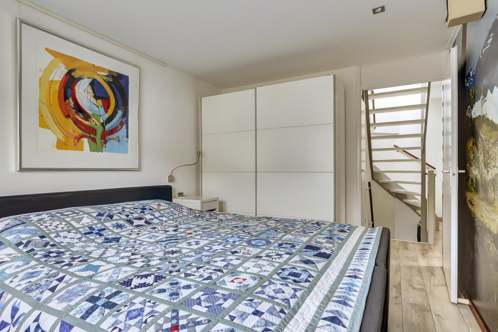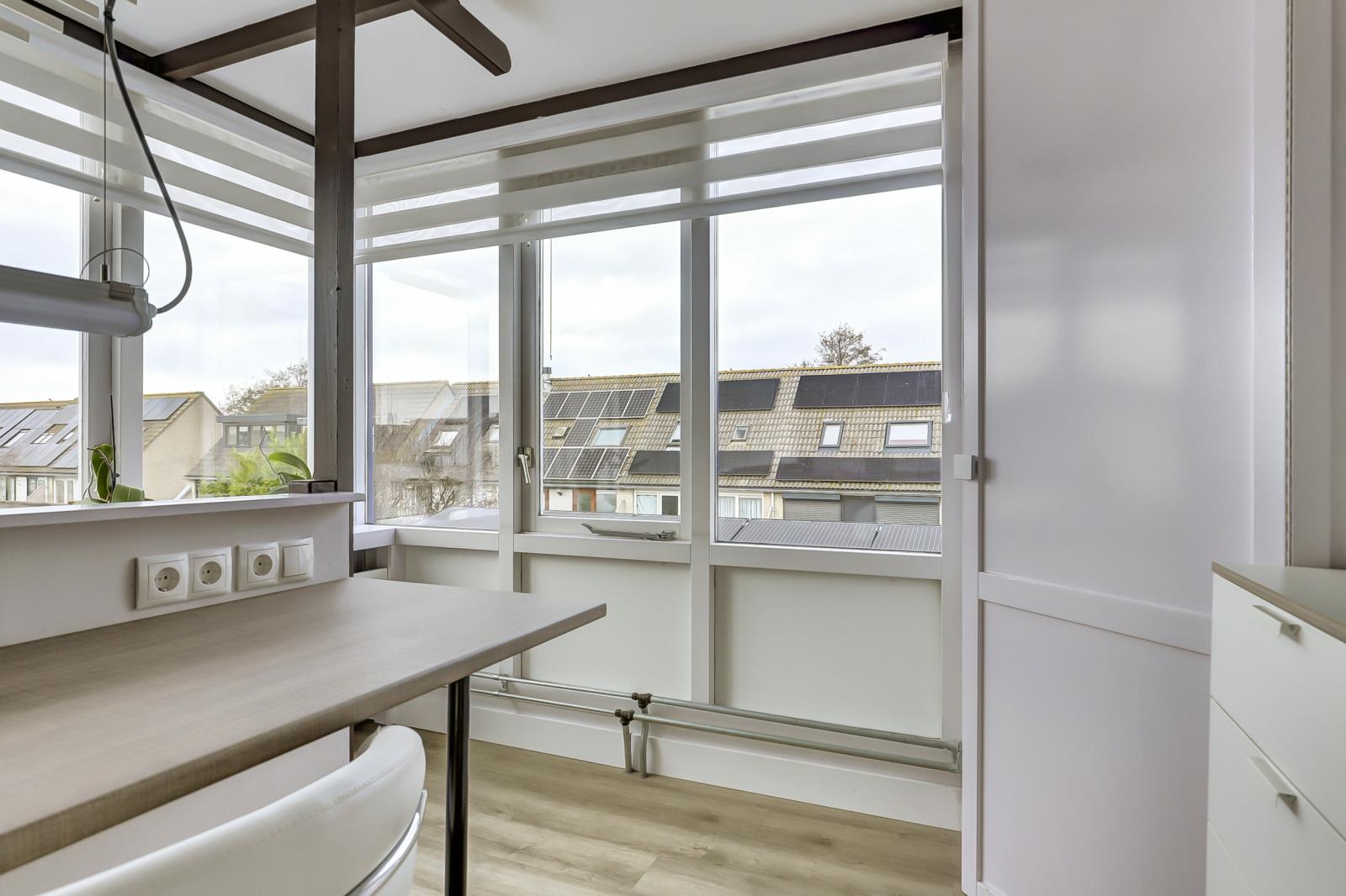 De zolderverdieping is ingericht als lichte hobby- of werkkamer, met daglicht van twee kanten. Een ideale werk-, logeer- of studieruimte.