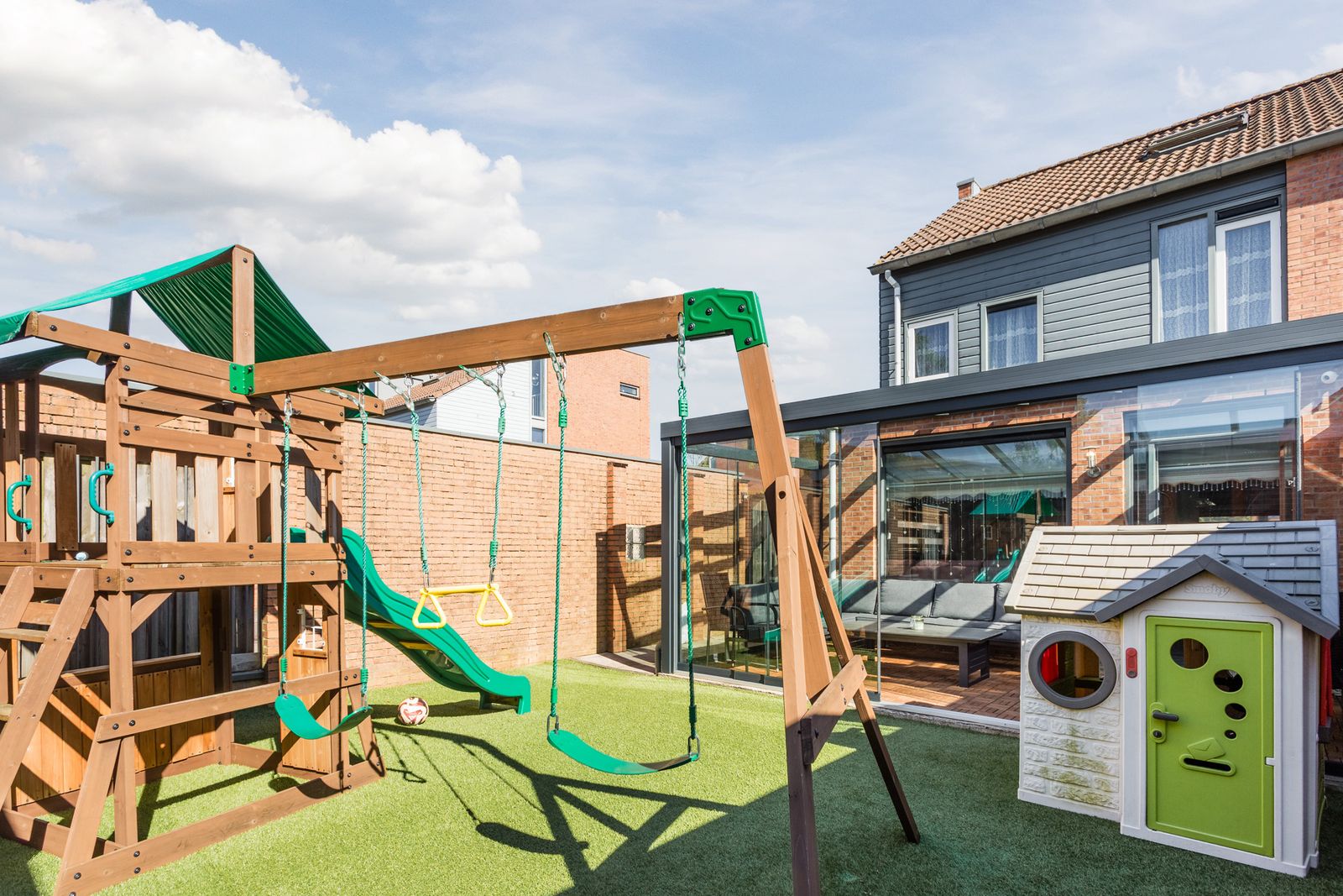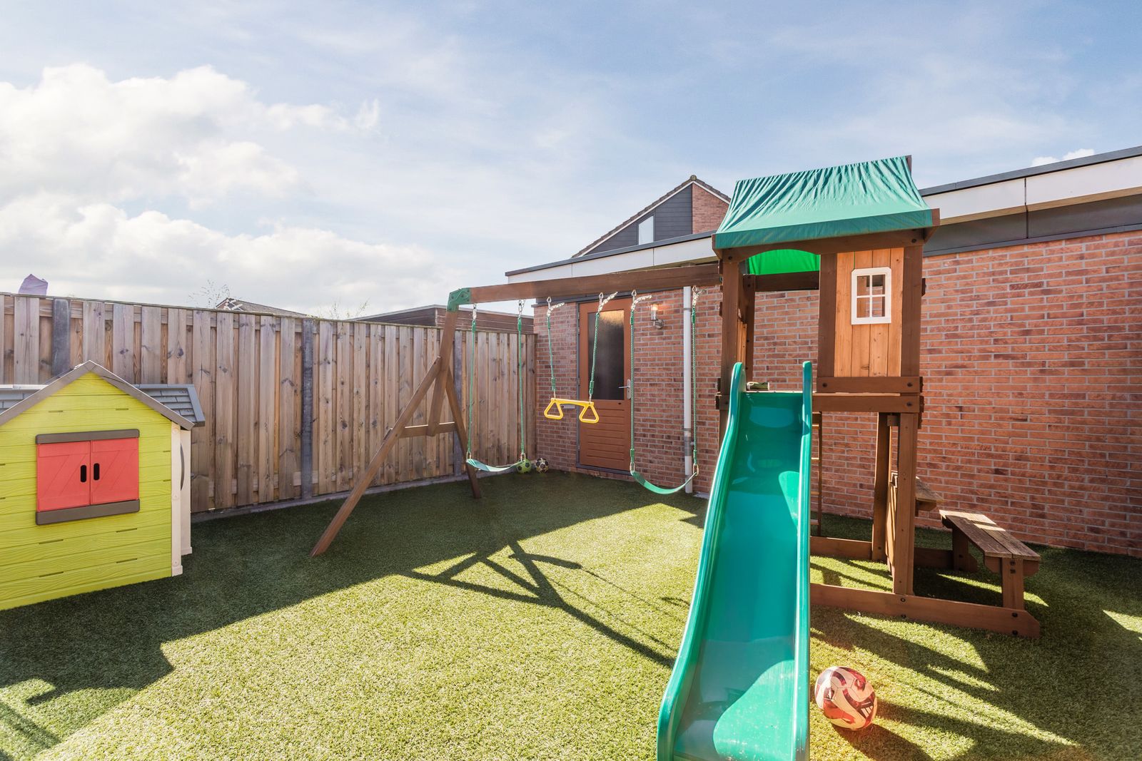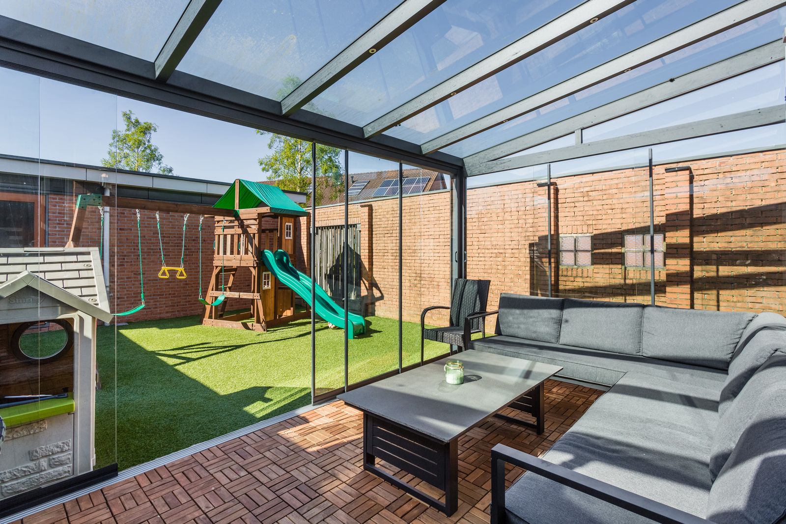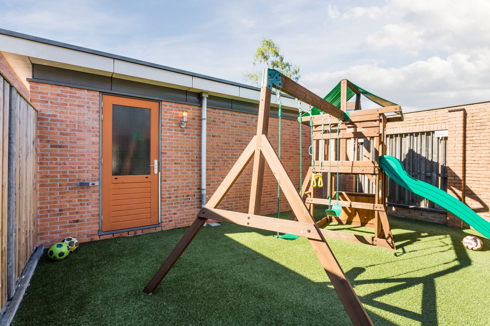 Aan de achterzijde zorgt de serre voor een waardevolle uitbreiding van de leefruimte. Hier geniet u van het buitengevoel, maar met het comfort van binnen — een plek die u het hele jaar door gebruikt. De achtertuin van circa 84 m² ligt op het noordwesten en biedt volop ruimte om te ontspannen en te genieten van het buitenleven. Dankzij de fijne afmetingen is de tuin uitermate geschikt voor gezinnen met kinderen: er is voldoende plek om te spelen, een trampoline te plaatsen of gezellig samen buiten te zitten.
