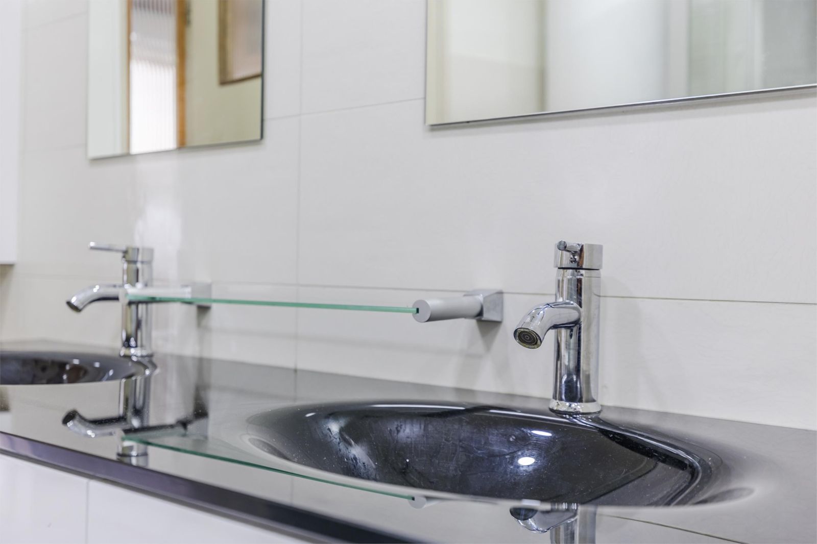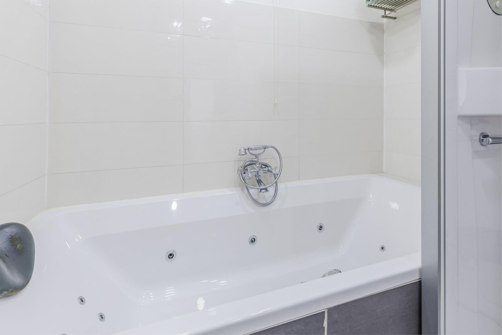 De badkamer is voorzien van een groot bubbelbad van 2 meter en dubbele wasbak met spiegels met ledverlichting.