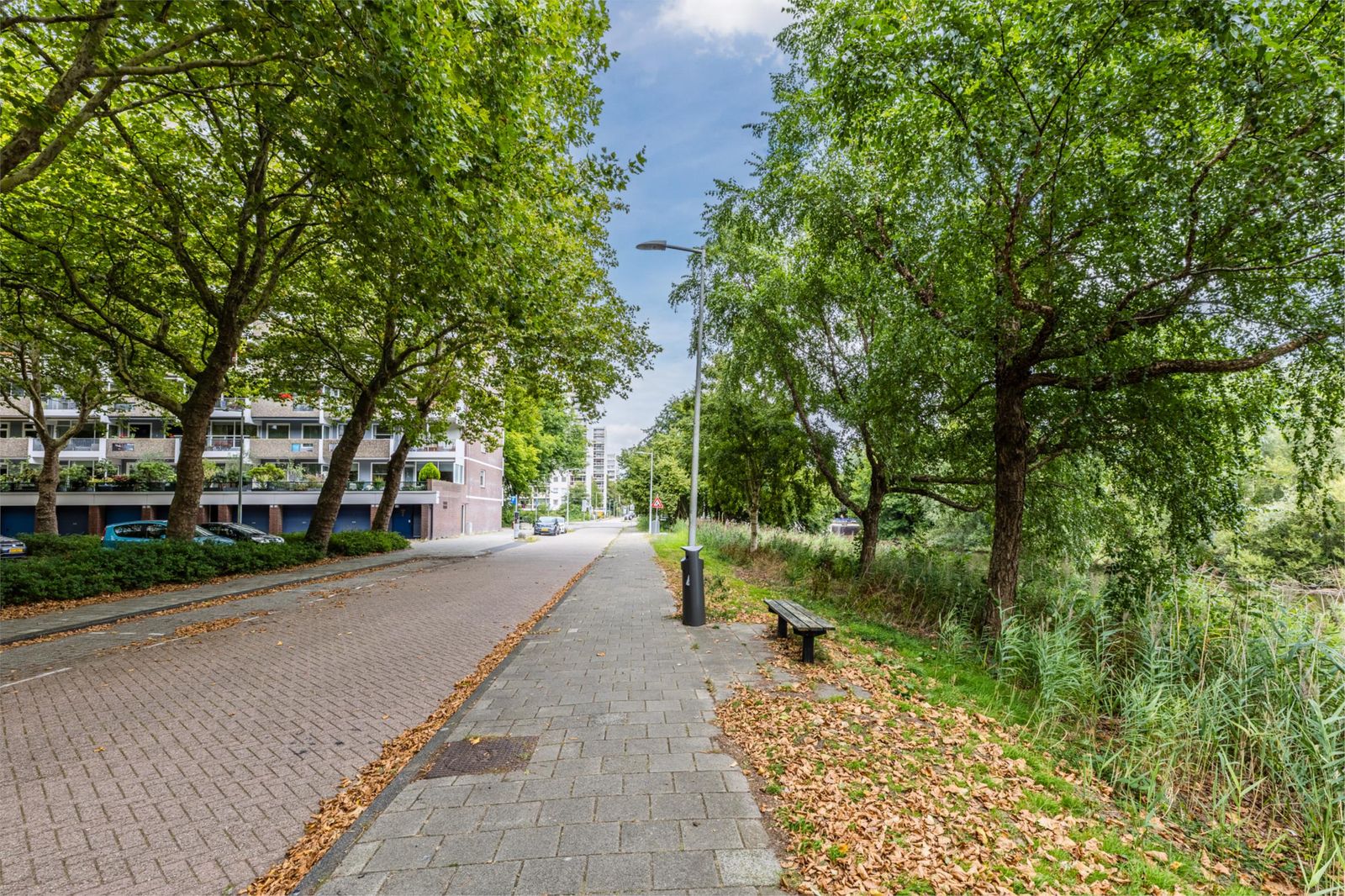 aan rustige weg, in woonwijk, vrij uitzicht