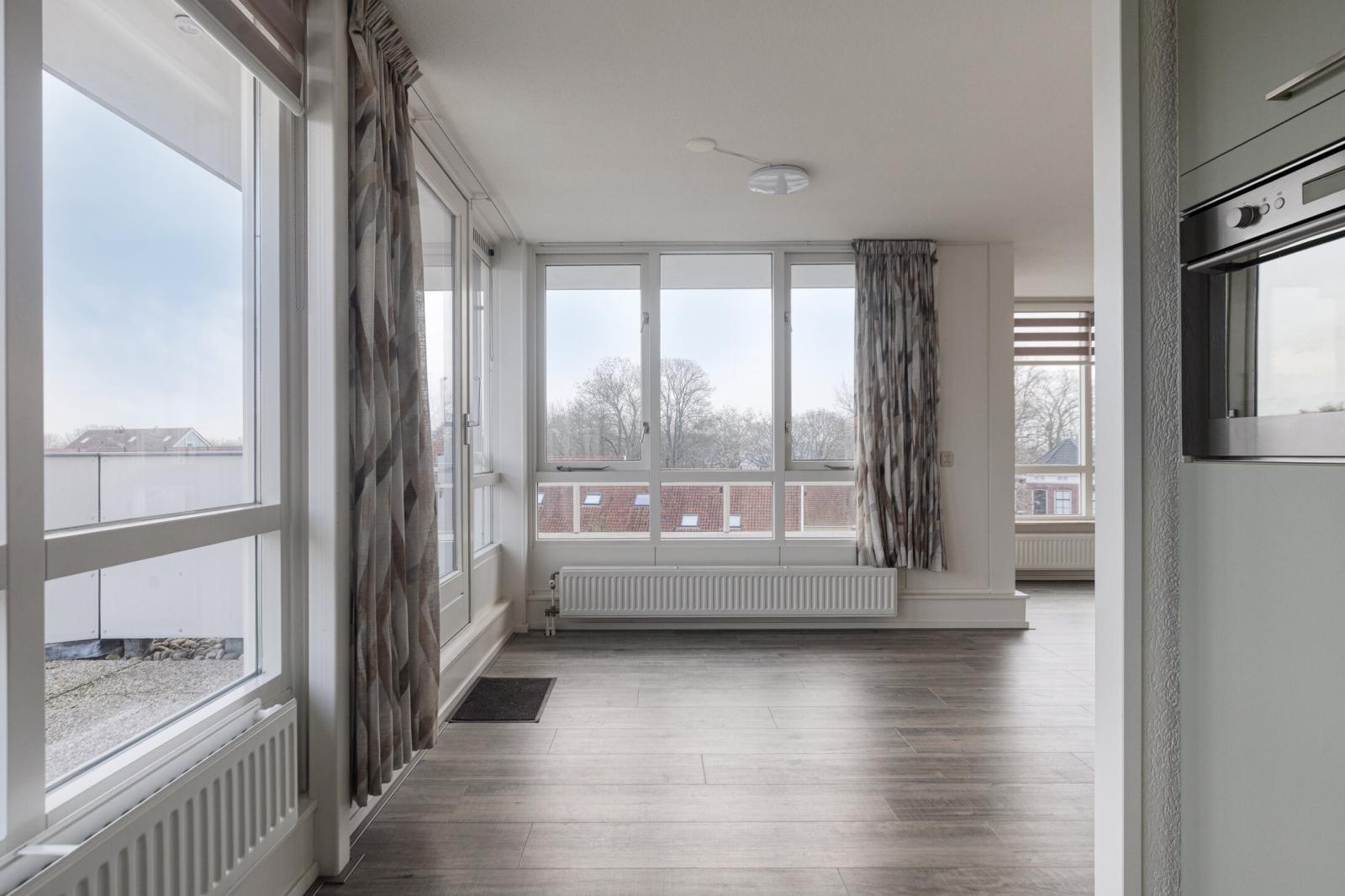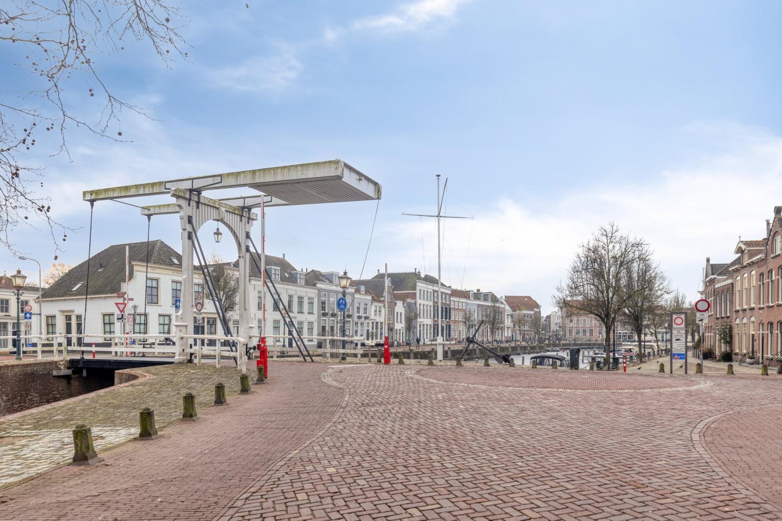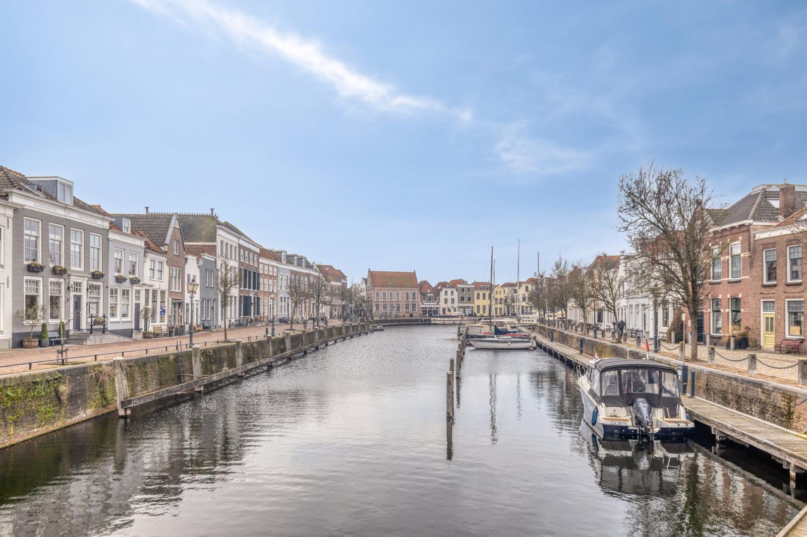 De ligging is uitstekend. Supermarkten zoals Aldi en Albert Heijn bevinden zich op loopafstand en ook het historische stadscentrum met de gezellige markt is eenvoudig lopend te bereiken. Alle dagelijkse voorzieningen zijn hier binnen handbereik. Ondanks de centrale ligging heerst in het appartement een rustige sfeer. Aan de achterzijde, bij de woonkamer, kijkt u fraai uit over het water, waar in de zomermaanden een levendig schouwspel van pleziervaartuigen richting de stadshaven voorbijtrekt.