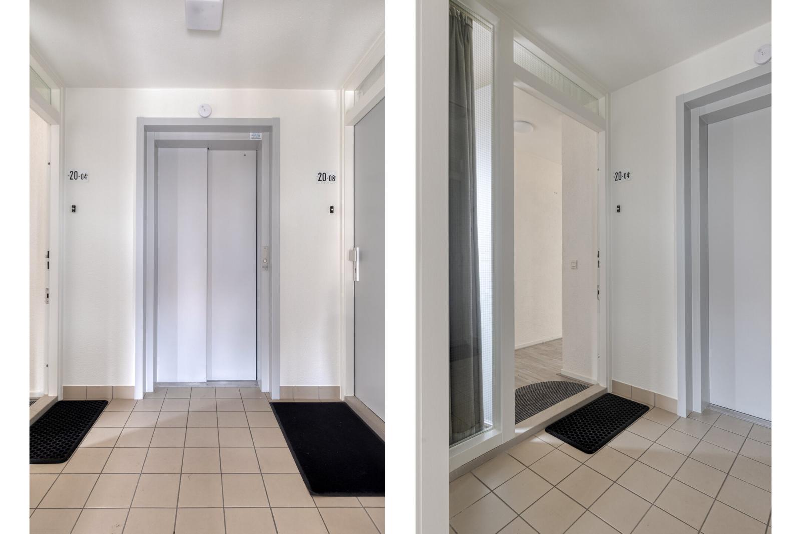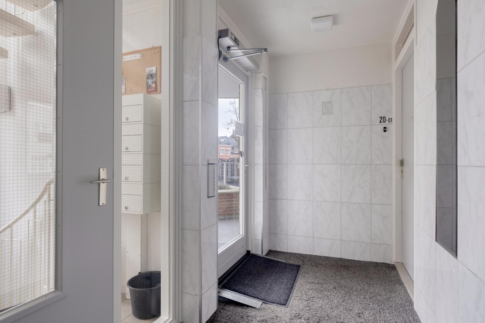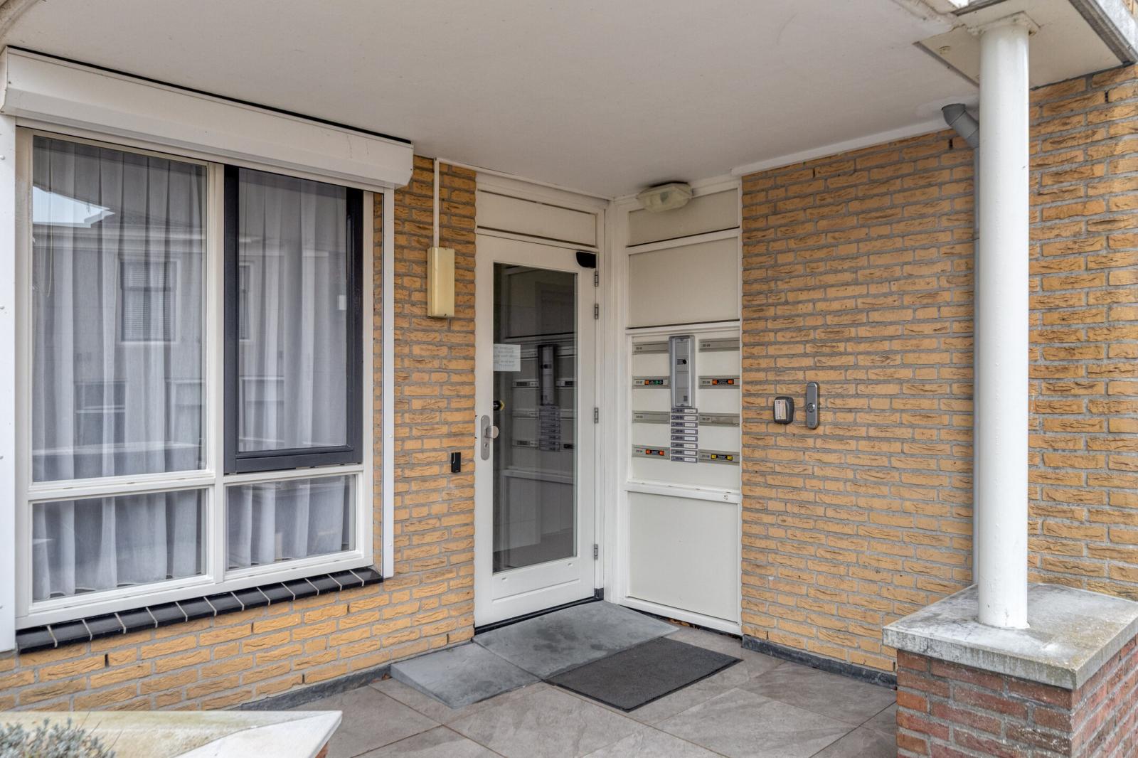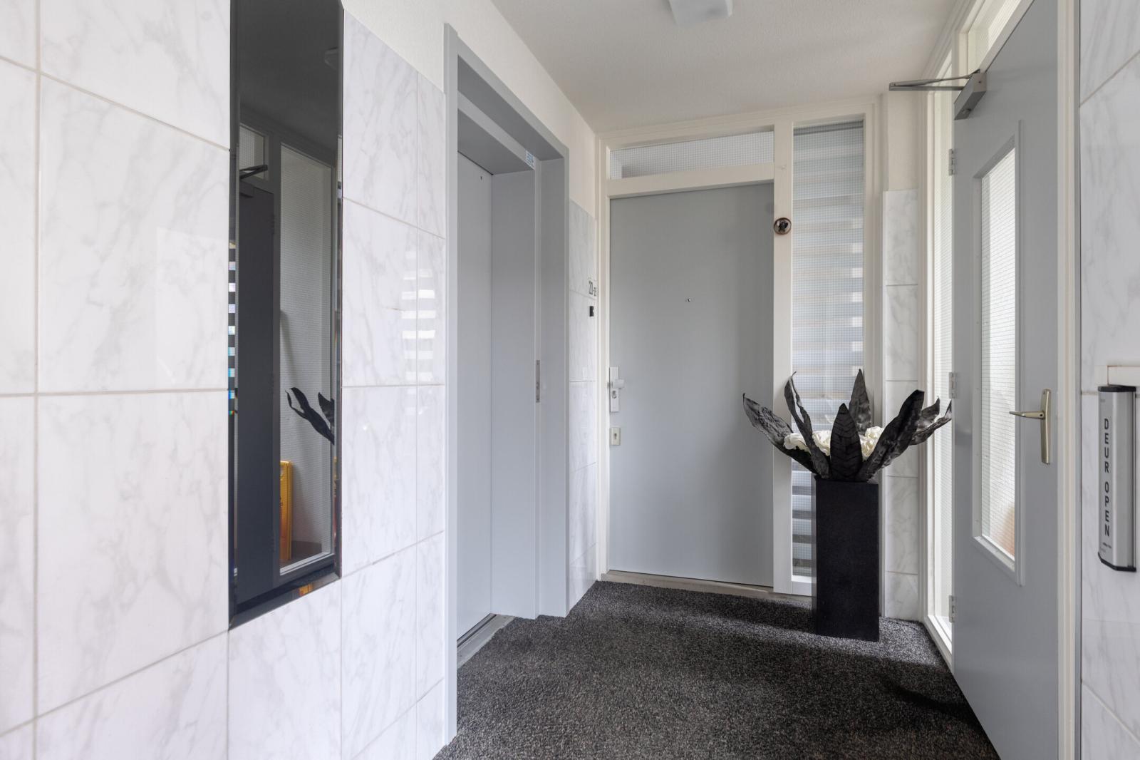 Op de begane grond bevindt zich het gemeenschappelijke voorportaal met videofooninstallatie en brievenbussen. Vanuit hier zijn zowel het appartement als de berging en parkeerplaats bereikbaar via de lift of trap.
