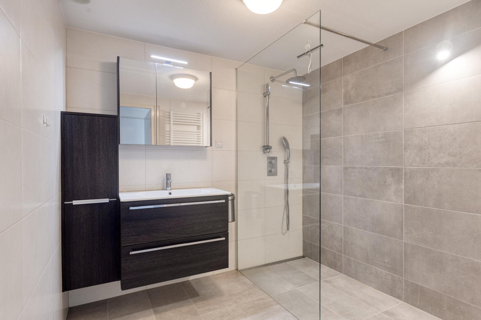 Het appartement beschikt over twee slaapkamers, een keurige badkamer, een apart toilet, een garderobenis en praktische kastruimtes voor was- en droogapparatuur en de cv-installatie. De badkamer is voorzien van een fraai wastafelmeubel met spiegel, een designradiator en een royale inloopdouche met hardglazen wand.