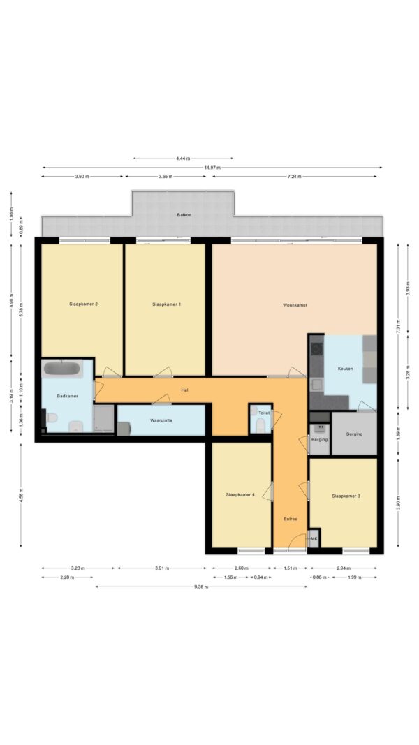 Het appartement beschikt over vier ruime slaapkamers van ca. 21 m², 20 m², 12 m² en 11 m². De slaapkamer van ca. 20 m² is voorzien van openslaande deuren naar het balkon en kan desgewenst eenvoudig worden samengevoegd met de woonkamer.