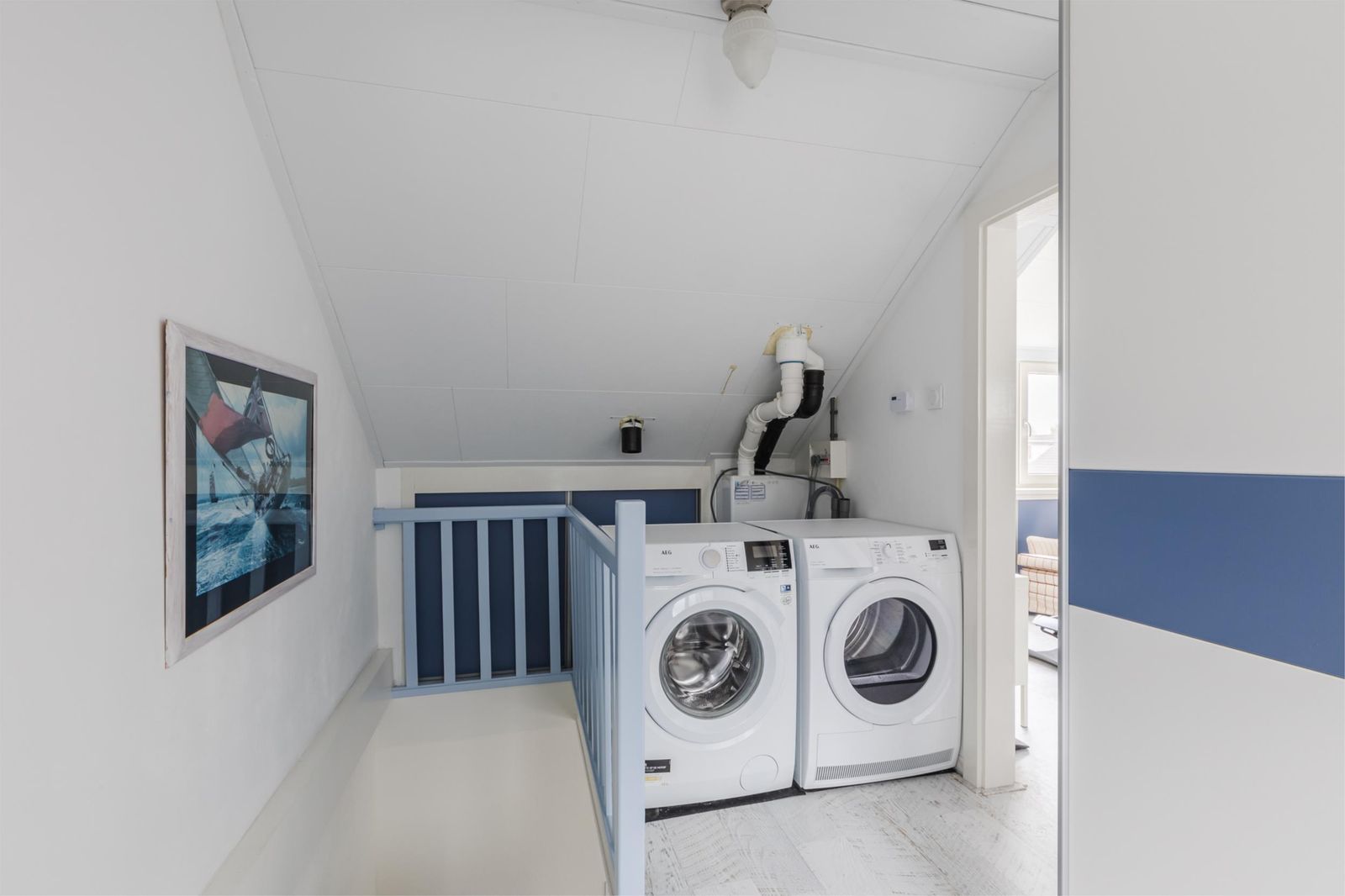 Voorzolder met opstelling c.v.-installatie en aansluitingen voor de wasmachine en droger, alsmede een grote zolder, voorzien van dakkapellen aan de voor- én achterzijde. Deze ruimte is eenvoudig op te splitsen in twee (slaap)kamers.