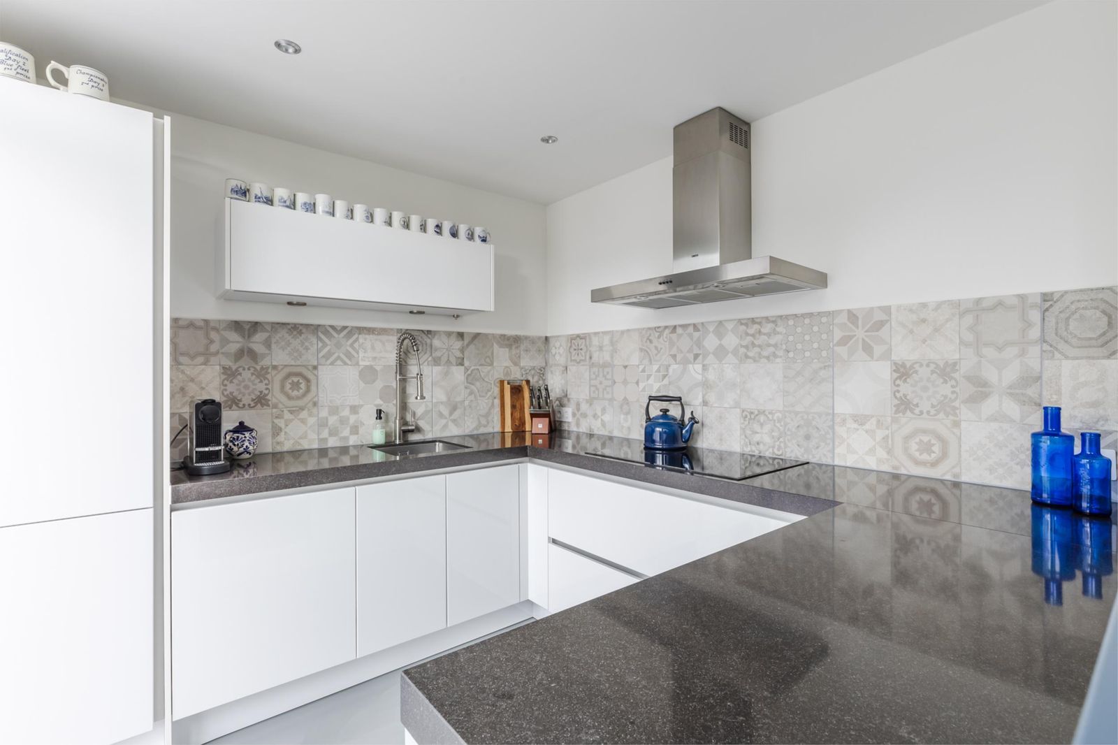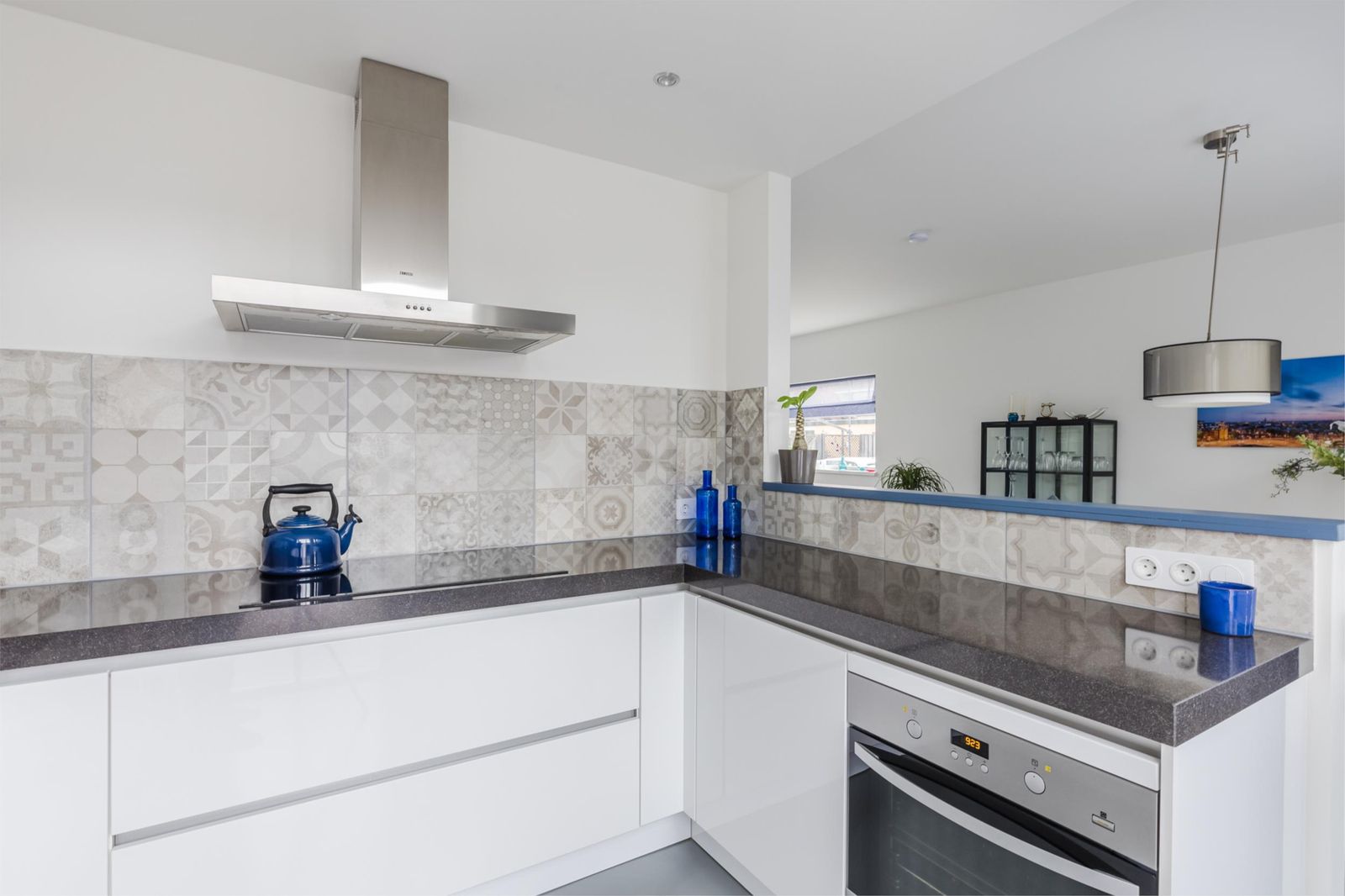 De moderne keuken is voorzien van alle benodigde apparatuur en deur naar de achtertuin, gelegen op het zuiden, met achterom en toegang tot een grote vrijstaande garage.