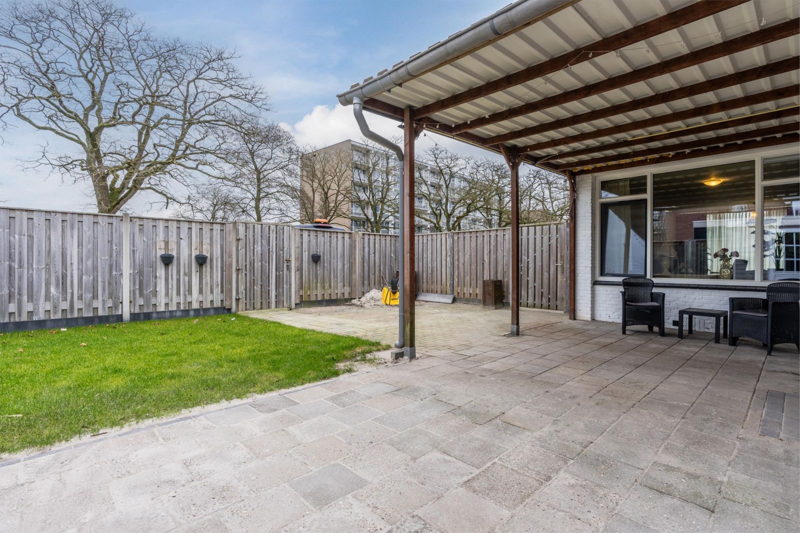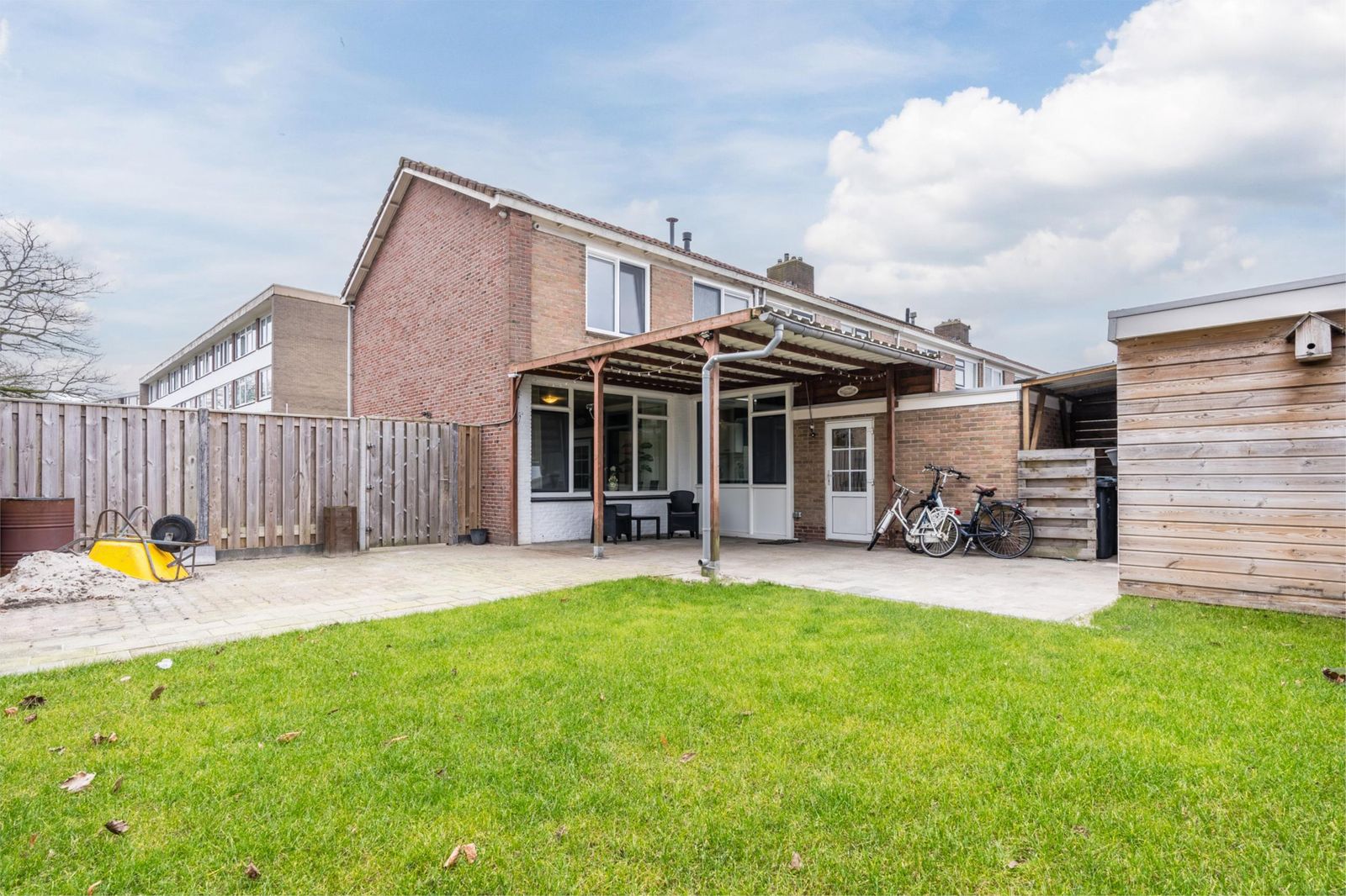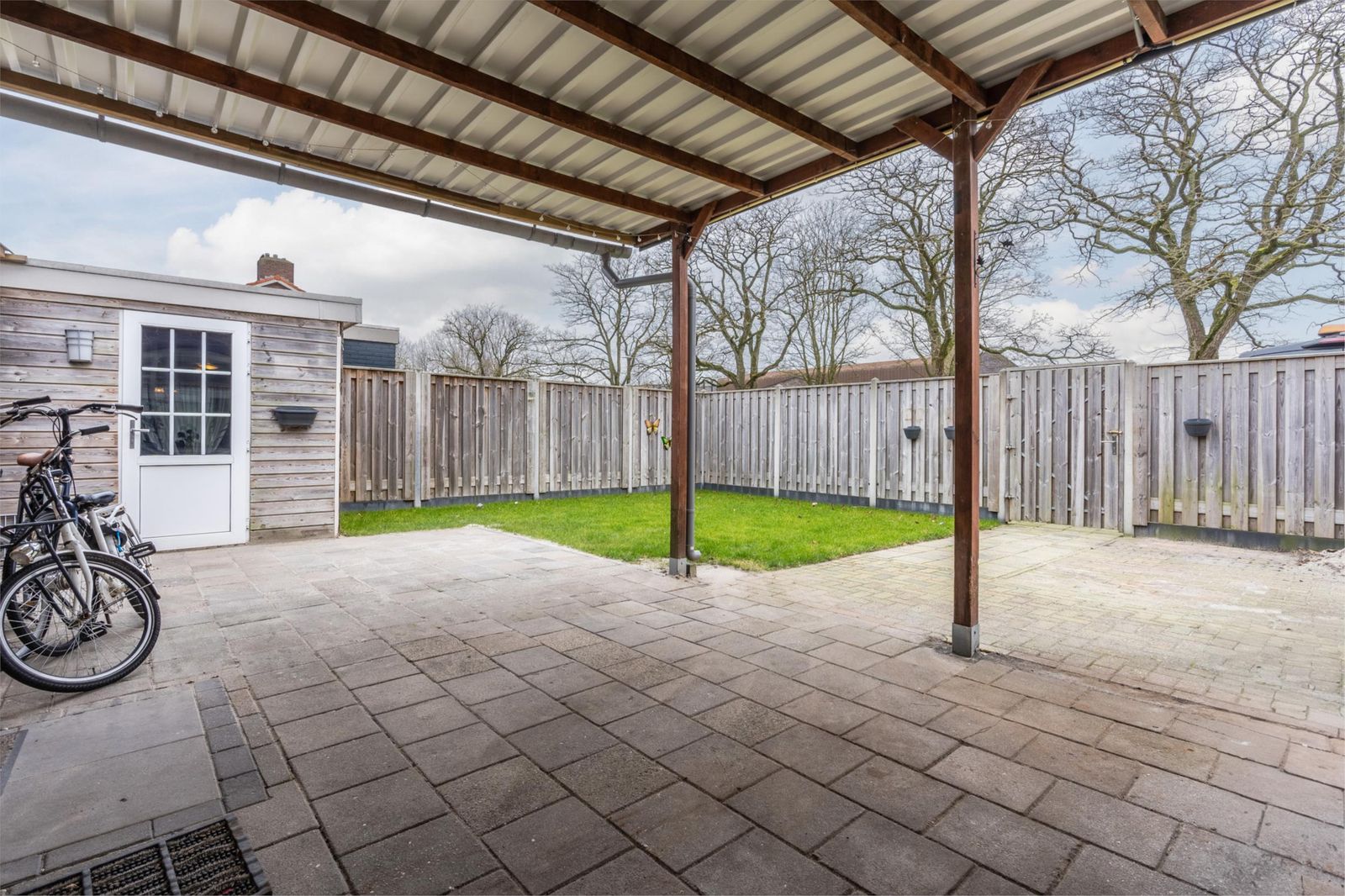 In de tuin staat een schuur en aan de woning staat een mooie overkapping waar u lekker onder kan vertoeven. Om de tuin staat een hoge dichte schutting waardoor de tuin helemaal is afgesloten van de buitenwereld en u in alle privacy tot rust kan komen.