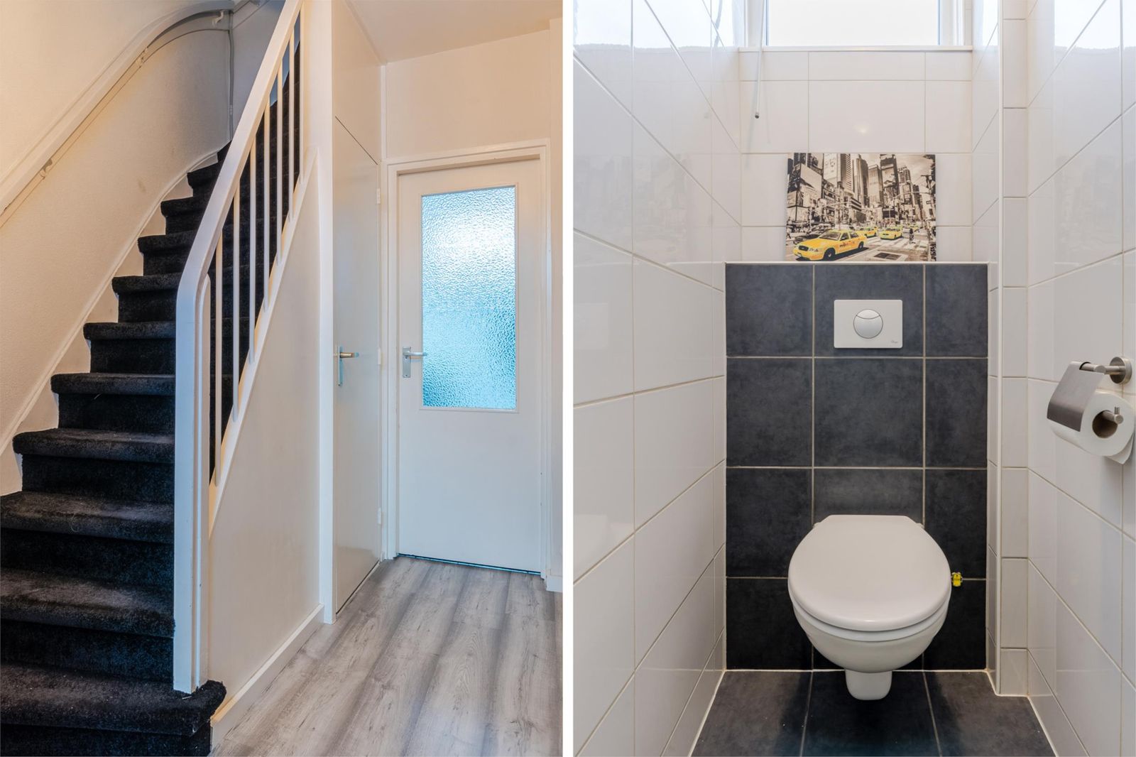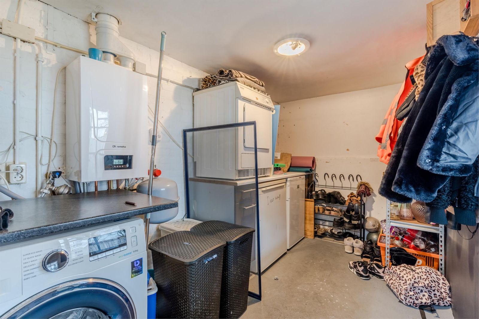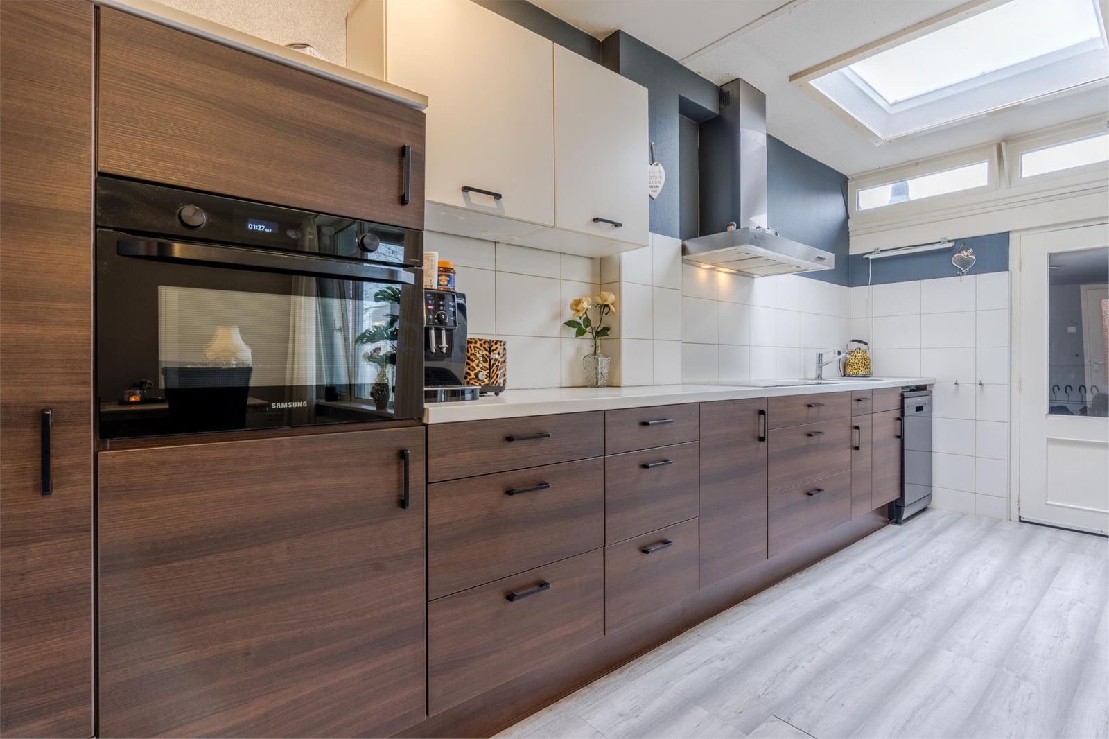 Mooie ruime entree, waar de jas kan worden opgehangen met onder de kelder een kelderkast, de toilet is hier ook gesitueerd. Vanuit de entree komt u in de mooie ruime open keuken, deze staat in directe verbinding met de woonkamer. De keuken is voorzien van een lichtkoepel welke de keuken naast de raampartij voorziet van prettige lichtinval. De woonkamer is ruim, licht en geeft mooi zicht in de straat. Doordat er geen directe overburen zijn is de inkijk beperkt. Aansluitend aan de keuken is een mooie grote berging gerealiseerd.