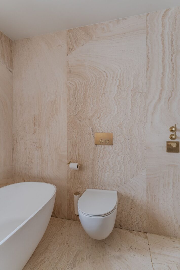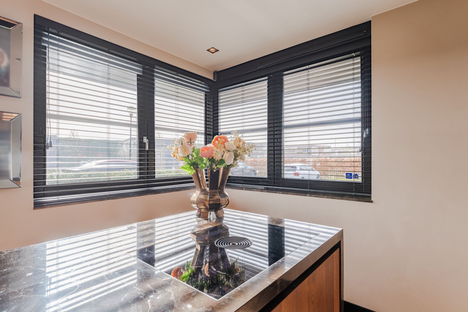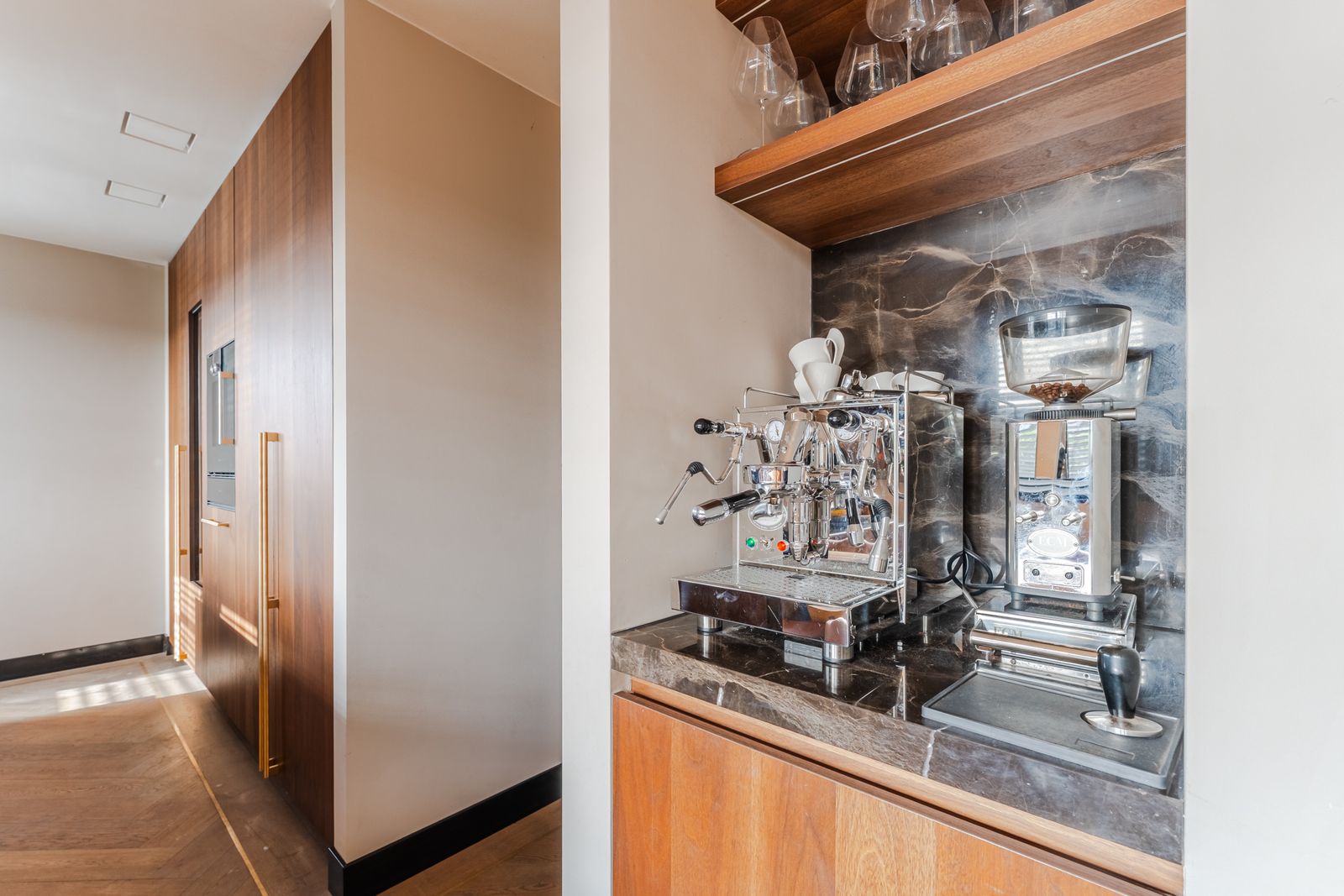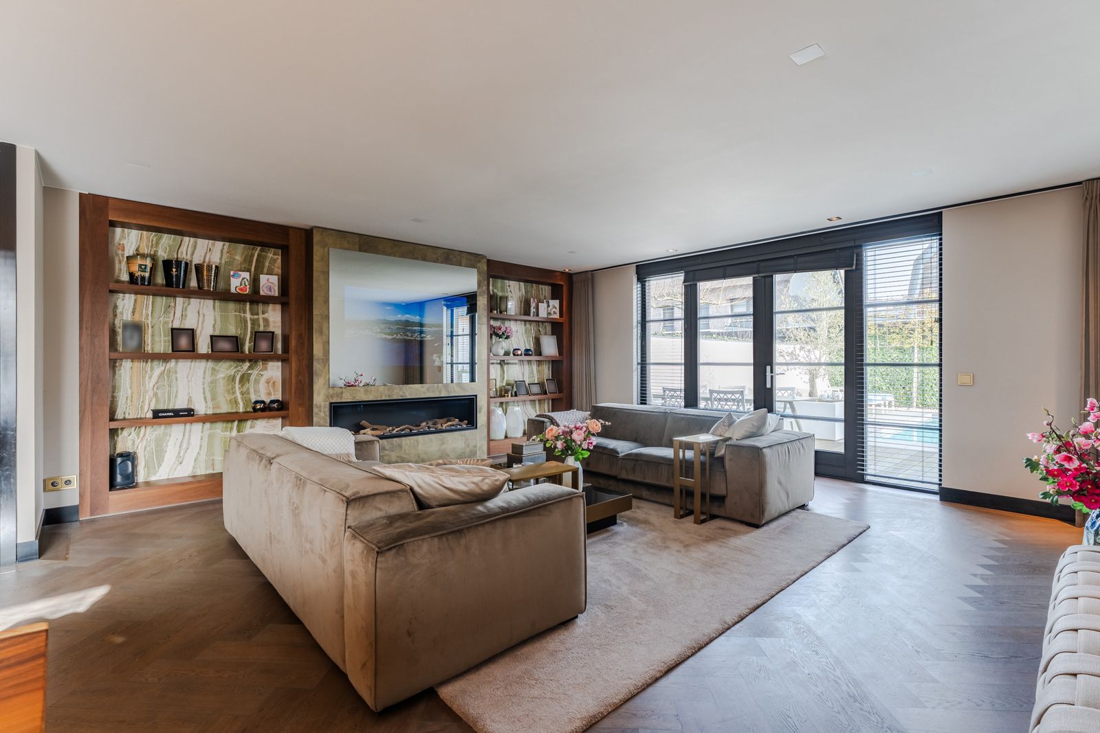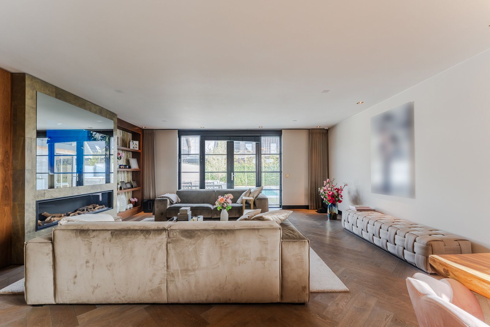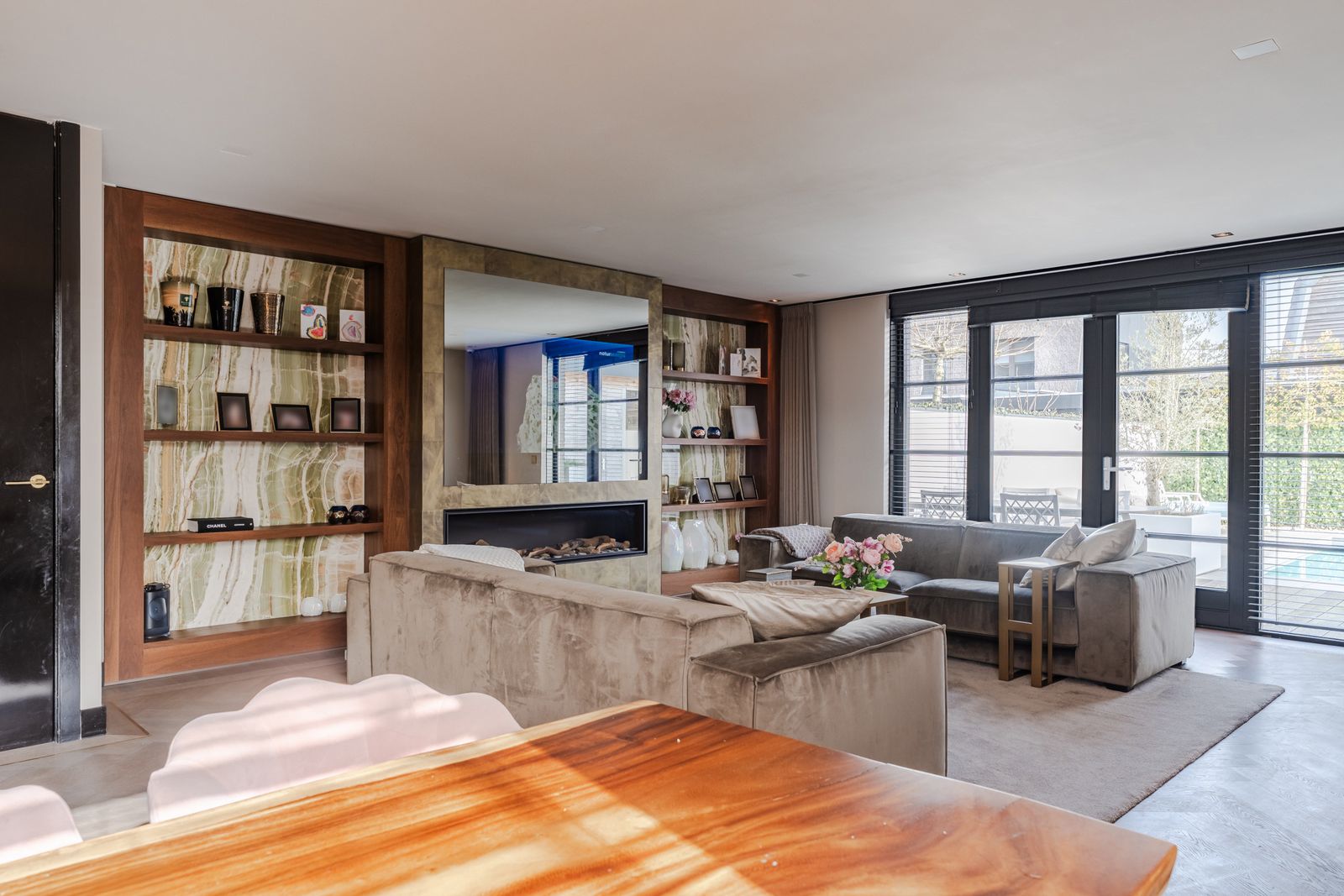 De royale woonkamer is een echte eyecatcher, afgewerkt met exclusief marmer epoxy uit Iran, doorgetrokken in zowel de living als het toilet, wat zorgt voor een unieke en luxe uitstraling. De open design keuken is uitgerust met hoogwaardige Gaggenau-apparatuur en vormt het hart van de woning.