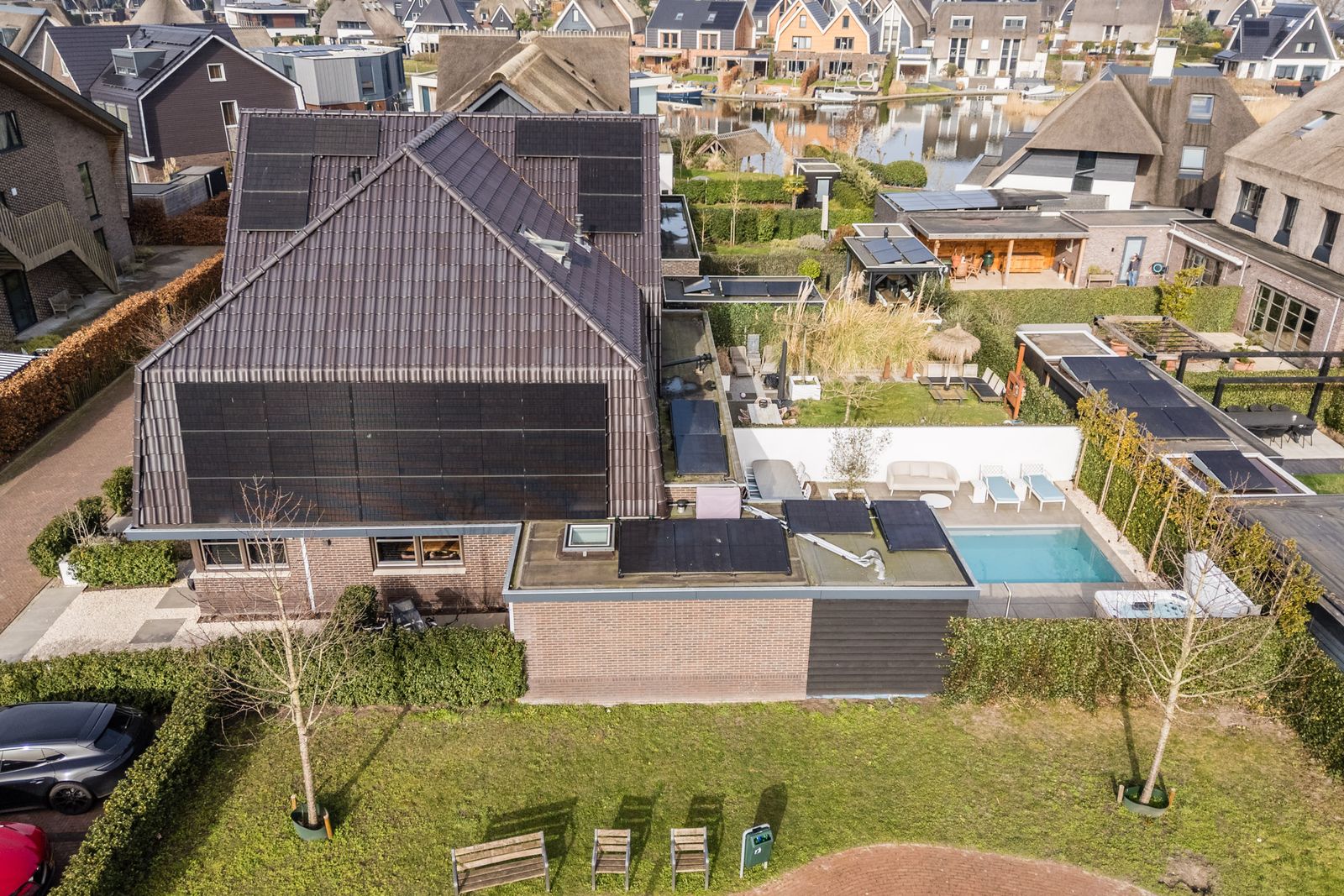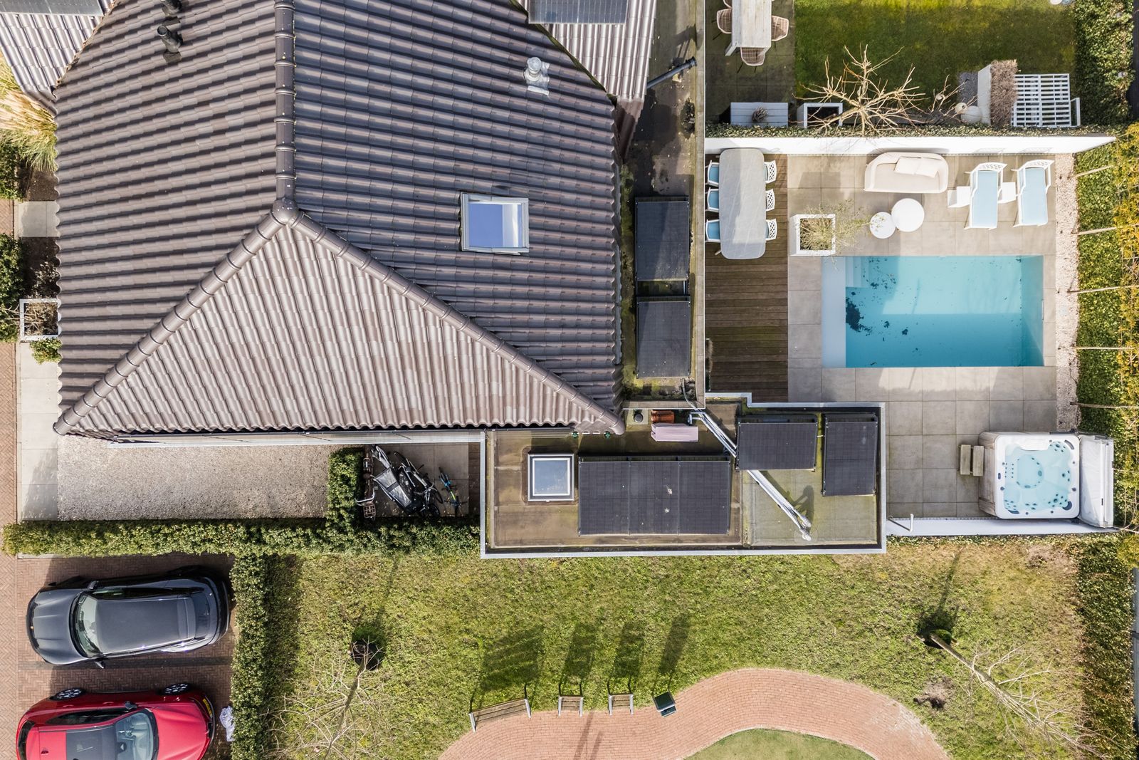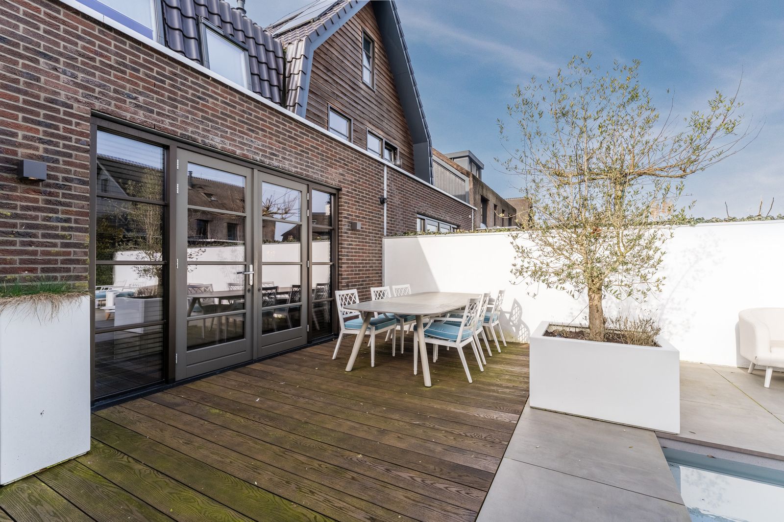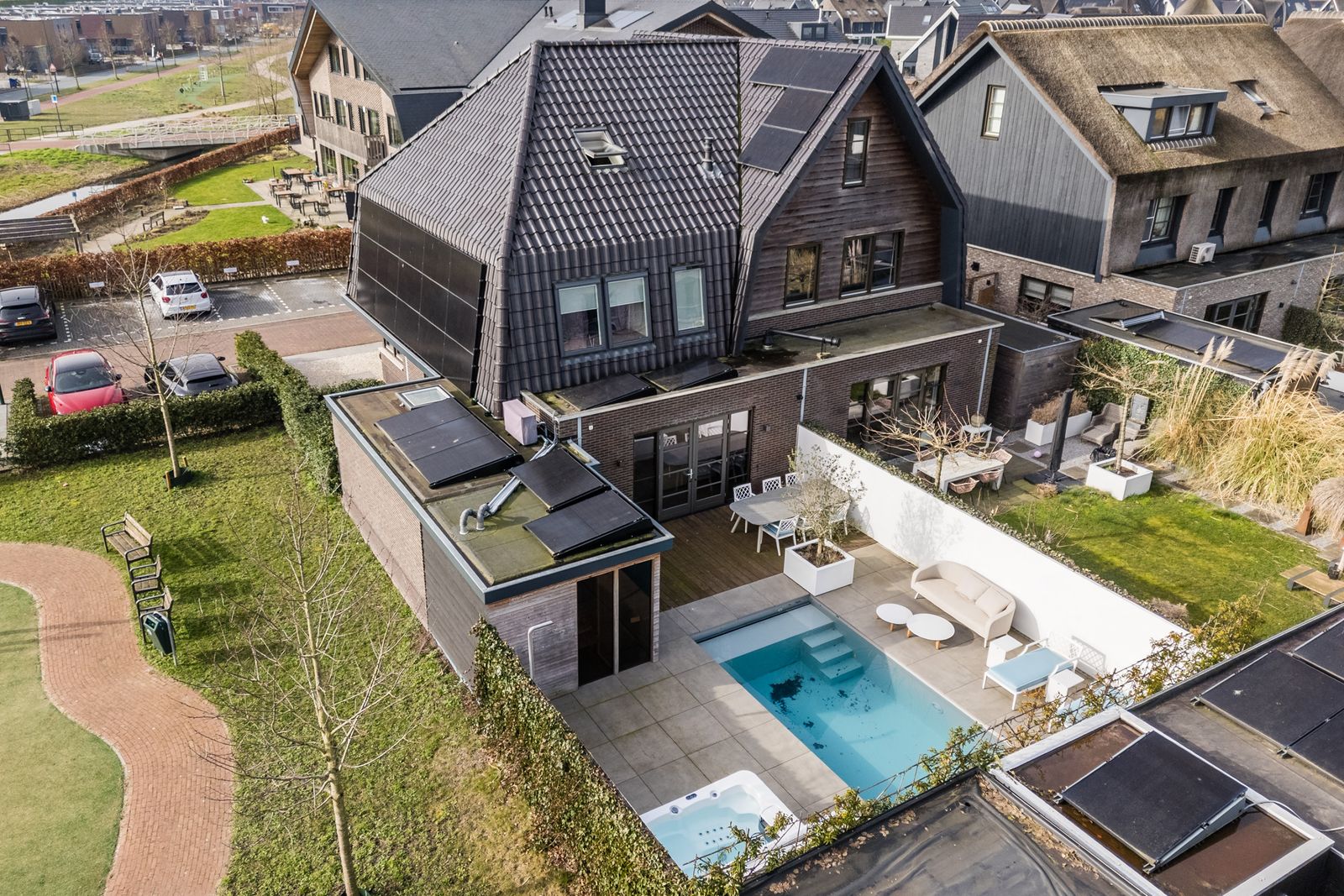 Via de openslaande deuren loopt u zo de fraai aangelegde tuin in, waar ontspanning en comfort centraal staan. Hier vindt u een zwembad dat veilig is voor kleine kinderen die nog niet kunnen zwemmen, evenals een jacuzzi en sauna. Een perfecte setting om in alle rust te ontspannen of juist te genieten met familie en vrienden.
