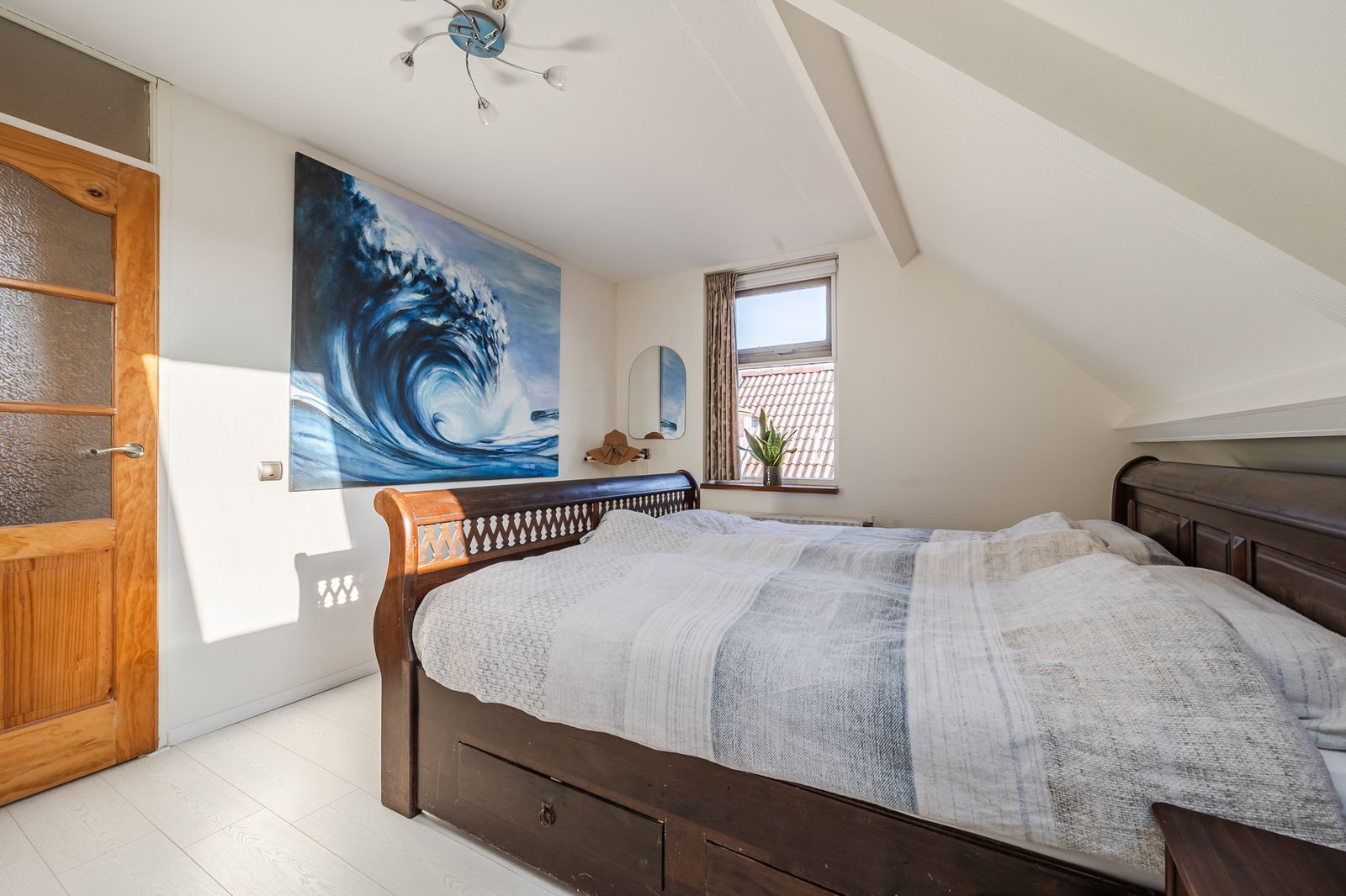 - Lichte slaapkamer (circa 2,50 x 4,61 m) gelegen aan de achterzijde van de woning met Velux dakraam uit 2025;