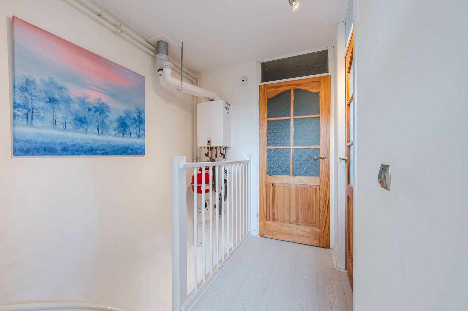 - Overloop met goed onderhouden Remeha C.V.-ketel uit 2017 en toegang tot de diverse ruimtes;