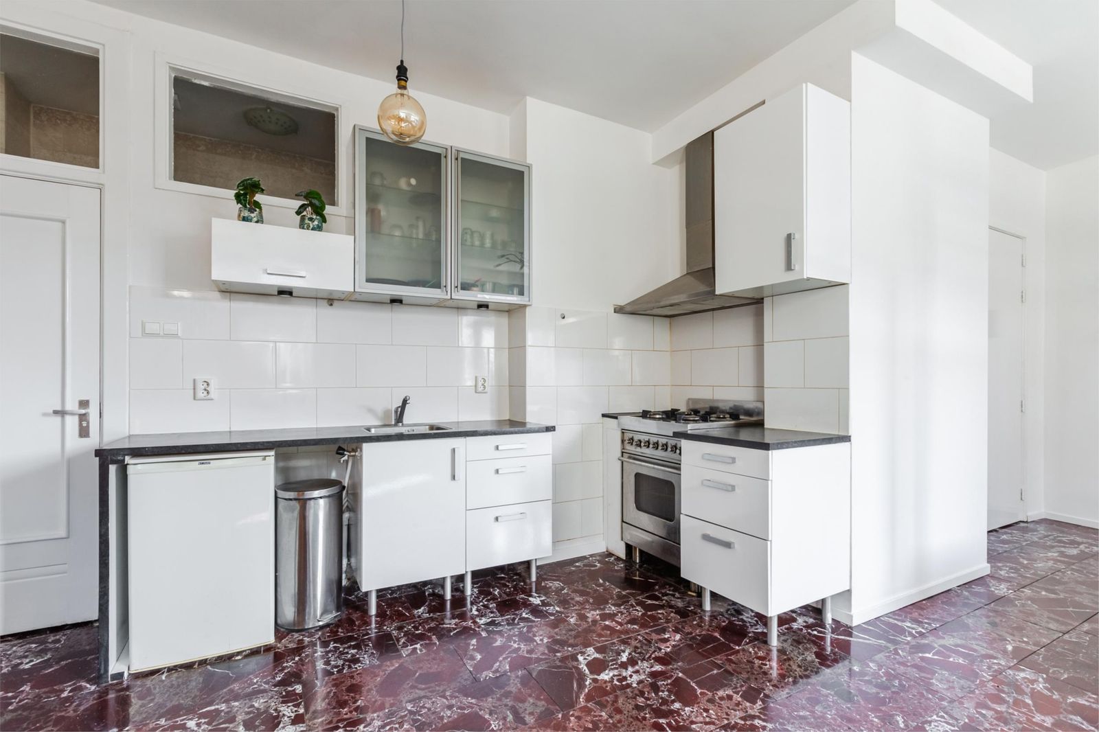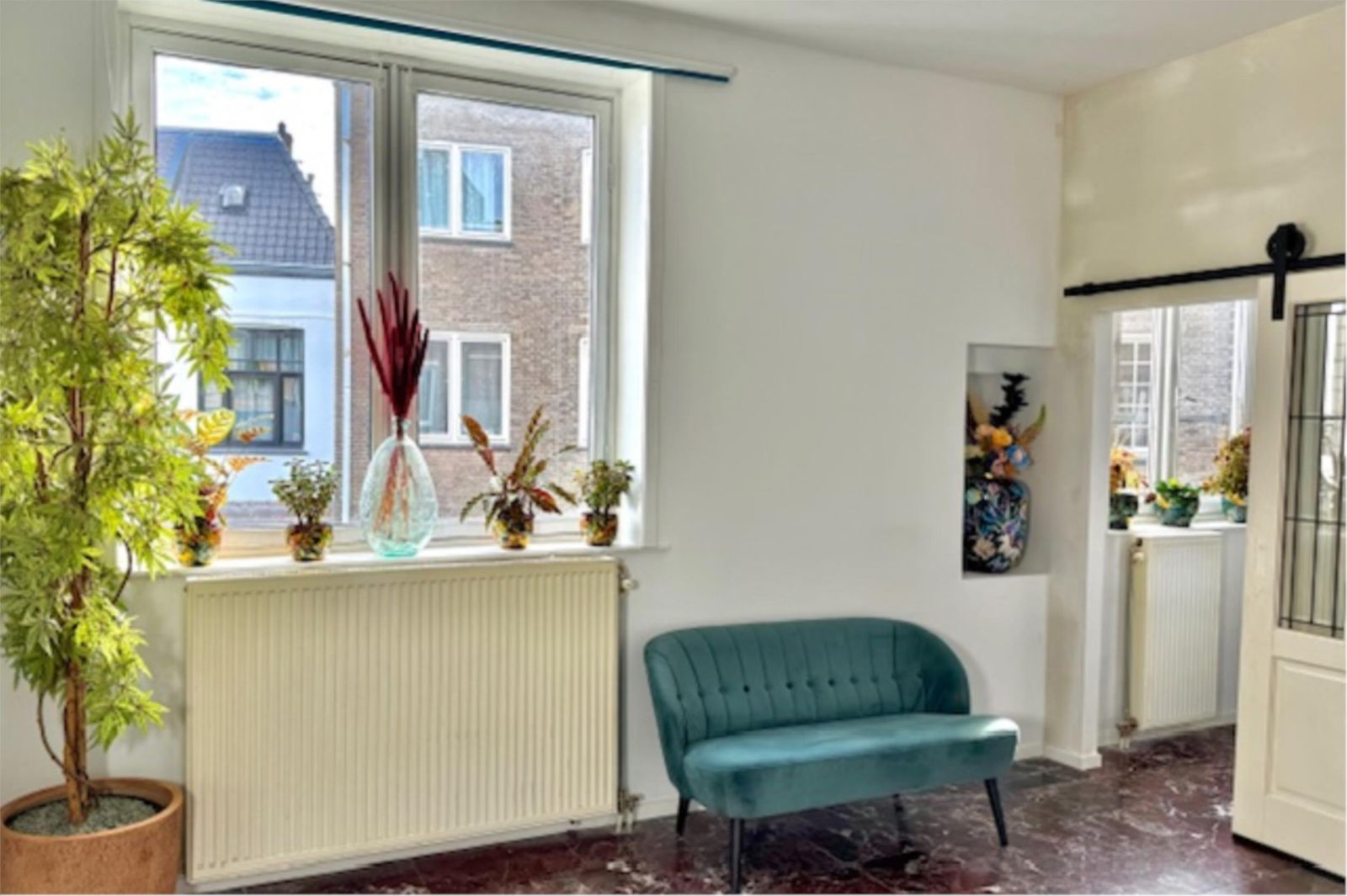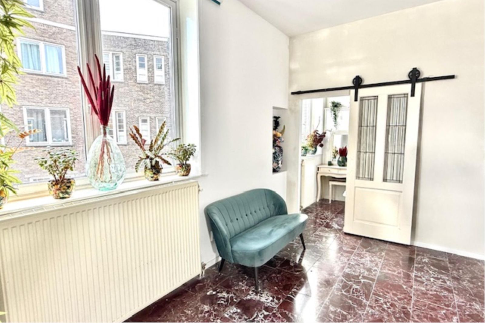 Deze karaktervolle 2-kamerwoning van ca. 33 m² combineert jaren ’20 charme met modern comfort, een luxe Rosso Levanto-marmeren vloer en een recent toegevoegde slaapkamer met glas-in-looddetails. Instap klaar, uitstekend geïsoleerd en op loopafstand van winkels, horeca en station Naarden-Bussum.