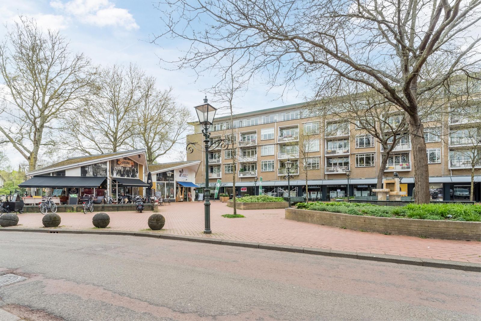 Hoewel het appartement geen buitenruimte heeft, biedt het Julianaplein met fontein direct voor de deur een heerlijke plek om te ontspannen, een boek te lezen of te genieten van de zon.
