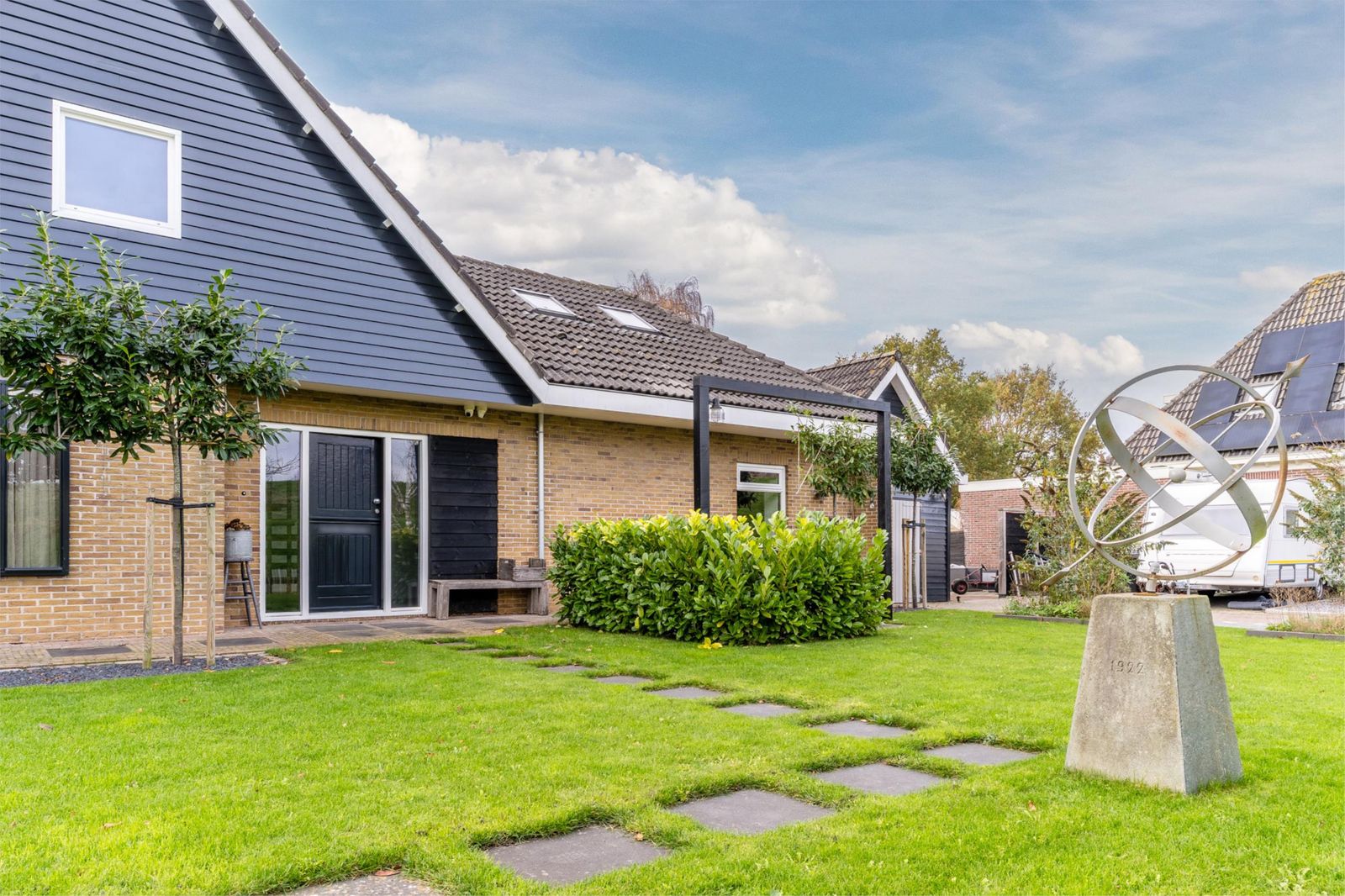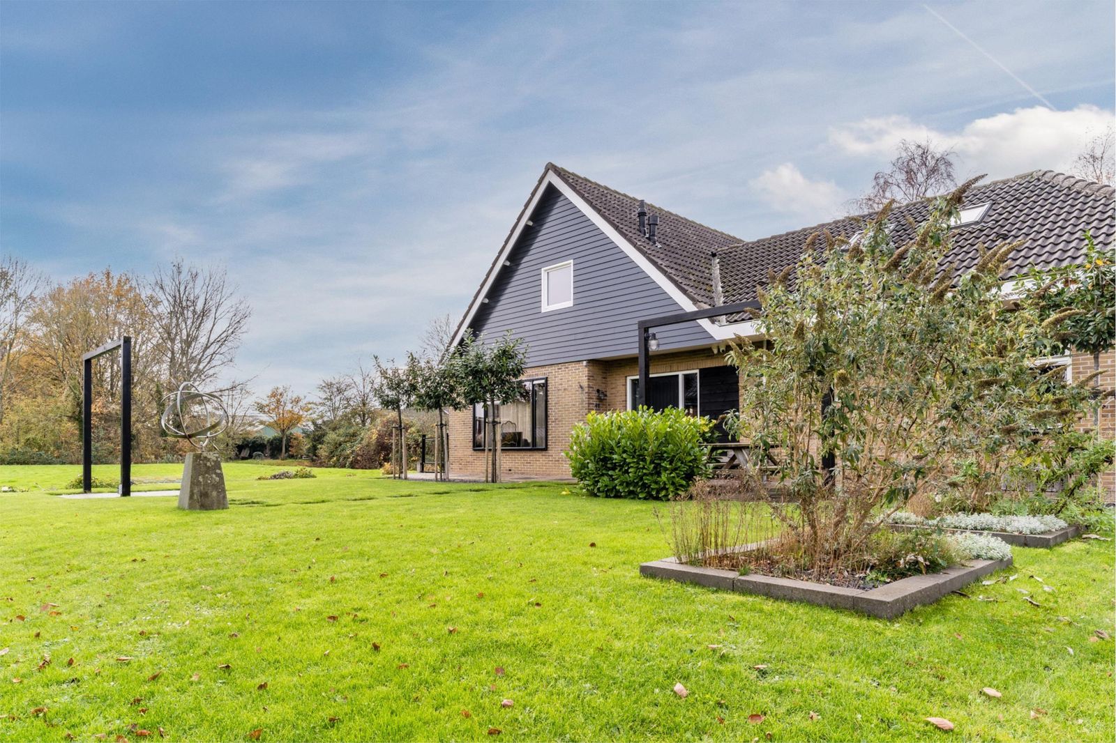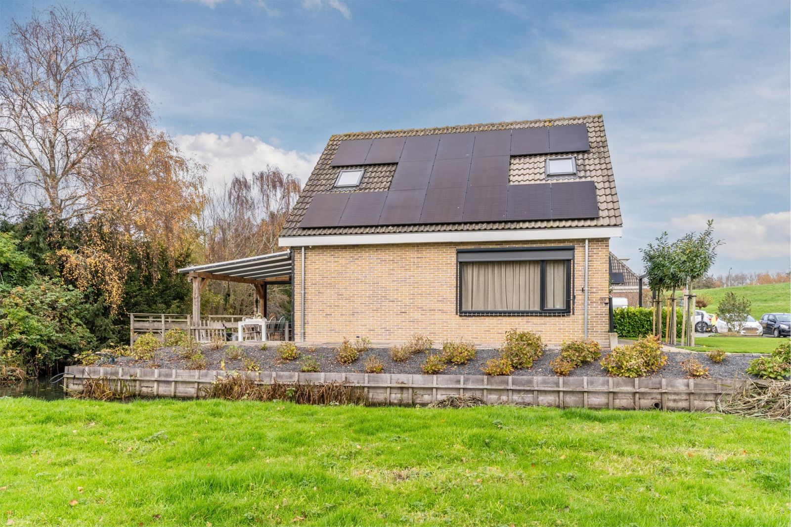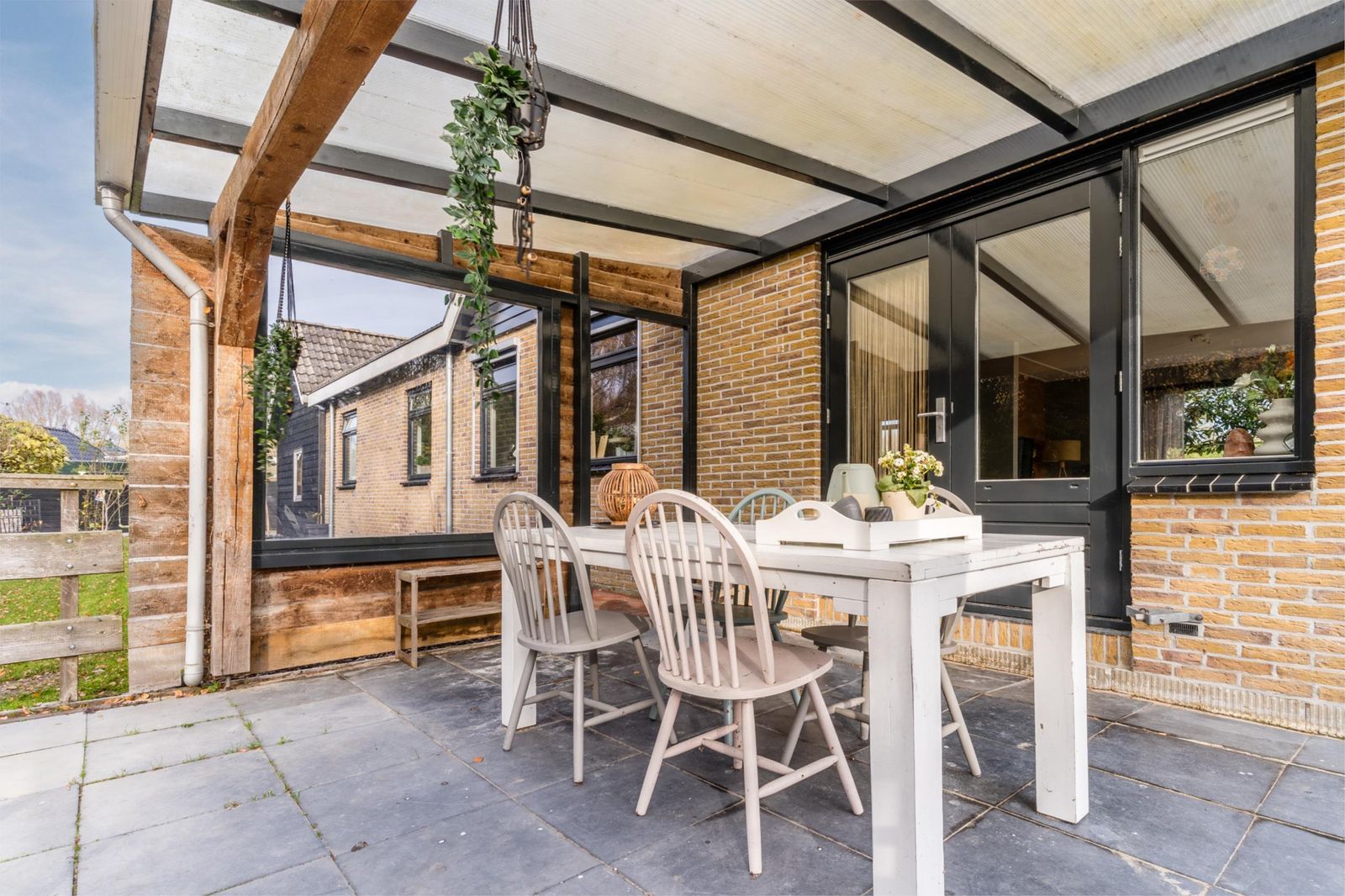 De fraai aangelegde tuin ligt rondom de woning, waardoor je de hele dag door zon of schaduw kunt vinden. Of je nu van een kop koffie in de ochtendzon houdt of ’s avonds onder de overkapping wilt ontspannen: hier kan het allemaal.