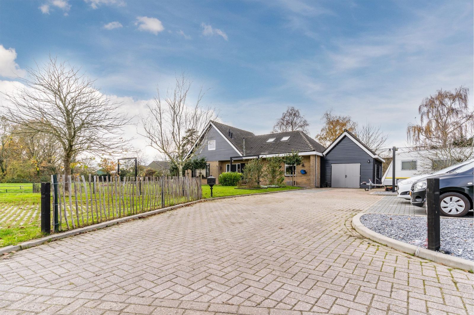 De grote garage met bergzolder, het volledig gedraineerde erf en de royale parkeerruimte op eigen terrein maken het plaatje compleet.