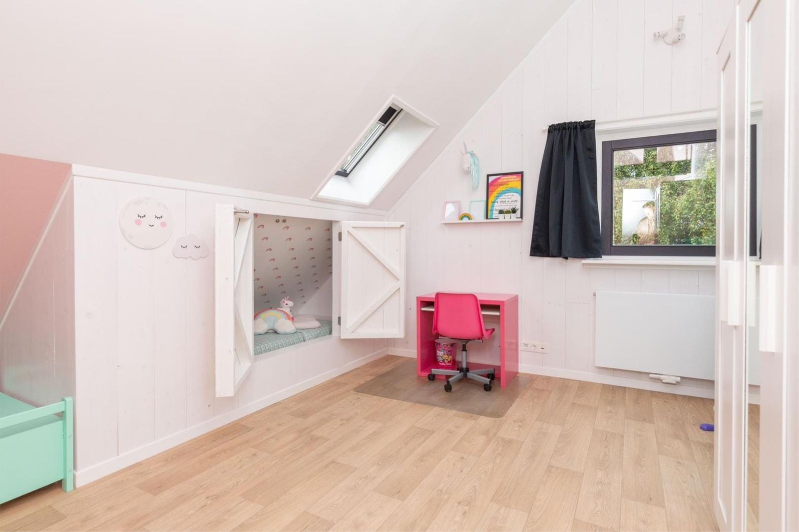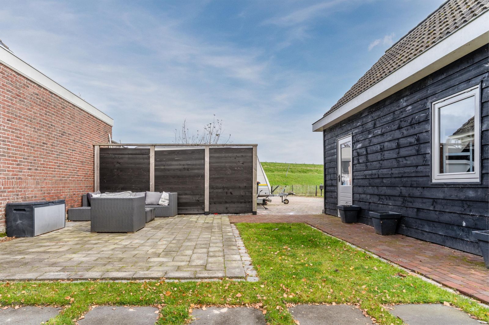 Waar vaak wordt gezegd dat je op het Kagerbos vooral tegen de dijk aankijkt, is dat hier juist niet het geval. Doordat de woning verder naar achteren op de kavel is gebouwd, geniet je van een prachtig open uitzicht. Vanuit de woonkamer kijk je uit over de modern aangelegde tuin aan de voorzijde en aan de zijkant over een heerlijk groen veld waar regelmatig schaapjes grazen – een levend schilderij dat elk seizoen verandert.