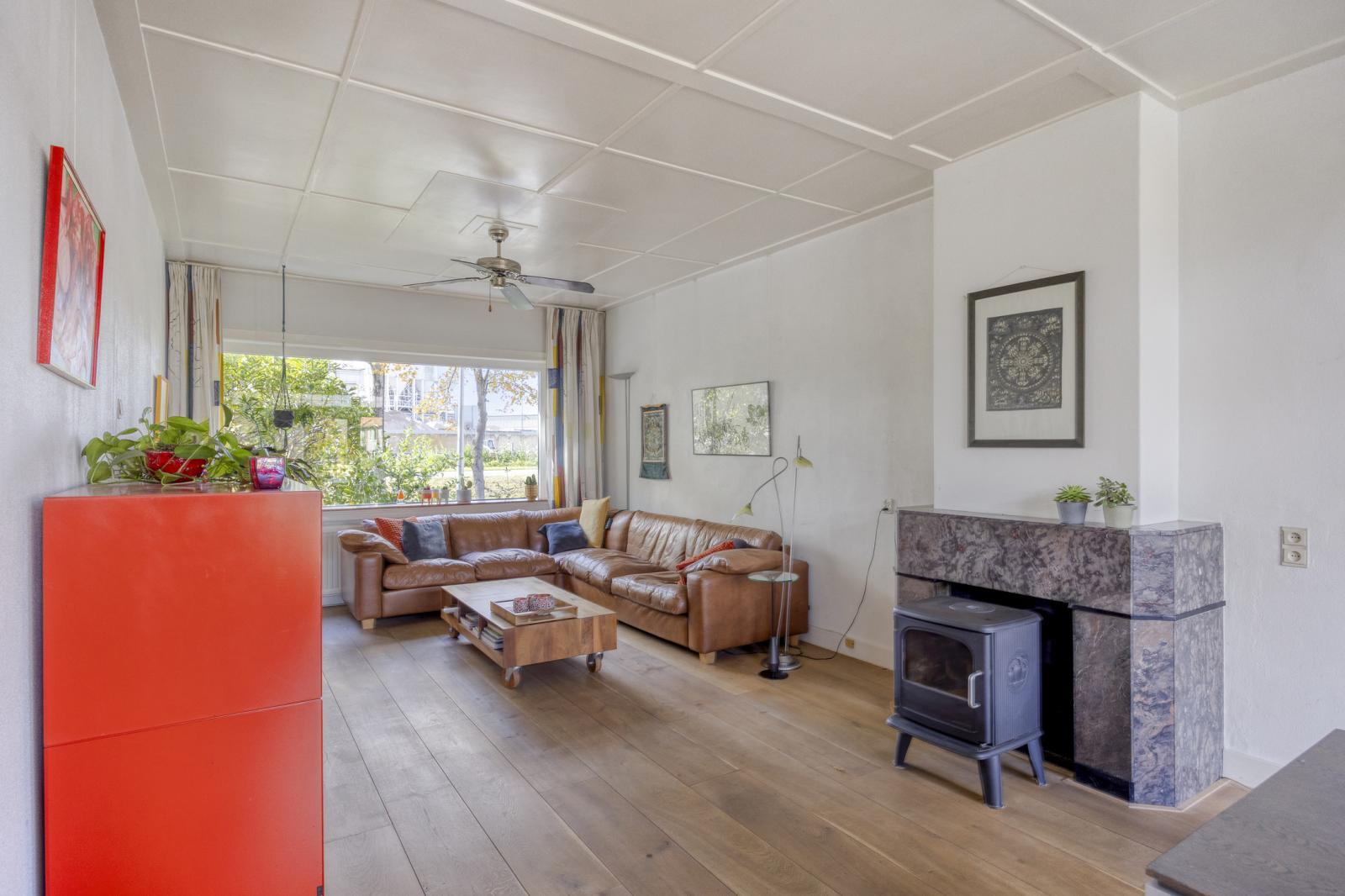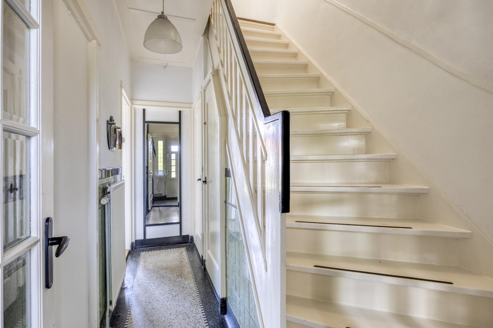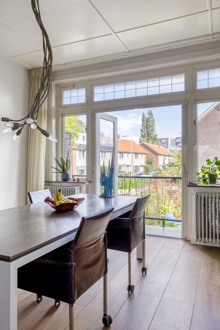 groen en gezelligheid van een jaren 30 woning met treden naar de beletage.