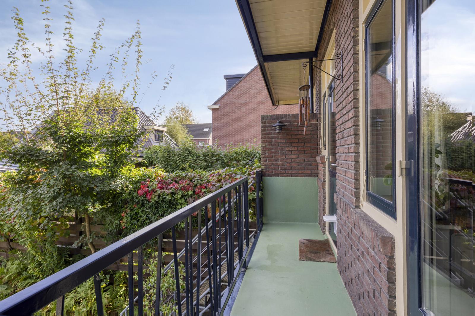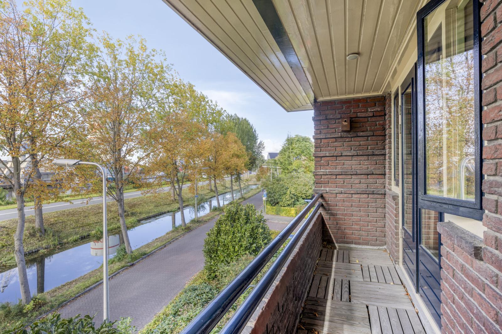 Toegang tot de woonkamer met veel lichtinval (grote raampartijen) en vrij uitzicht op de Gouwe. Voorzien van een haard met natuursteenafwerking en mooie eikenhoutenvloer en originele details waaronder glas in lood in de bovenlichten. Aan de achterzijde is de keuken (voorzien van inbouwapparatuur en granietenwerkblad) naderhand bijgetrokken bij de woonkamer wat een open en gezellig karakter geeft tijdens het koken/borrelen. Vanuit de achterzijde (via openslaande deuren en keukendeur) heeft u toegang tot het heerlijke achtergelegen balkon en heerlijke tuin met achterom en parkeerplaats gelegen op eigen grond.