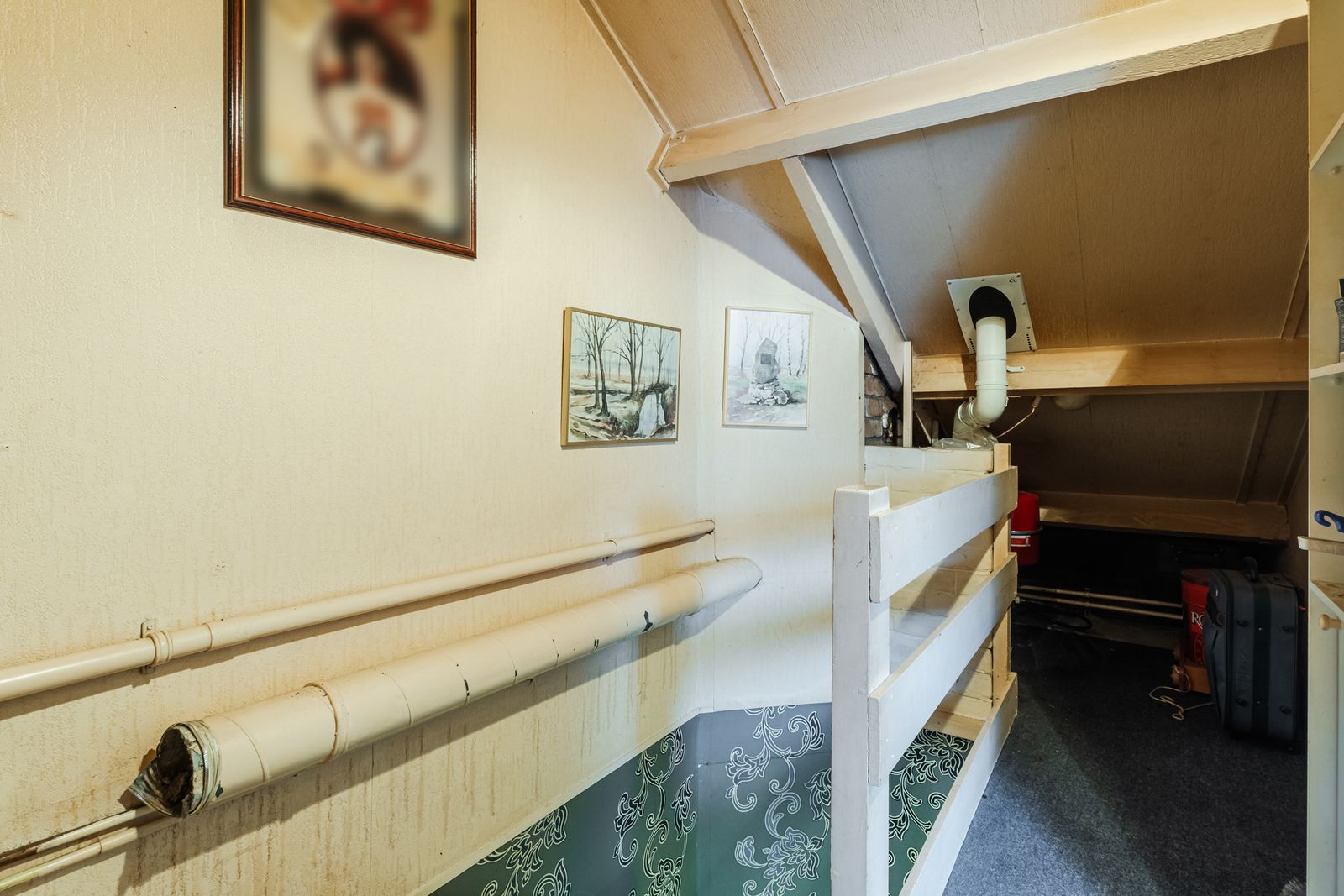 De tweede verdieping bestaat uit een overloop/voorzolder met de opstelling van de cv-combiketel (2020) en aansluitingen voor de wasapparatuur. Daarnaast is hier een volwaardige derde slaapkamer met dakraam en extra bergruimte.
