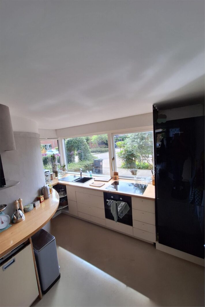 grote woonkamer met open ruime keuken. Luxe vloerverwarming systeem afgewerkt met gietvloer.