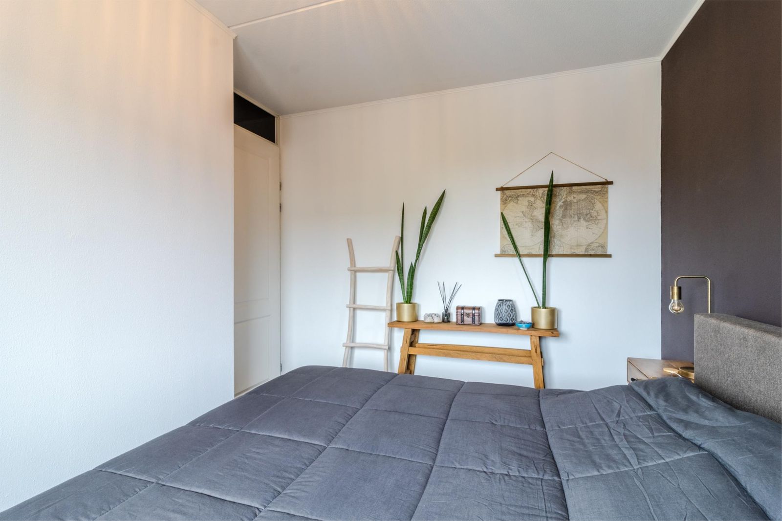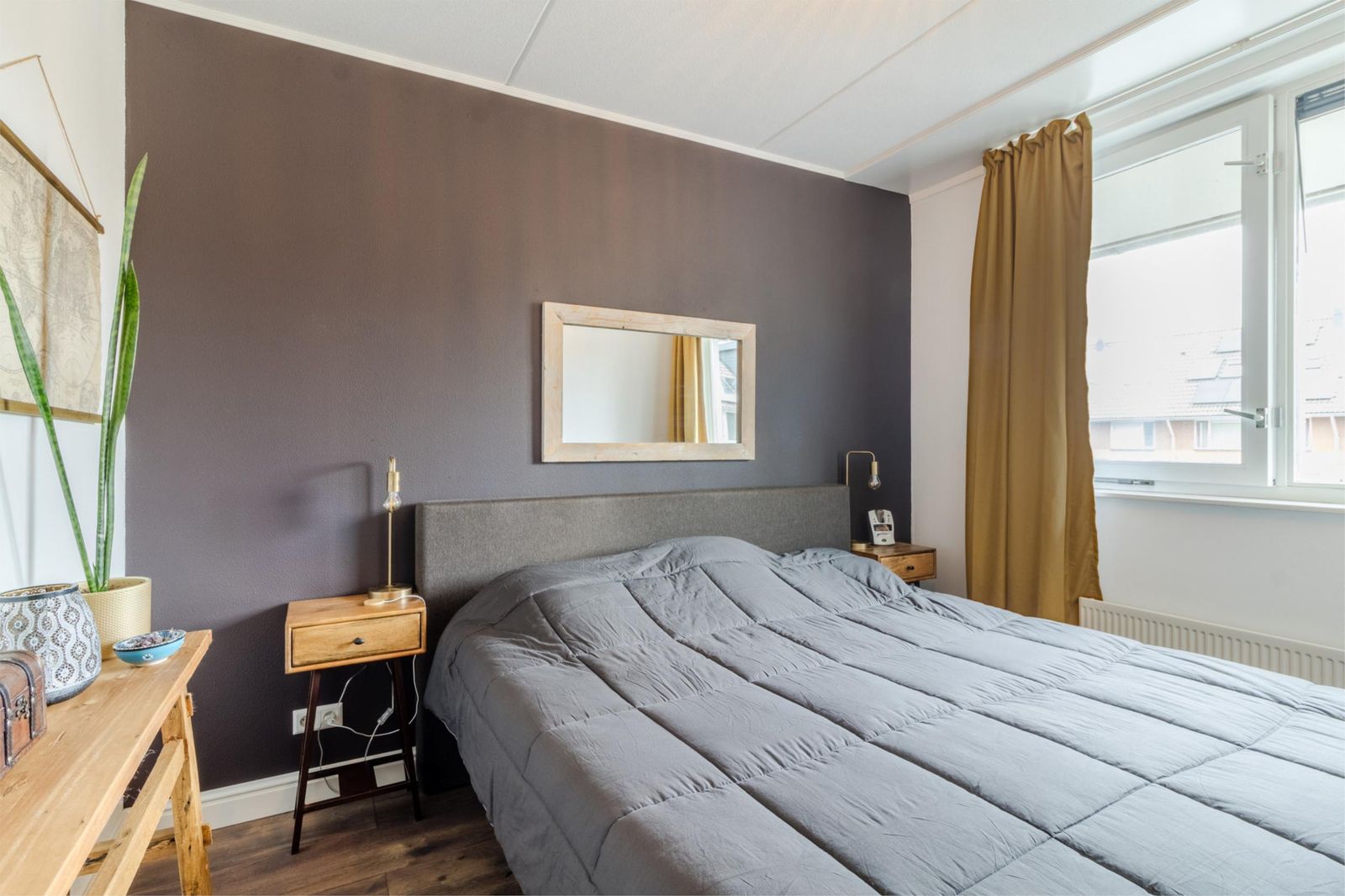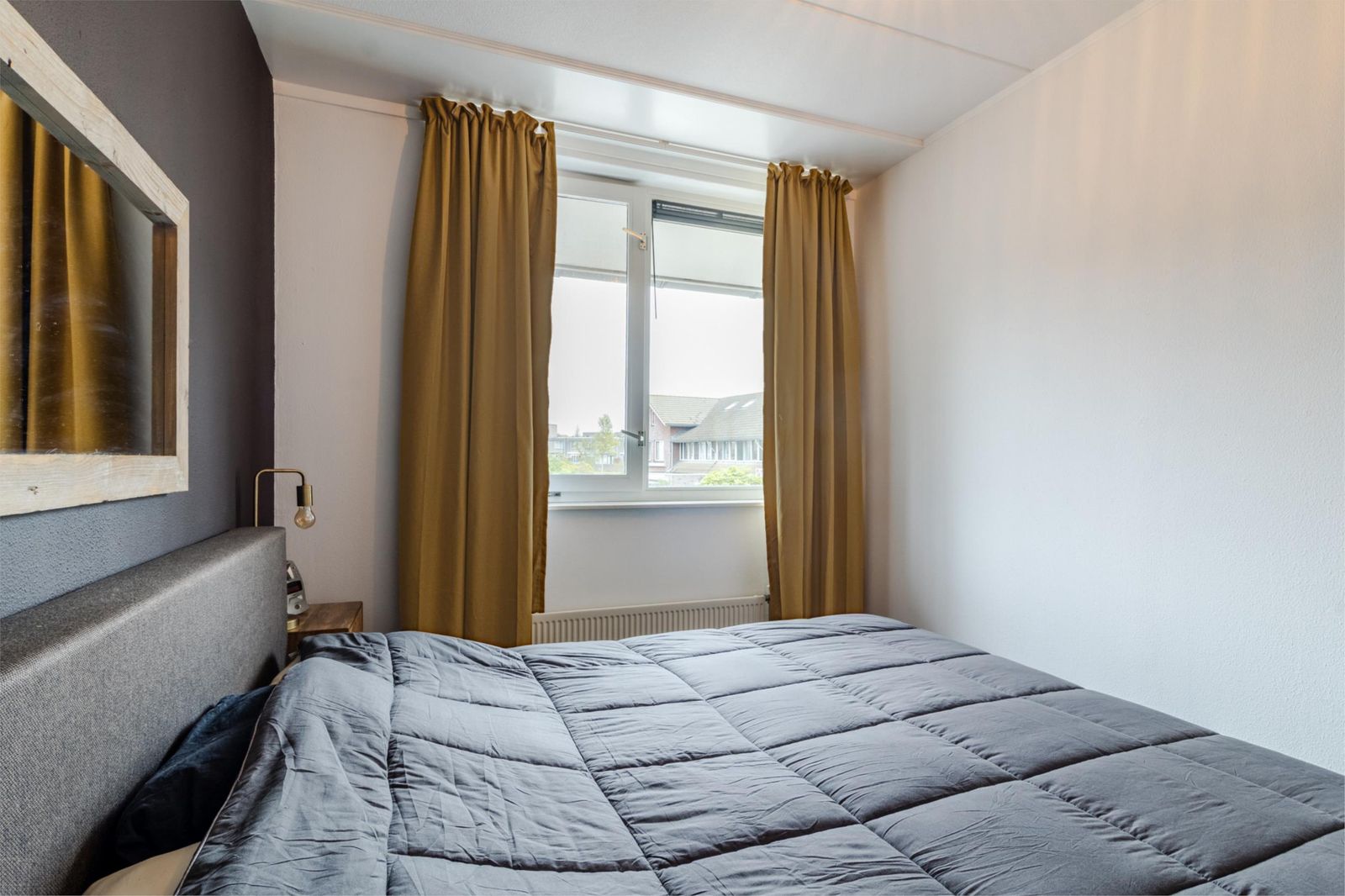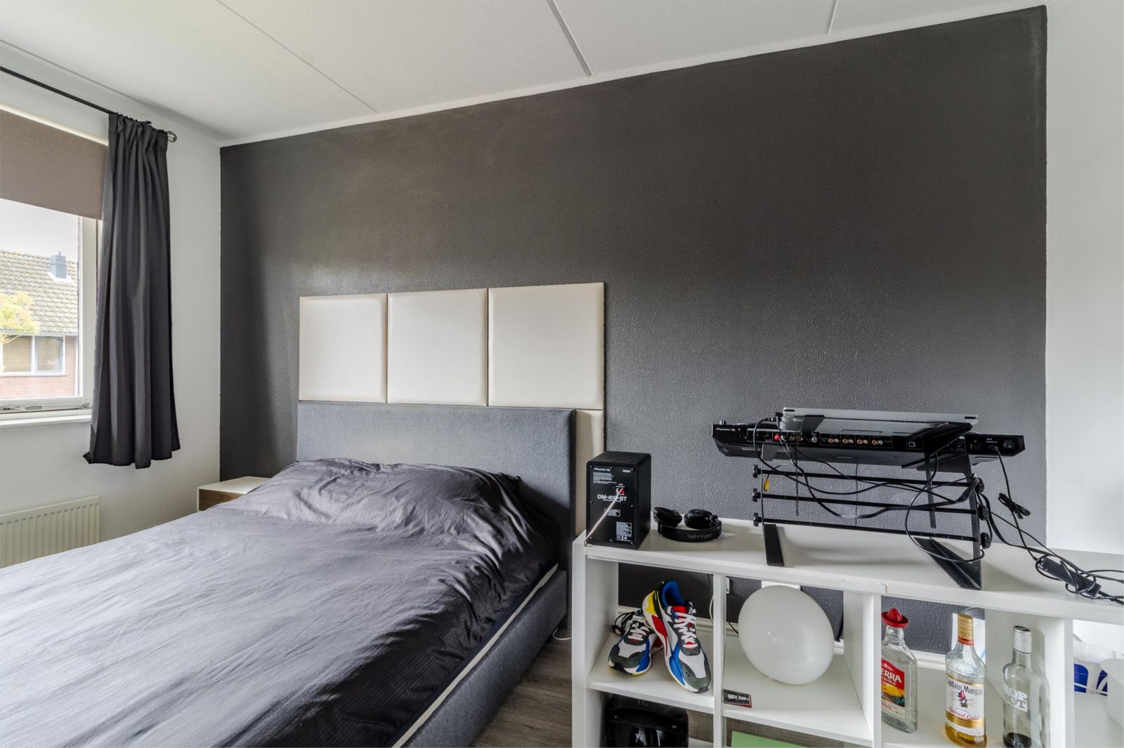 De ruime overloop geeft toegang tot drie slaapkamers, de badkamer en de trap naar de tweede verdieping. Aan de voorzijde ligt de grootste slaapkamer van ca. 13 m², terwijl aan de achterzijde nog twee slaapkamers van ca. 9 m² en ca. 6 m² te vinden zijn. Deze kamers kun je geheel naar eigen wens inrichten, bijvoorbeeld als kinderkamer, werkkamer of inloopkast. Alle ramen zijn voorzien van praktische horren en de hele verdieping is afgewerkt met een nette laminaatvloer.