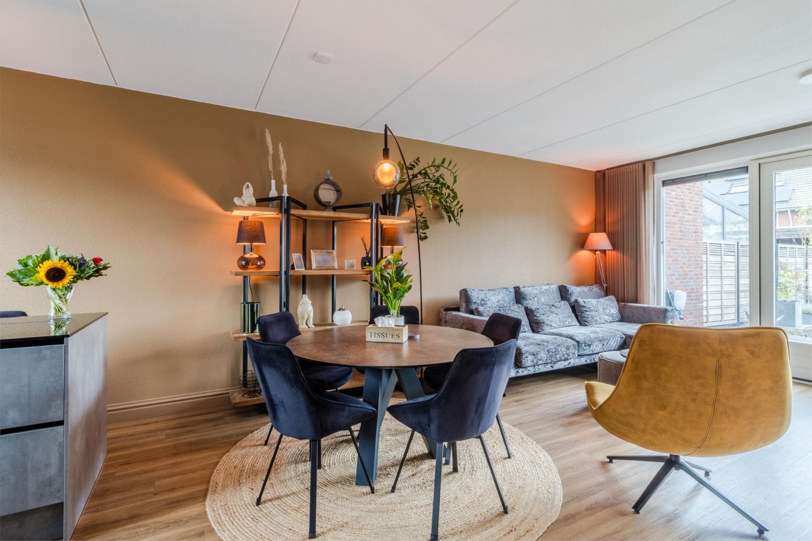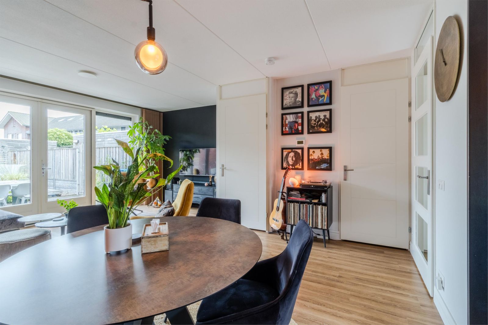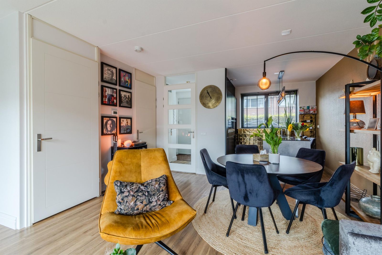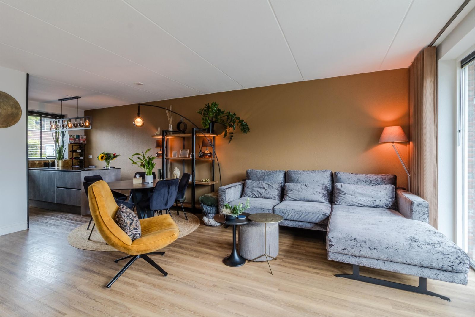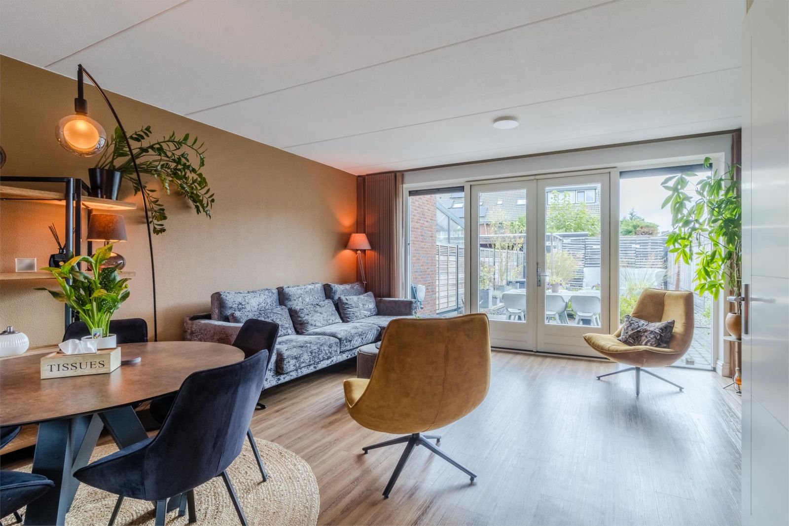 De royale woonkamer straalt ruimte en comfort uit. Dankzij de grote openslaande deuren aan de achterzijde heb je direct toegang tot de fraaie achtertuin en haal je het buitenleven moeiteloos naar binnen. De grote raampartijen aan zowel de voor- als achterzijde zorgen voor veel daglicht en een prettige, open sfeer. De afwerking is strak en verzorgd, waardoor je hier zó kunt intrekken.