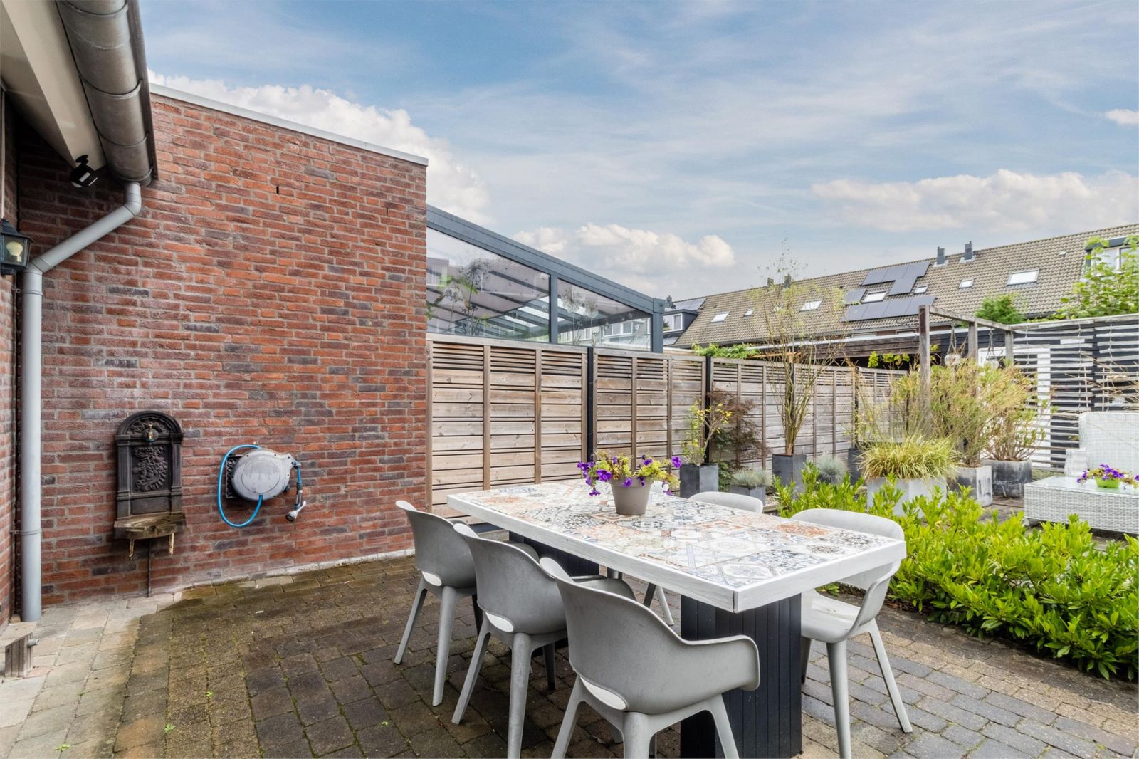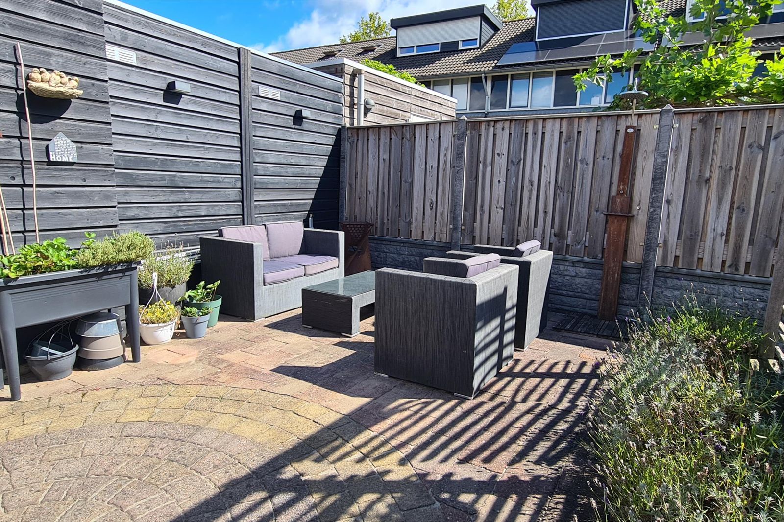 Bovendien is de tuin bereikbaar via een handige achterom, wat het geheel nog praktischer maakt.