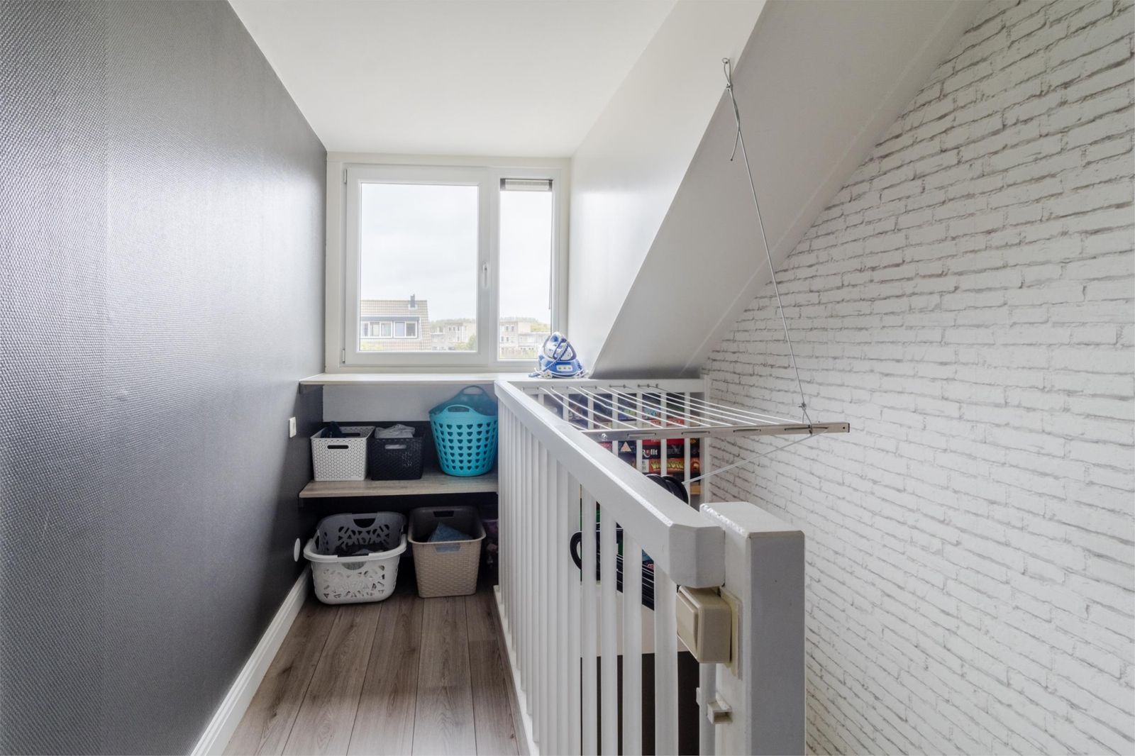 Via een vaste trap bereik je de tweede verdieping. Hier kom je op een ruime overloop met praktische bergruimte. Daarnaast vind je hier de aansluitingen voor de cv-combiketel en voldoende plek voor zowel de wasmachine als de droger. Dankzij de slimme indeling is dit niet alleen een functionele, maar ook een overzichtelijke ruimte, waar je alles netjes kunt wegwerken.