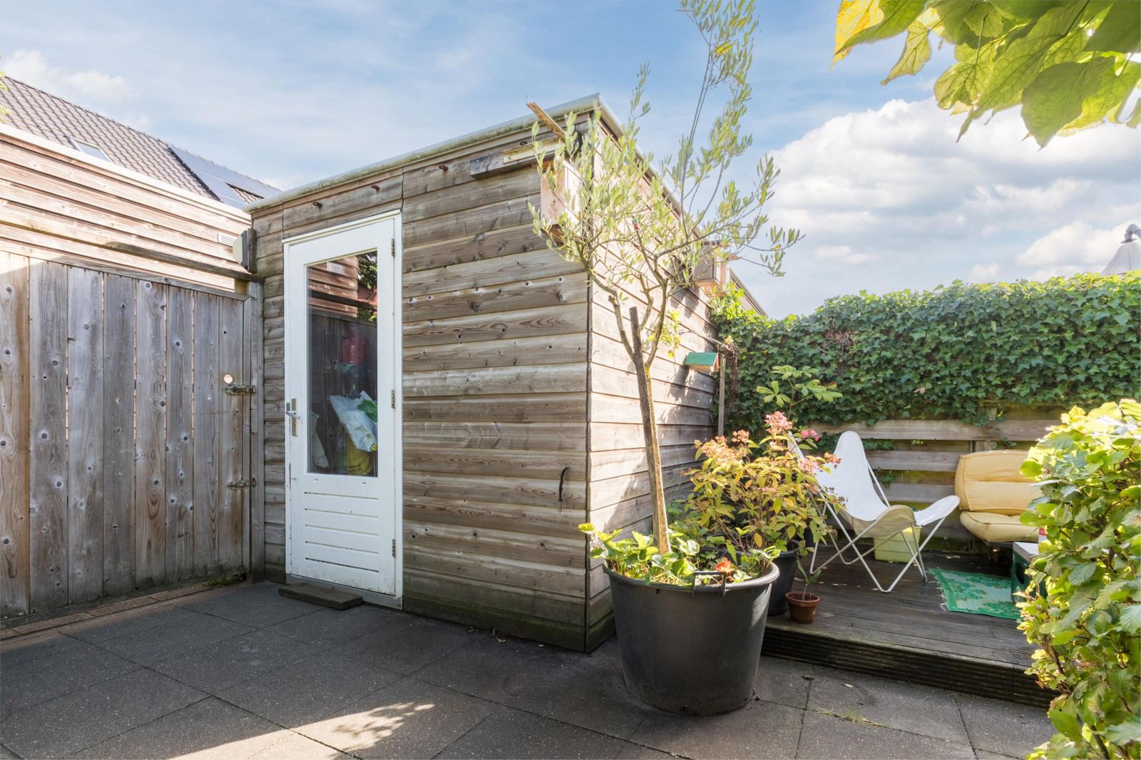Achter in de tuin is een schuurtje met opbergmogelijkheden (6 m2) voor fietsen en gereedschap. De woning met tuin is ook ‘achterom’ via een gangpad te bereiken.