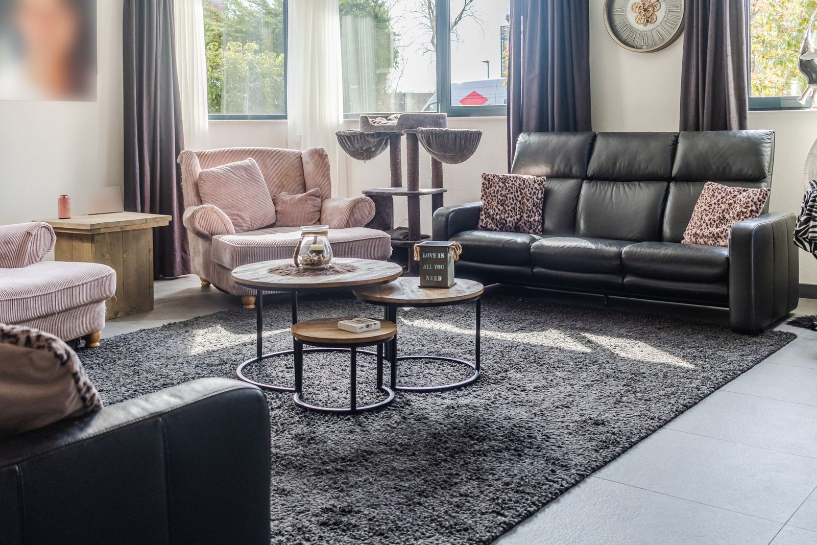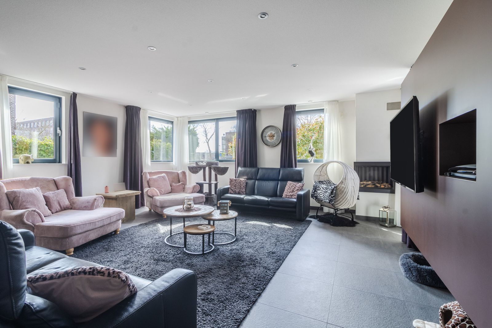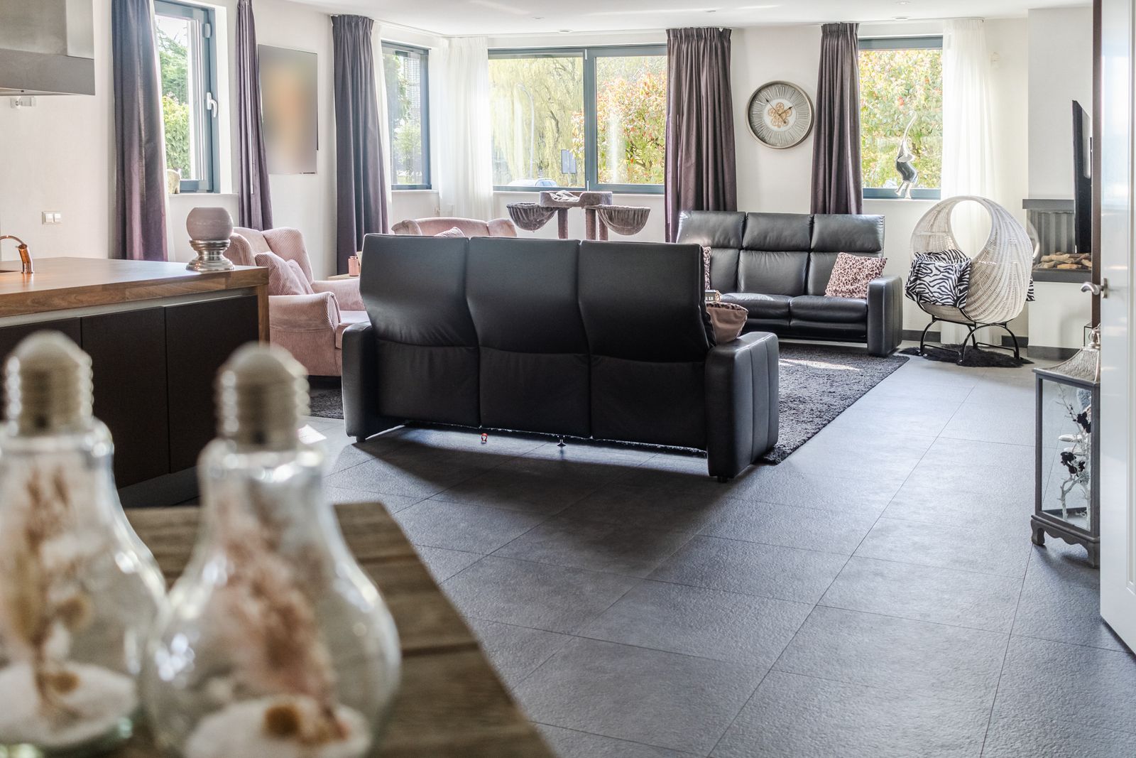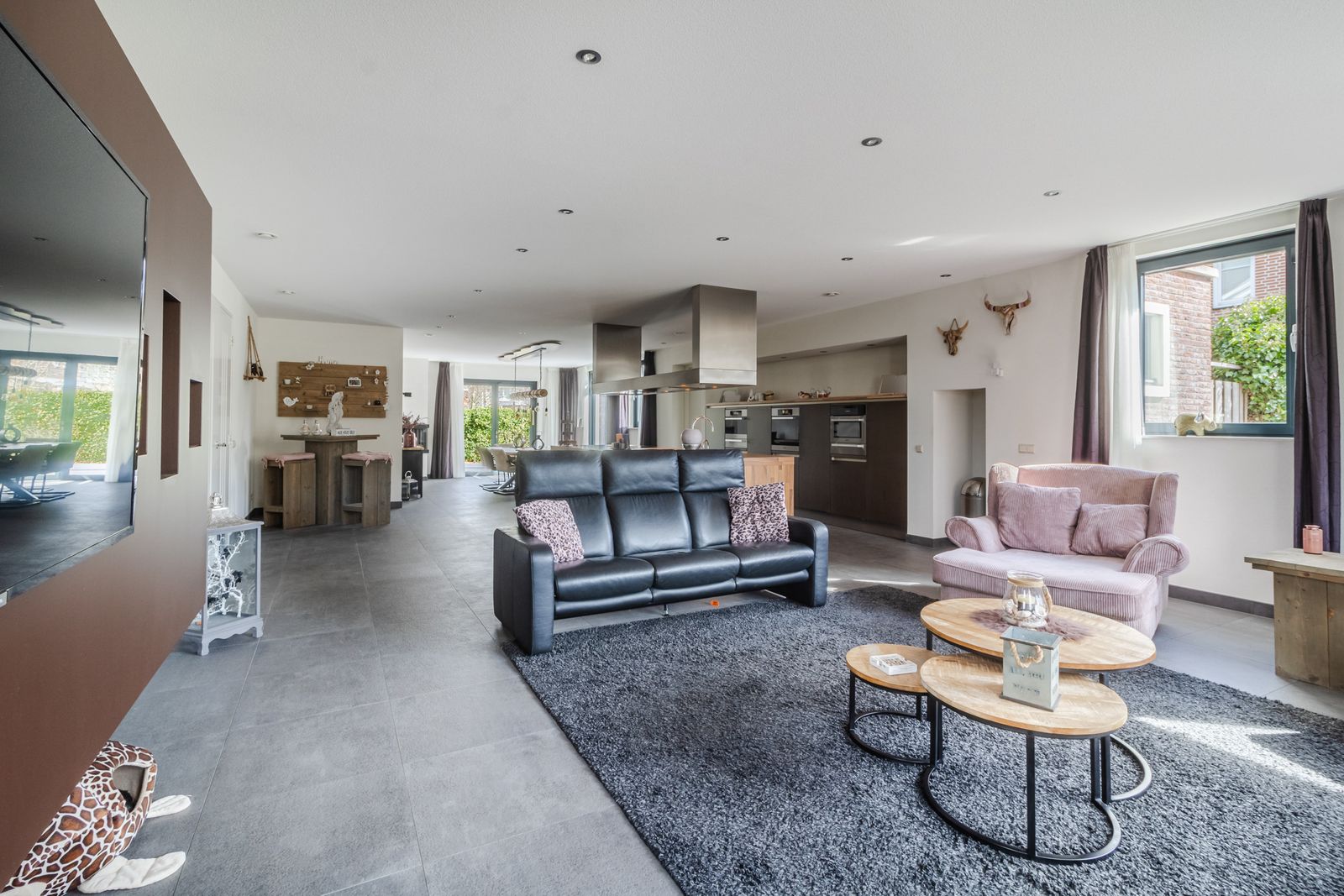 Riante living (ca.100m2) onderverdeeld in: