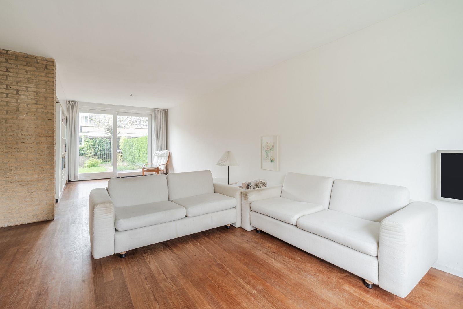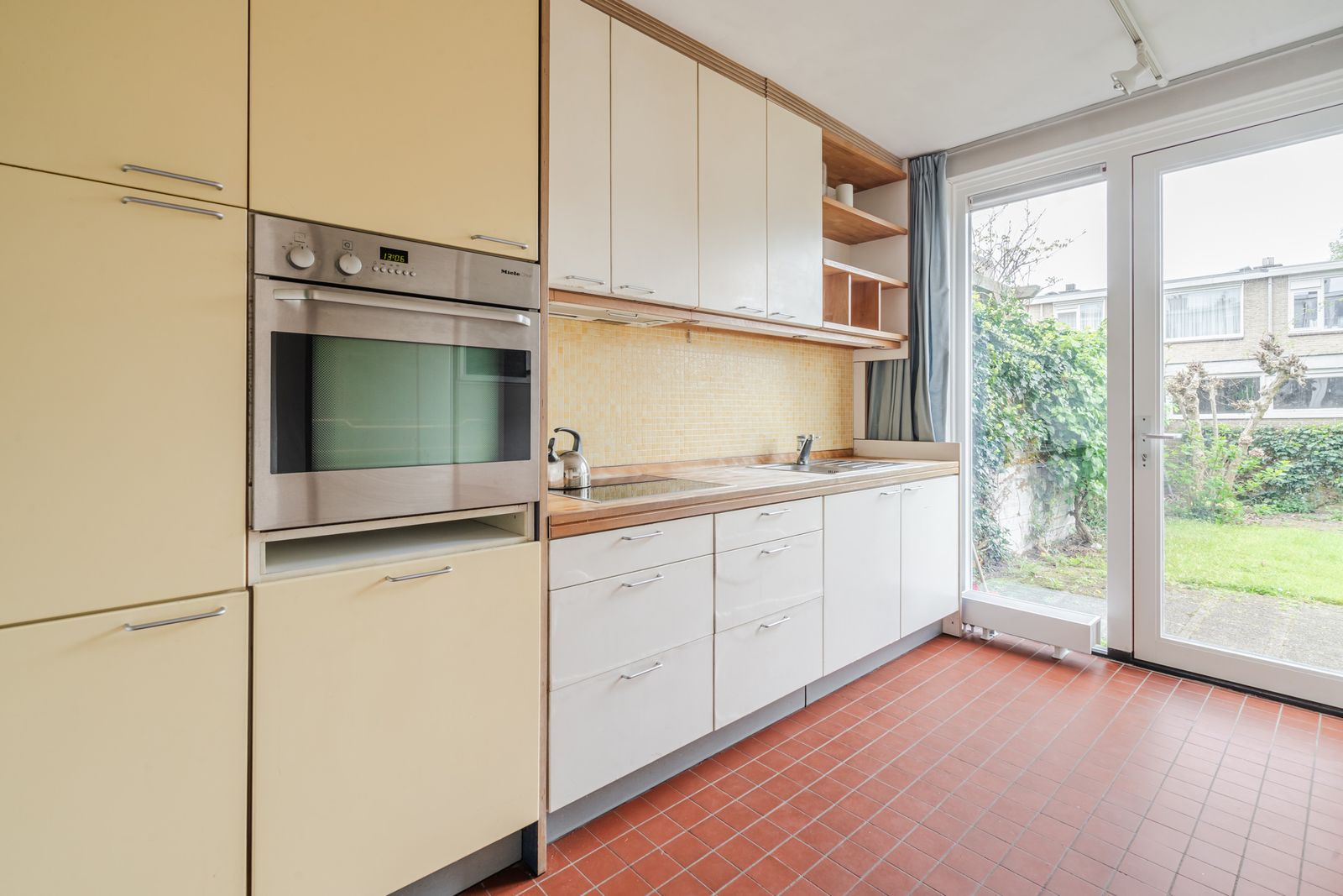 Begane grond: De royale woonkamer is afgewerkt met een mooie teakhouten houten parketvloer. Dankzij het grote raam in de erker valt er veel licht naar binnen en dat zorgt voor een prettige sfeer. Aan de achterkant is veel ruimte voor een eettafel. Door de grote glazen schuifpui is ook deze ruimte heerlijk licht en heb je een mooi uitzicht op de groene tuin. De keuken uit 2005 is toe aan vervanging maar wel van alle gemakken voorzien. Er zijn diverse inbouwapparaten aanwezig, zoals een 4-pits keramische kookplaat met circulatie afzuiging, een vaatwasser en een heteluchtoven. Ook een losse koel-vriescombinatie is aanwezig. De tuin is ruim en zonnig, gelegen op het westen en heerlijk groen. De tuin beschikt over een berging met elektra en een achterom. Alle kozijnen aan de achterzijde zijn vervangen voor nieuwe hardhouten kozijnen met HR++ glas in 2023.