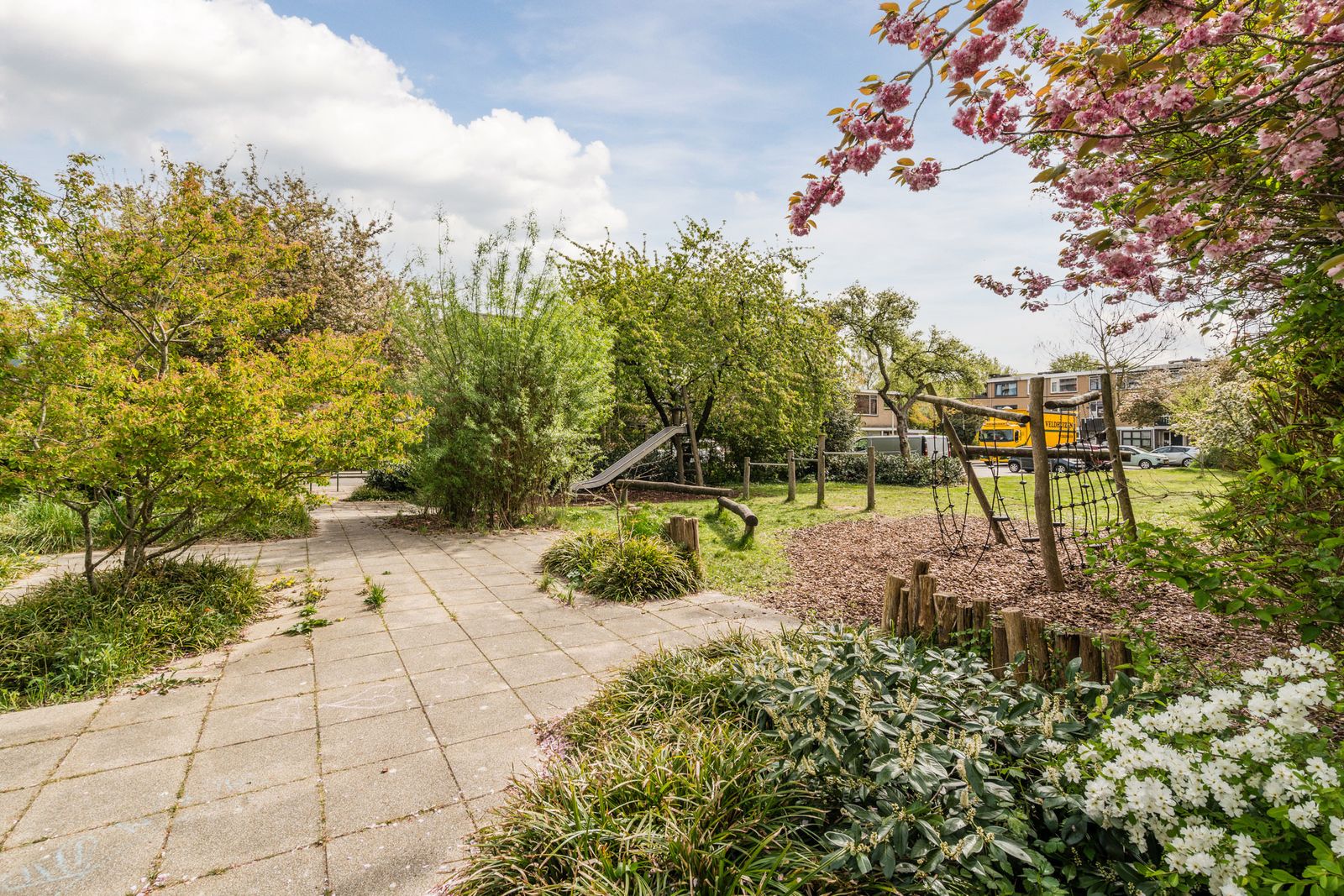 Voor het huis is een kleine voortuin van waaruit je zicht hebt op de speeltuin. De woonkamer en de overlopen zijn voorzien van een teakhouten parketvloer. In de woonkamer is aan de voorzijde een gezellige zithoek en aan de achterzijde een eetgedeelte met een glazen schuifpui naar de tuin. De zonnige tuin (11,08 meter diep en 6,07 meter breed) met veel groen ligt op het westen, zodat je hier in de zomer kunt genieten van de middag- en avondzon. Op de eerste verdieping vind je drie slaapkamers en een badkamer met inloopdouche. Op de tweede verdieping een grote kamer met een groot dakterras. Op deze verdieping is nog een kleine slaapkamer en een wasruimte met een stortbak en ruimte en aansluiting voor een wasmachine en droger. Zie jij jezelf al wonen in deze ruime, lichte woning met een heerlijke tuin?